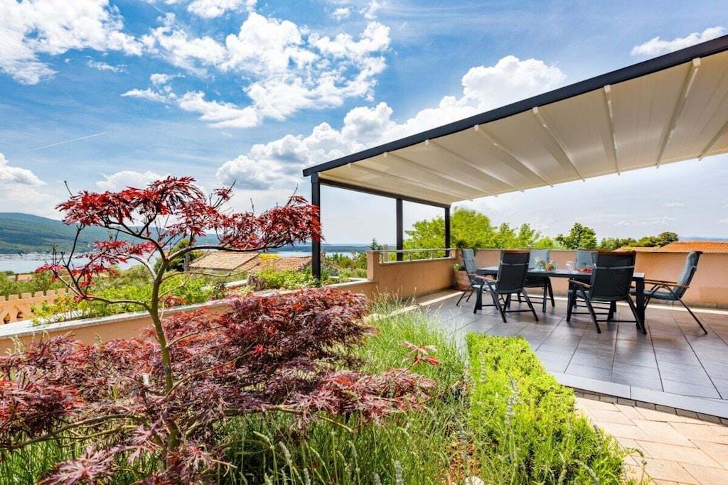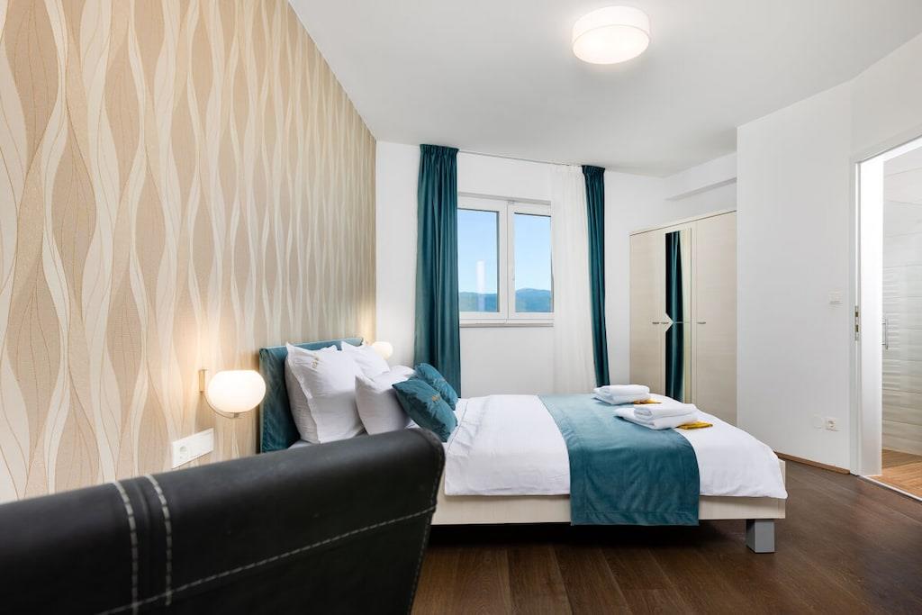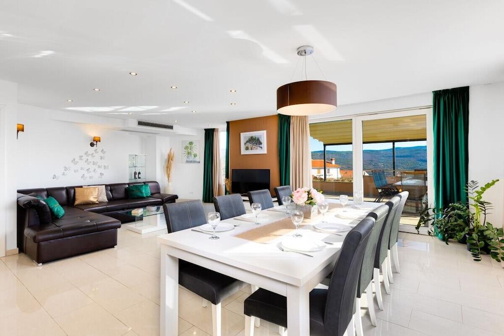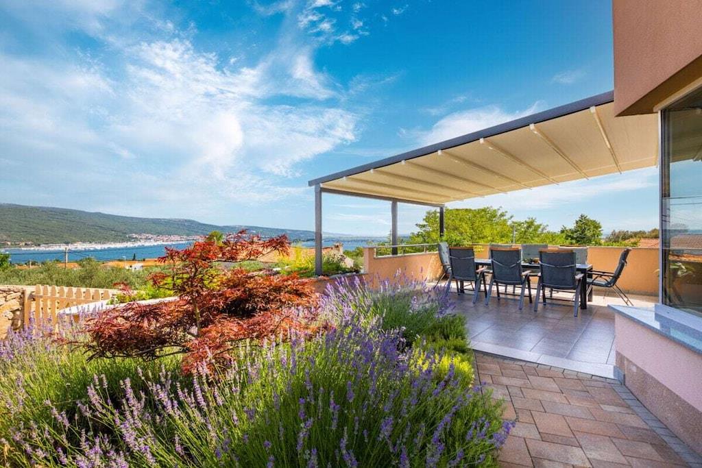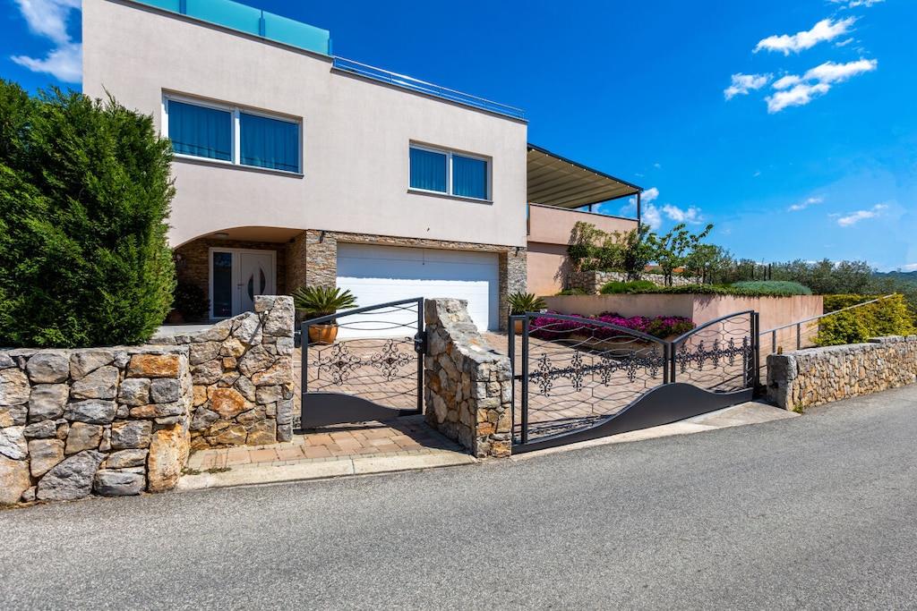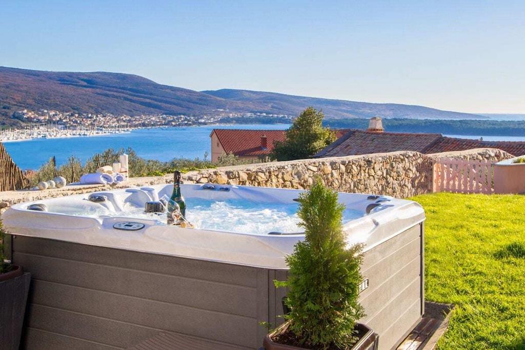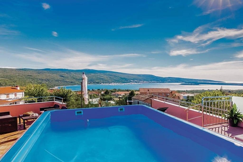 Denne smukke og smagfuldt indrettede villa ligger i den lille landsby Kornic. Fra den store tagterrasse, hvor swimmingpoolen også ligger, har I en storslået panoramaudsigt over Punat og øen Kosljun. Feriehuset har en tagterrasse med pool, hvorfra I kan nyde den fantastiske havudsigt. Efter en svømmetur kan I slappe af i spabadet eller saunaen, der også har havudsigt. Slap af i denne lille oase. Huset har en terrasse på første sal og en have bagved. Der er også en grill.