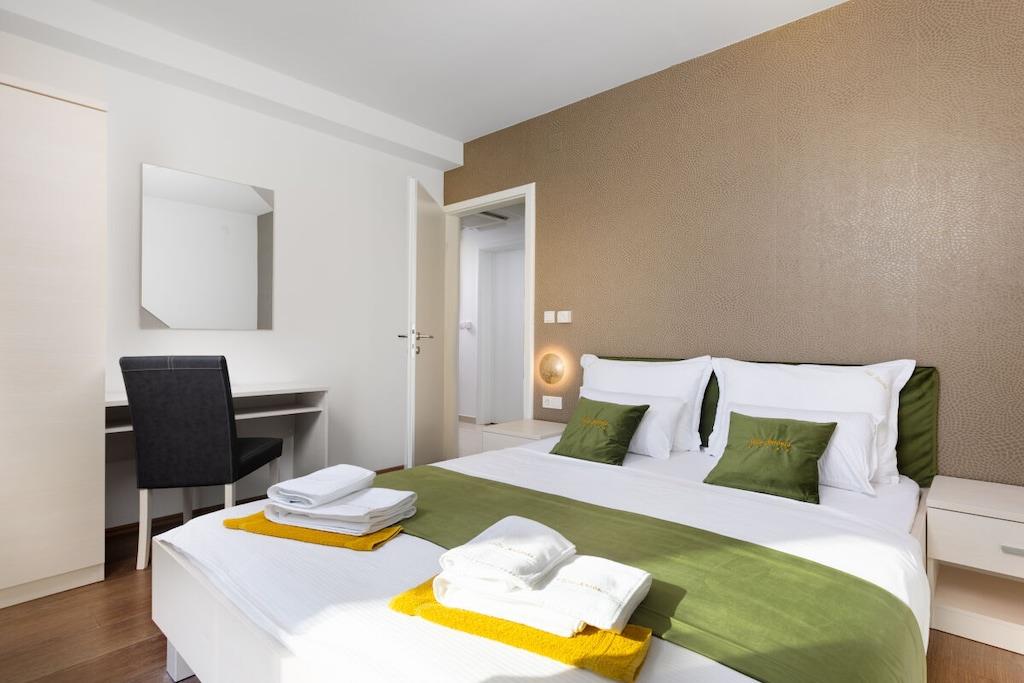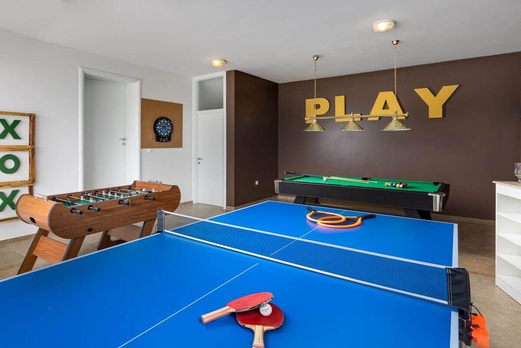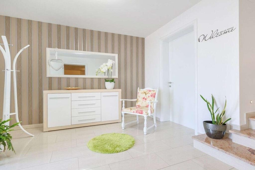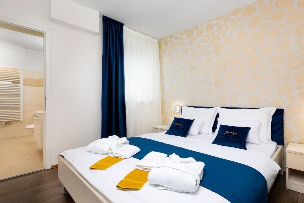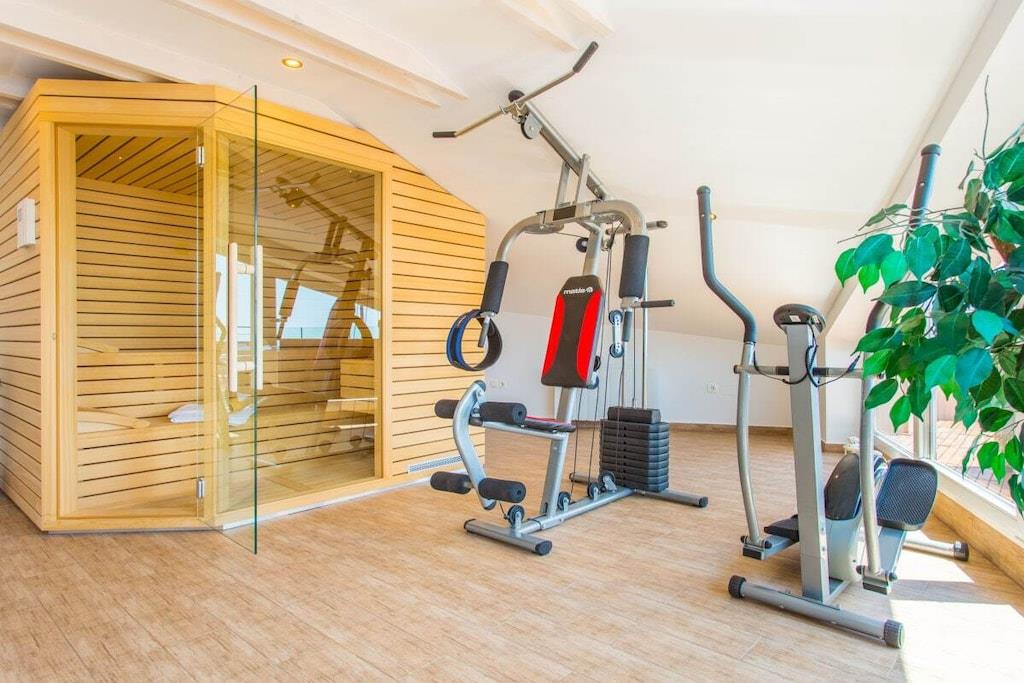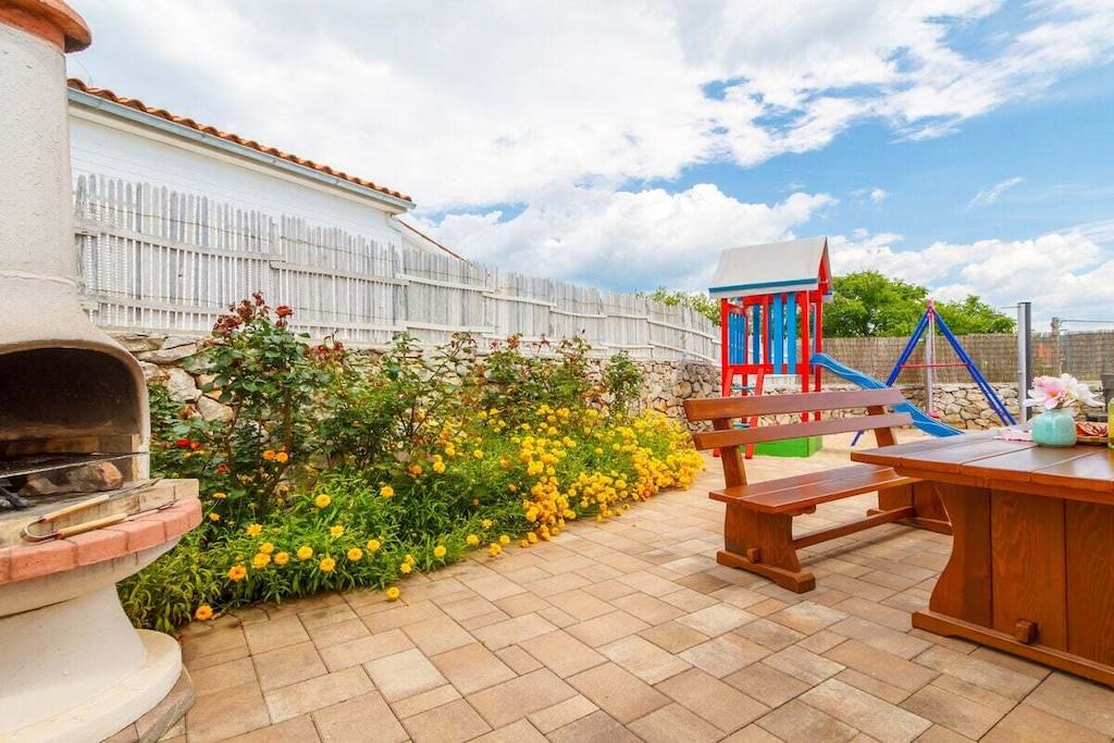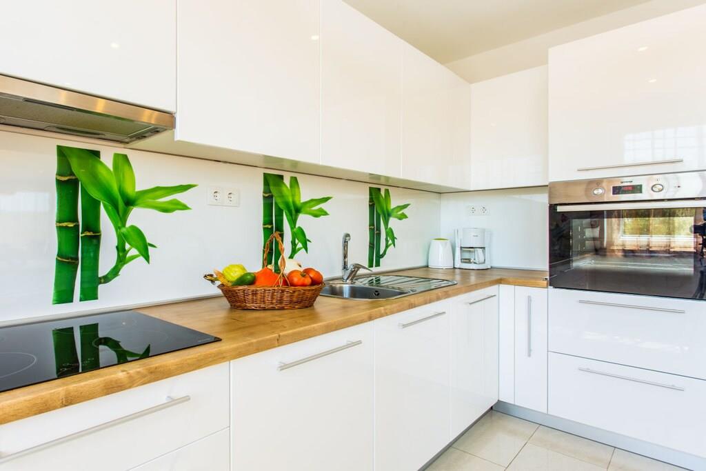 Denne smukke og smagfuldt indrettede villa ligger i den lille landsby Kornic. Fra den store tagterrasse, hvor swimmingpoolen også ligger, har I en storslået panoramaudsigt over Punat og øen Kosljun. Feriehuset har en tagterrasse med pool, hvorfra I kan nyde den fantastiske havudsigt. Efter en svømmetur kan I slappe af i spabadet eller saunaen, der også har havudsigt. Slap af i denne lille oase. Huset har en terrasse på første sal og en have bagved. Der er også en grill.