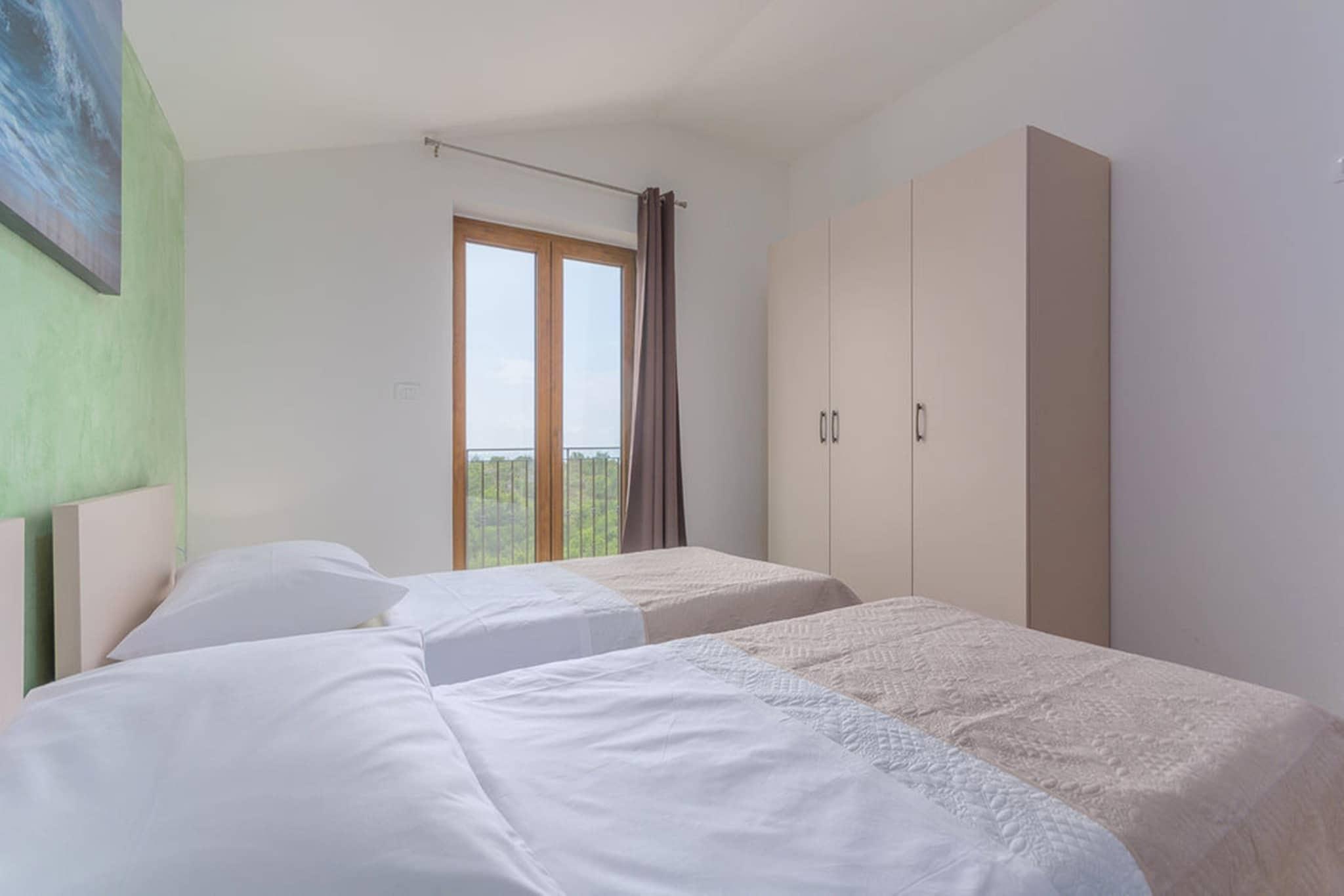 Beliggende i det fredfyldte Skitaca-område tilbyder denne smukke 3-værelses villa et roligt tilflugtssted med en privat swimmingpool og en fantastisk havudsigt. Villaen kan rumme op til 8 personer, hvilket gør den til et ideelt tilflugtssted for familier eller små grupper. Udendørsområdet er perfekt til afslapning med 10 liggestole omkring poolen, en grill for kulinariske entusiaster og en dejlig terrasse med solskygge. Derudover kan børn nyde timevis af underholdning med bordtennis og en trampolin, hvilket sikrer, at alle får et mindeværdigt ophold. Villaens interiør er gennemtænkt designet til komfort og bekvemmelighed. Stueetagen har en rummelig stue med pejs samt et fuldt udstyret køkken og spiseplads. Ovenpå tilbyder de tre soveværelser, hver med eget badeværelse, private retreater, og hvert værelse har adgang til en balkon med betagende udsigt. Ejendommen tilbyder også gratis Wi-Fi og parkering, hvilket sikrer gæsterne en gratis oplevelse. Beliggende kun 5 km fra landsbyen Koromacno, kan gæsterne nyde lokale faciliteter såsom en købmand, kaffebar og apotek. Den nærliggende by Labin (23 km) byder på en historisk gammel by at udforske, mens de smukke strande i Koromacno og det populære Scuba-center Sv. Marina (15 km) er perfekt til vandaktiviteter. Med den større by Pula (60 km) og andre attraktioner som bådudlejning på Autokamp Tunarica, er denne villa ideelt beliggende for både afslapning og eventyr.