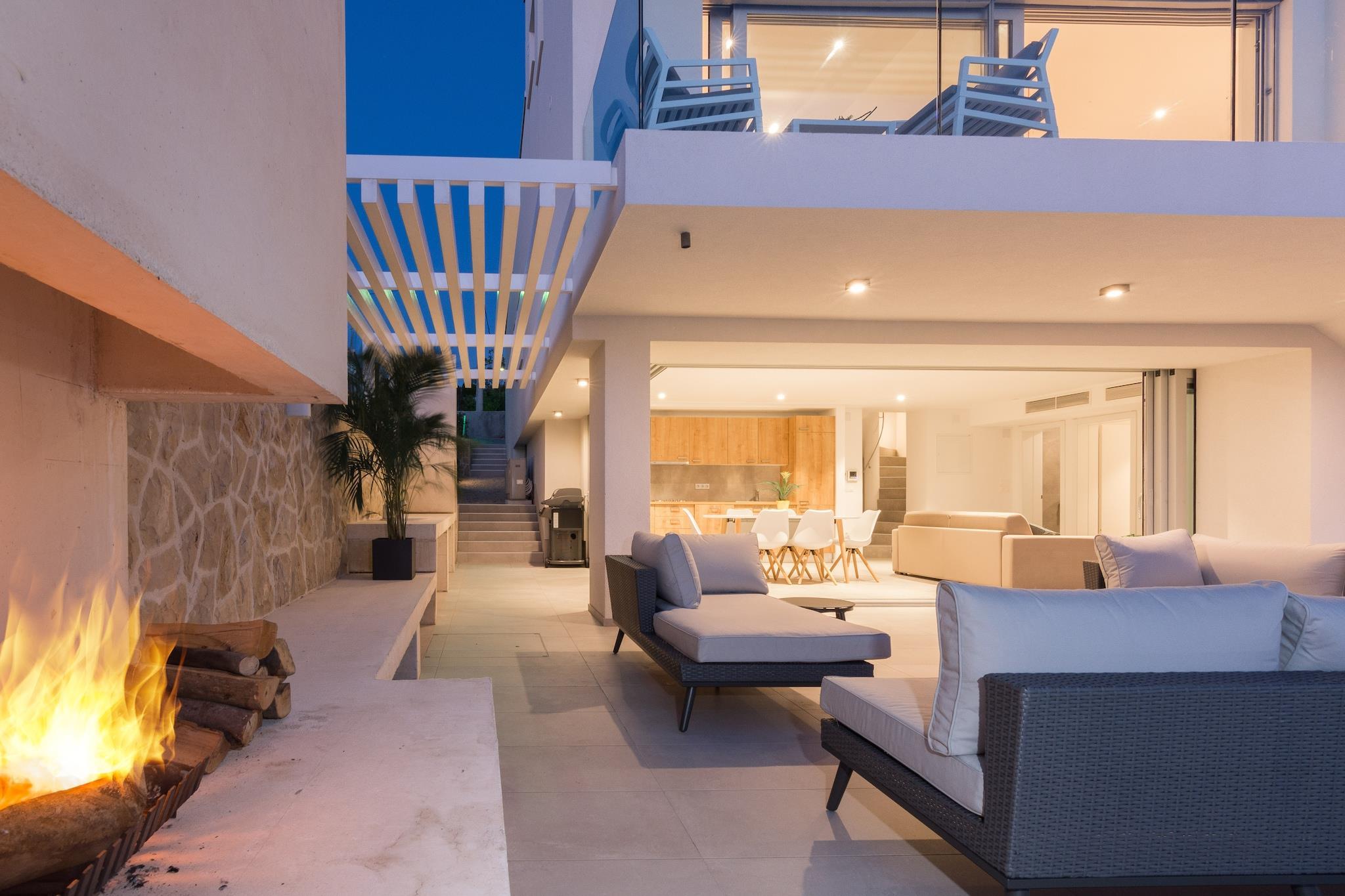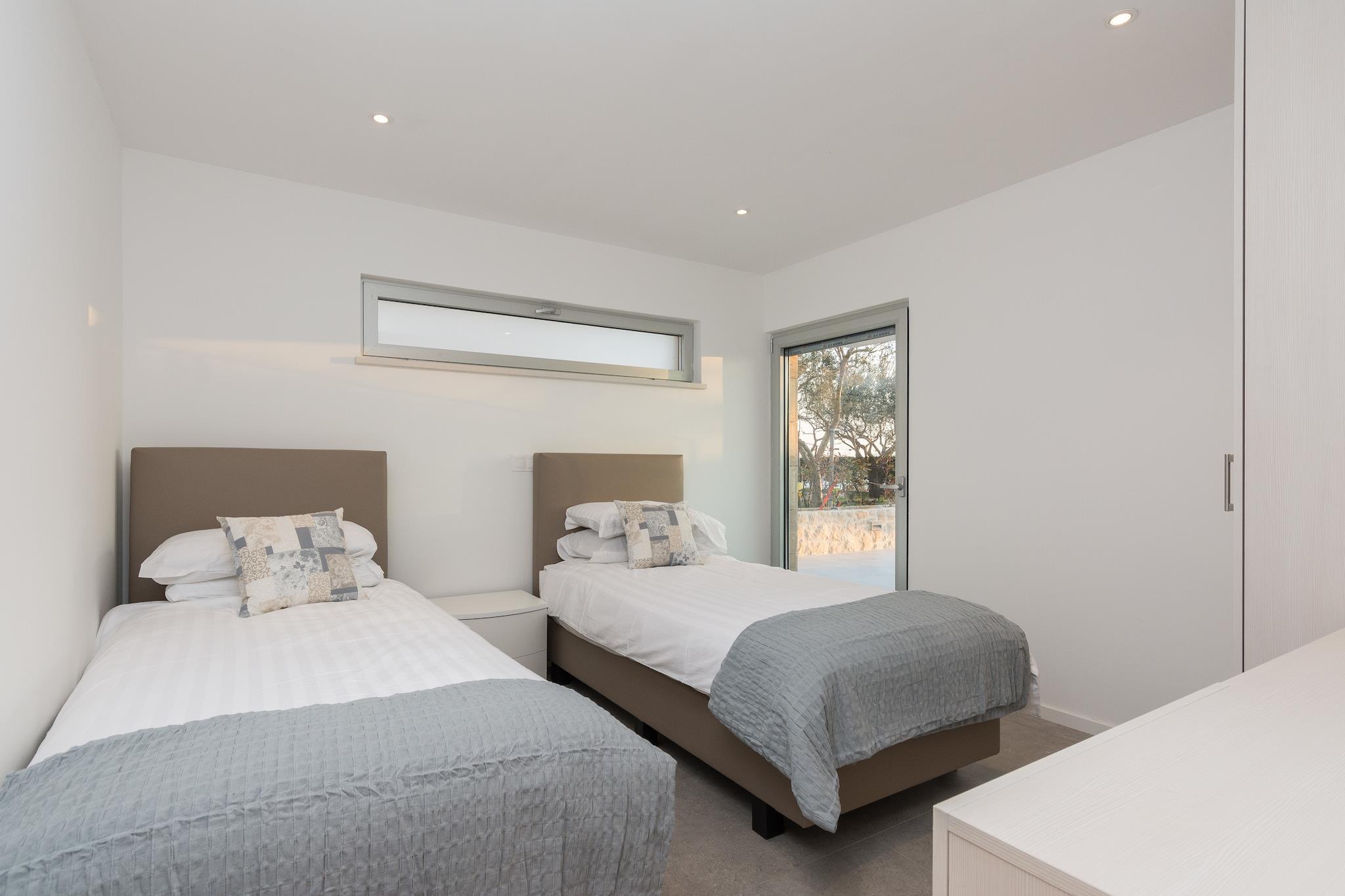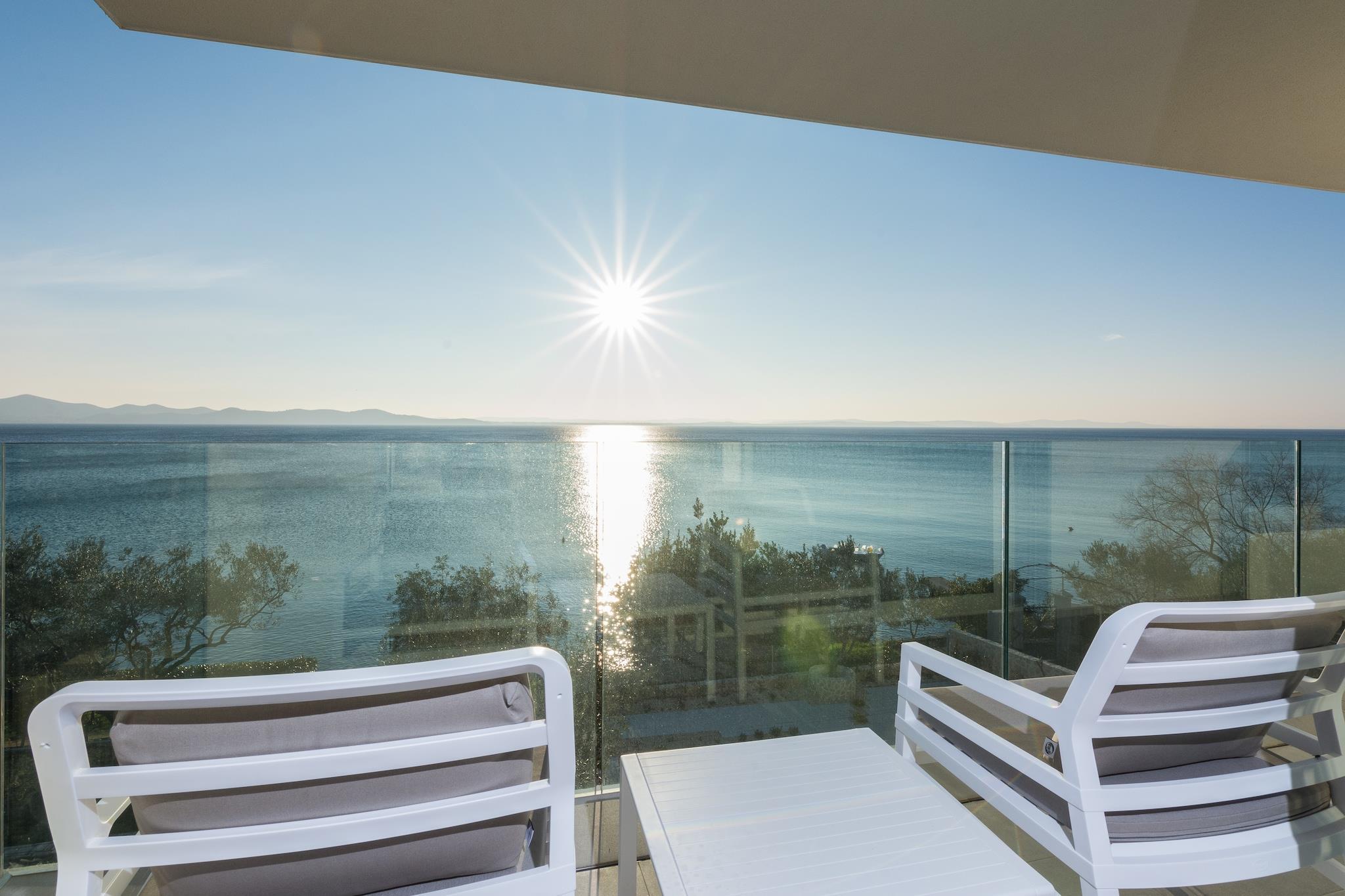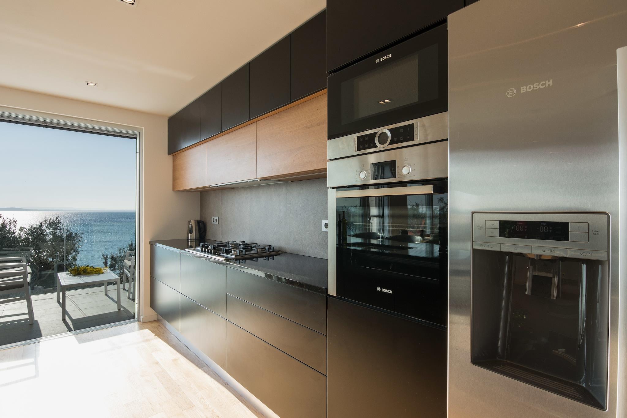 En moderne, rummelig luksus tre niveau villa beliggende ved vandkanten med uhindret udsigt over Adriaterhavet. Gulv til loft vinduer oversvømmer villaen med naturligt lys og giver en fantastisk udsigt over havet og øerne i det fjerne. Perfekt til familier eller voksne vennegrupper på op til 10 for at nyde et afslappende ophold i hjertet af Dalmatien. Fuldt airconditioneret i alle boliger og soveområder. Grundniveauet har skydedøre, der åbner på to sider for at skabe et indendørs udendørs opholdsrum. niveau har et fuldt udstyret køkken, spiseplads, vaskemaskine / tørretumbler, udendørs pejs og gasgrill. Du har også direkte adgang til havet. På dette niveau er der et soveværelse med to enkeltsenge, direkte adgang til terrassen og et komplet badeværelse . Det andet niveau er det primære boligareal med et luksuriøst køkken, spiseplads, tv / opholdsstue og en udendørs terrasse. På dette niveau er der også et soveværelse med køjesenge og et komplet bad. På tredje niveau er der to rummelige soveværelser Vid h dronning senge og ensuite badeværelser med opvarmede gulve. Begge værelser tilbyder en fantastisk udsigt med et soveværelse med egen privat terrasse. Strandbyen ligger i den rolige landsby Kozino. Der er flere restauranter i gåafstand fra villaen. Byen Zadar ligger 10 minutter i bil. Nabolandsbyen Petrcane byder på masser af sommeraktiviteter i turistsæsonen.