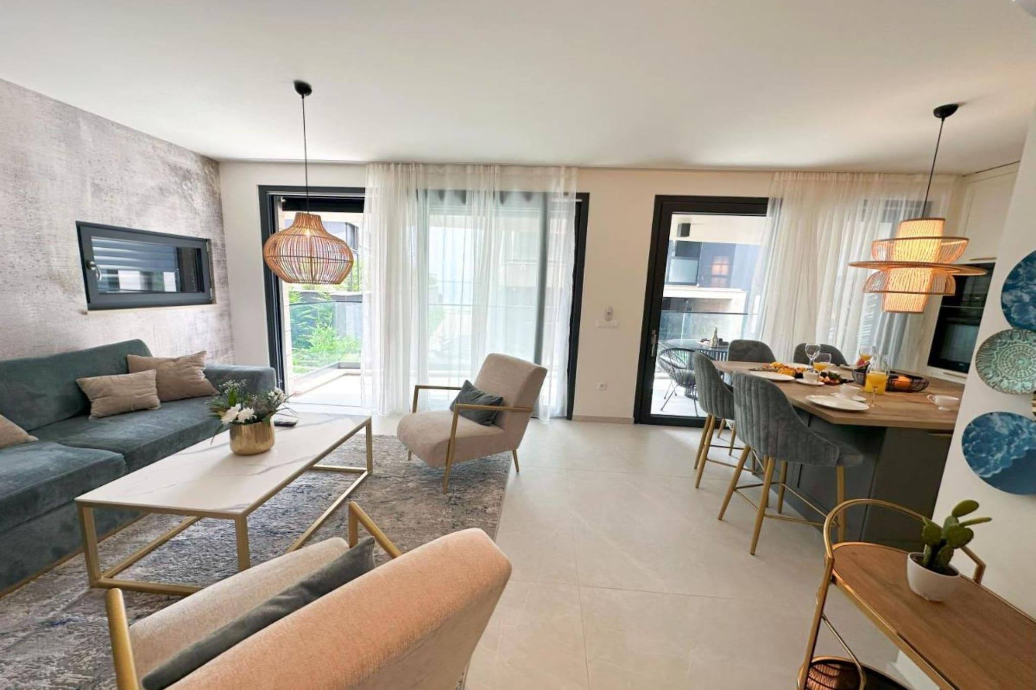 Leonarda Waterfront Residences in Kožino, Zadar County, Croatia, is a modern, upscale property offering beachfront accommodations with direct access to the Adriatic Sea. Guests enjoy spacious, air-conditioned apartments featuring sea-view balconies or terraces, fully equipped kitchens, free Wi-Fi, and private parking. The residence is ideal for a relaxing seaside stay, located just a short drive from Zadar’s historic center and nearby beaches, making it perfect for both leisure and cultural exploration. Note: Private parking is available, and a reservation is not required. Wi-Fi is available throughout the property. Pets are allowed and it costs 20 euros per night. This one-bedroom can accommodate up to four guests. It features an SAT/flat-screen TV and is combined with a Safety deposit box. The private bathroom is equipped with a shower and toilet. Free toiletries are available on request. Thanks to its excellent location, everything you'll need for your vacation is just a short walk from the property. Grocery stores, cafes, restaurants—everything is within a 400 m radius. The beach is 50 m away from the property. The airport is 20 km away from the property.