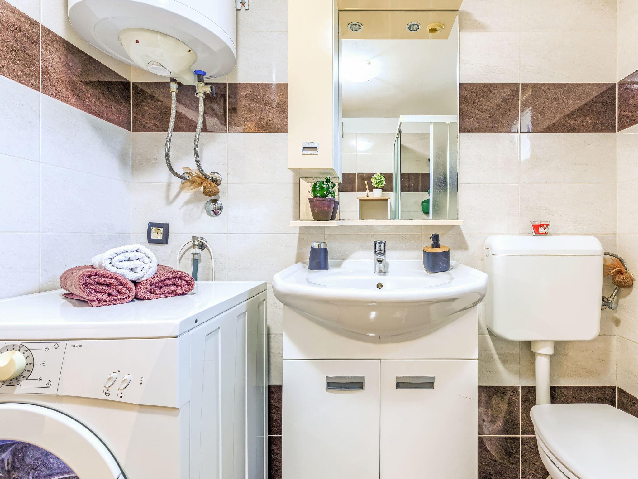 2-room apartment 50 m2, on the ground floor. Living/dining room, ceiling height 210 cm with 1 sofabed (140 cm, length 180 cm), satellite TV (flat screen), air conditioning. 1 room with 1 bed (90 cm, length 200 cm), 1 french bed (140 cm, length 200 cm). Open kitchen (4 hot plates, oven, microwave, freezer, electric coffee machine), ceiling height 210 cm. Shower/WC. Forced-air heating. Deck chairs. Facilities: washing machine, hair dryer. Internet (WiFi, free). 513-07-28-006-2017-2