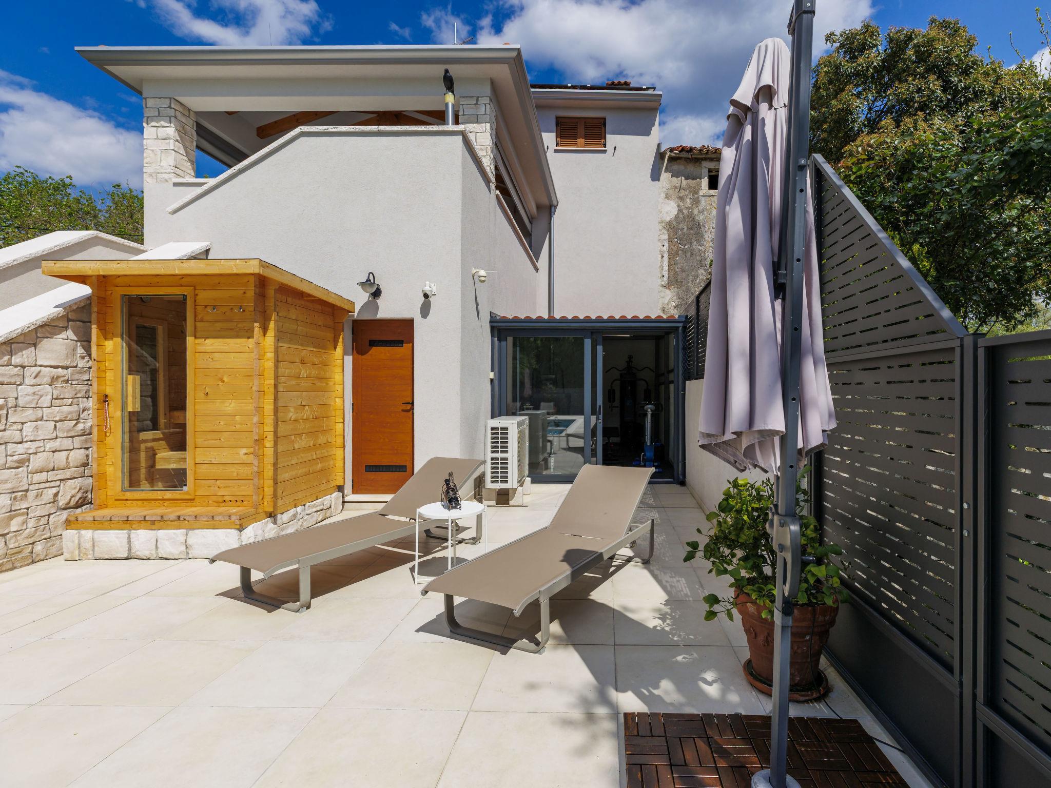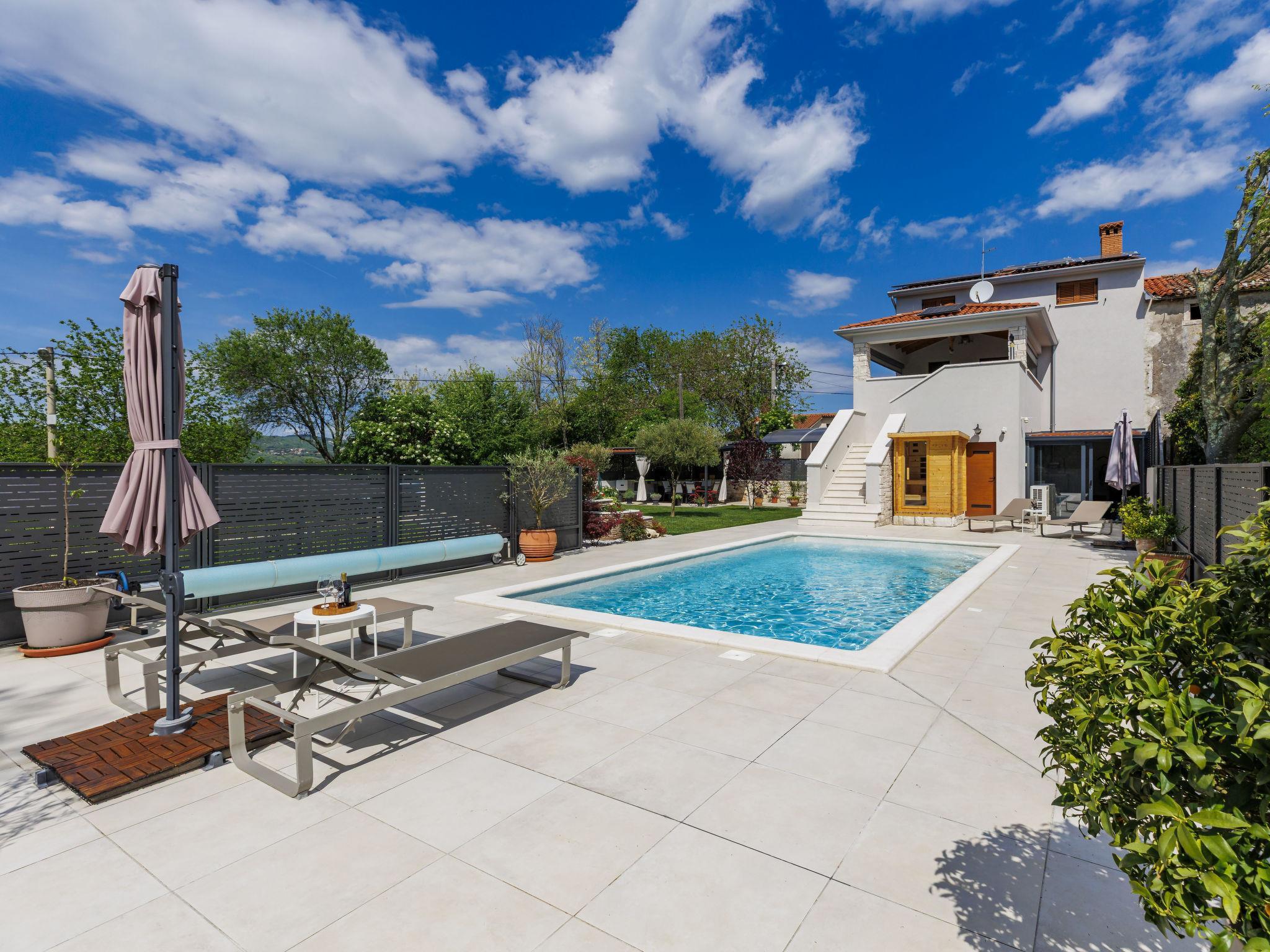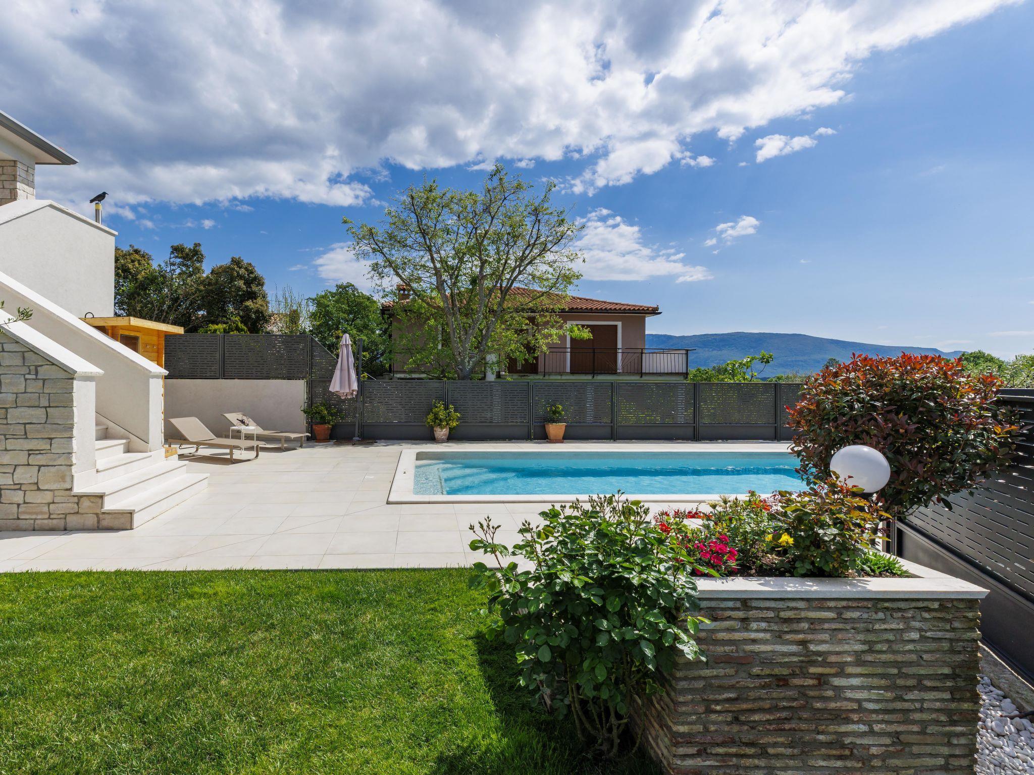 Beautiful single-family house "Villa Lora", 2 storeys. Cambarelici 13 km from the centre of Labin, 18 km from the centre of Rabac, in a quiet, sunny position, 9 km from the sea, 9 km from the beach. Private: property 650 m2 (fenced) with lawn and wildlife garden, swimming pool angular, heated (8 x 4 m, depth 150 cm, seasonal availability: 15.May. - 15.Oct.) with internal staircase. Outdoor shower, terrace, garden furniture, barbecue, pool maintenance by the owner/gardener. In the house: internet access, fitness room, infrared sauna, washing machine. Parking (for 2 cars) at the house on the premises. Shop 3 km, supermarket 13 km, restaurant 3 km, bus stop 6.4 km, pebble beach 9 km. The owner does not accept any youth groups. Please note: part of the house is closed and unoccupied. Airfield 54 km from the property. Swimming pool heated (extra). It is necessary to announce 7 days in advance if the heating (extra) is required.