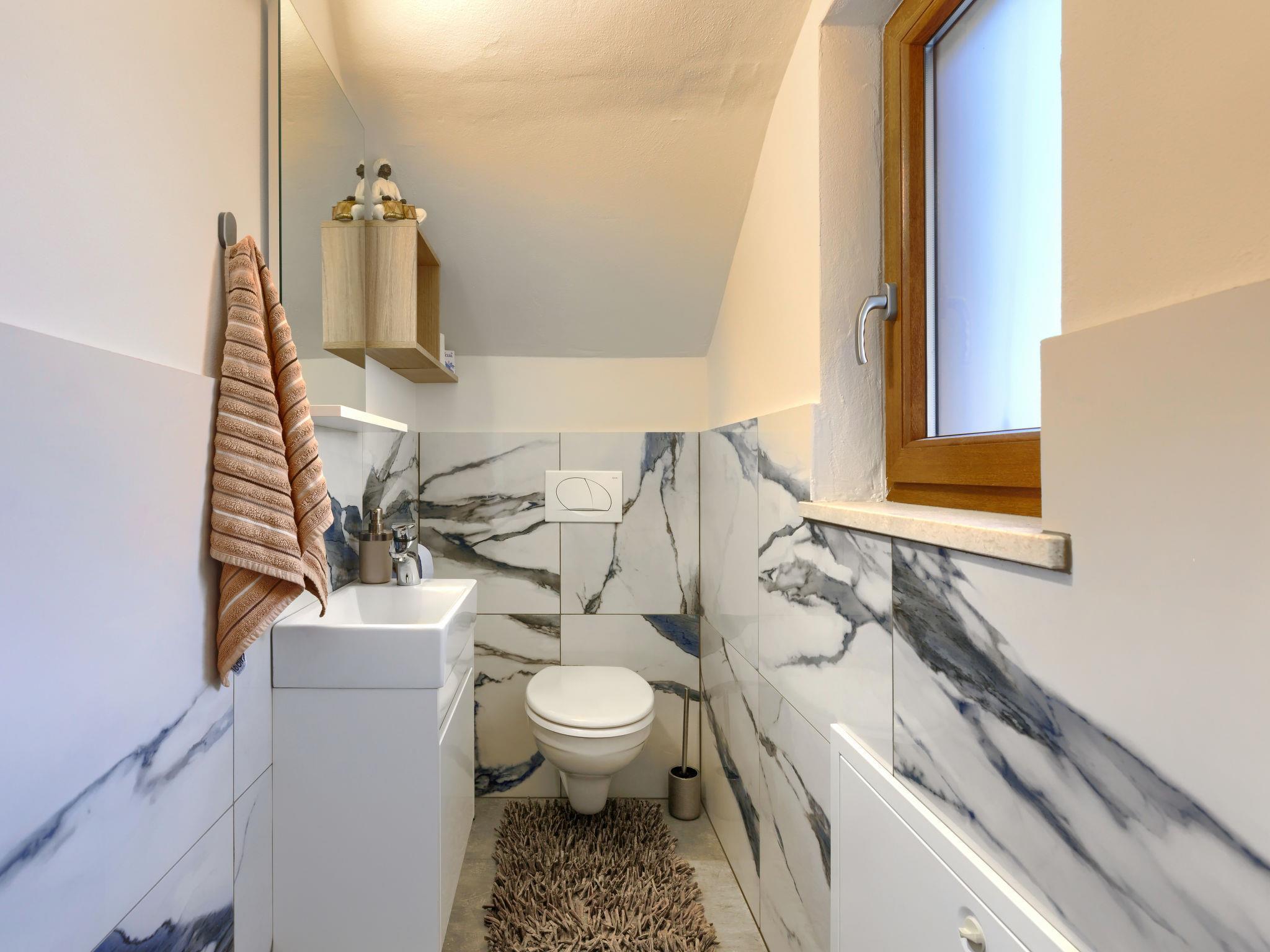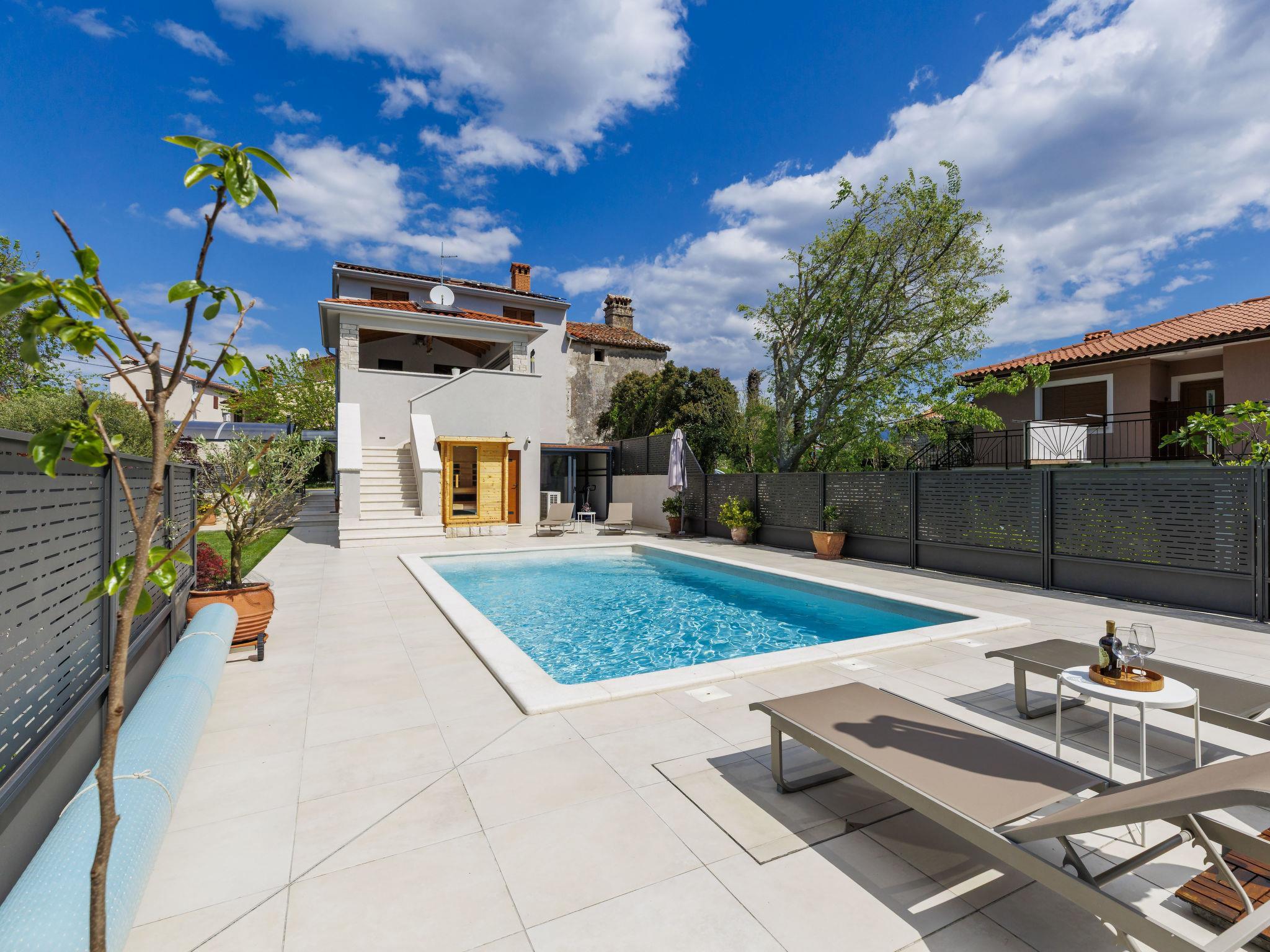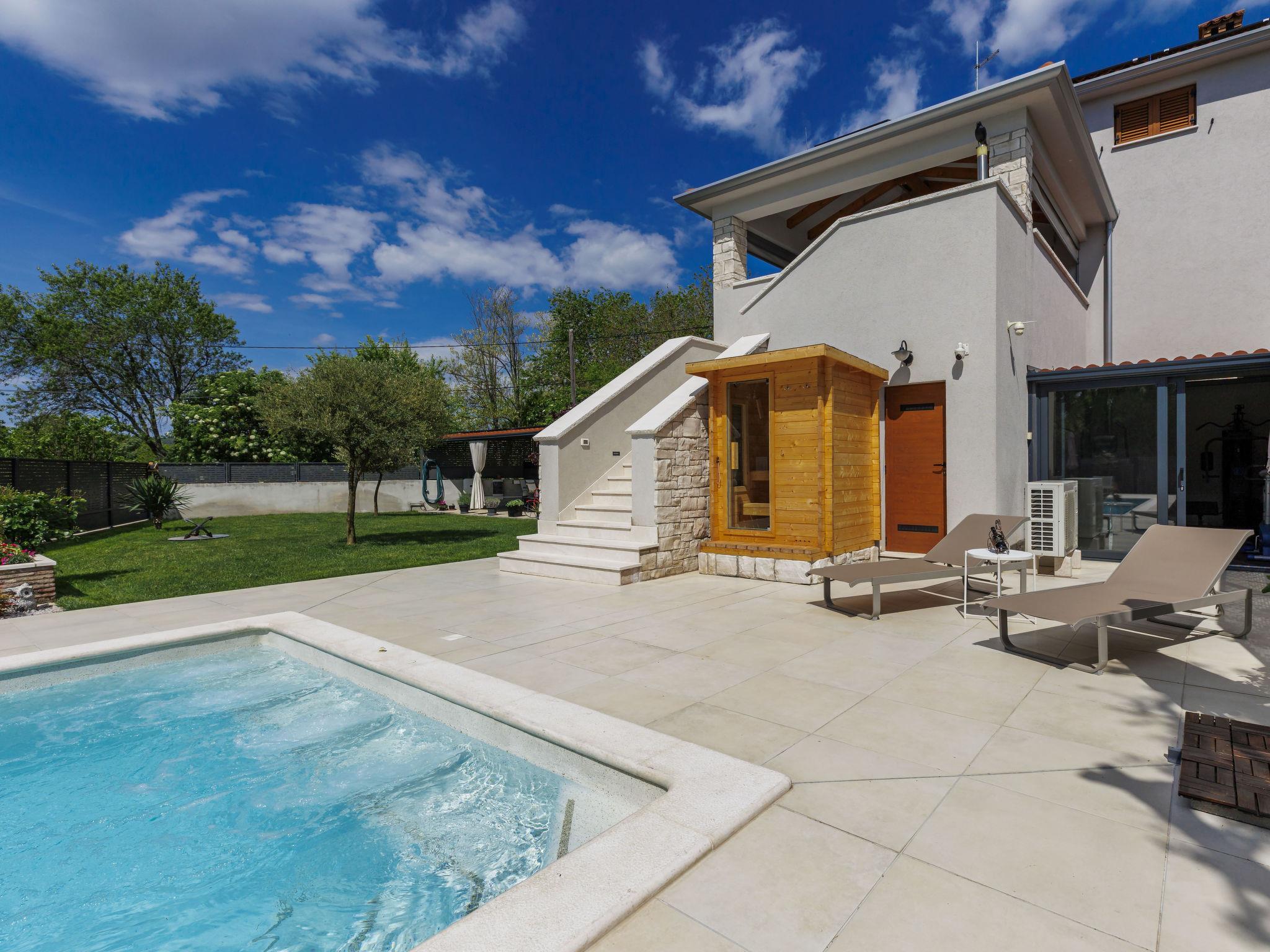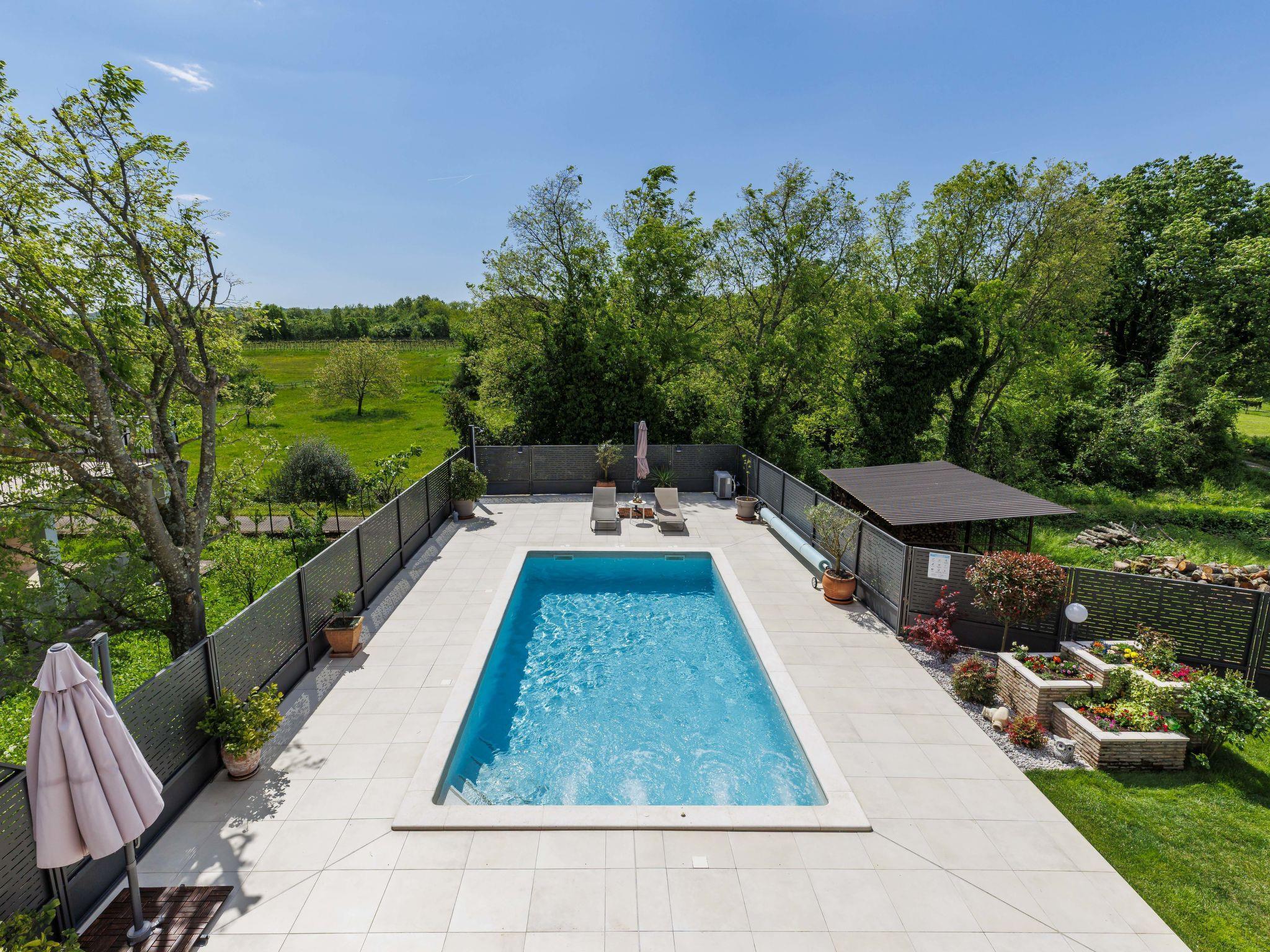 Beautiful single-family house "Villa Lora", 2 storeys. Cambarelici 13 km from the centre of Labin, 18 km from the centre of Rabac, in a quiet, sunny position, 9 km from the sea, 9 km from the beach. Private: property 650 m2 (fenced) with lawn and wildlife garden, swimming pool angular, heated (8 x 4 m, depth 150 cm, seasonal availability: 15.May. - 15.Oct.) with internal staircase. Outdoor shower, terrace, garden furniture, barbecue, pool maintenance by the owner/gardener. In the house: internet access, fitness room, infrared sauna, washing machine. Parking (for 2 cars) at the house on the premises. Shop 3 km, supermarket 13 km, restaurant 3 km, bus stop 6.4 km, pebble beach 9 km. The owner does not accept any youth groups. Please note: part of the house is closed and unoccupied. Airfield 54 km from the property. Swimming pool heated (extra). It is necessary to announce 7 days in advance if the heating (extra) is required.