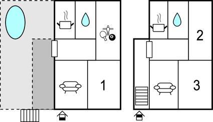 I den indhegnede have har I både adgang til swimmingpool og hyggelige solkroge. For de mindste er der et børnehjørne med bord og en rutsjebane.