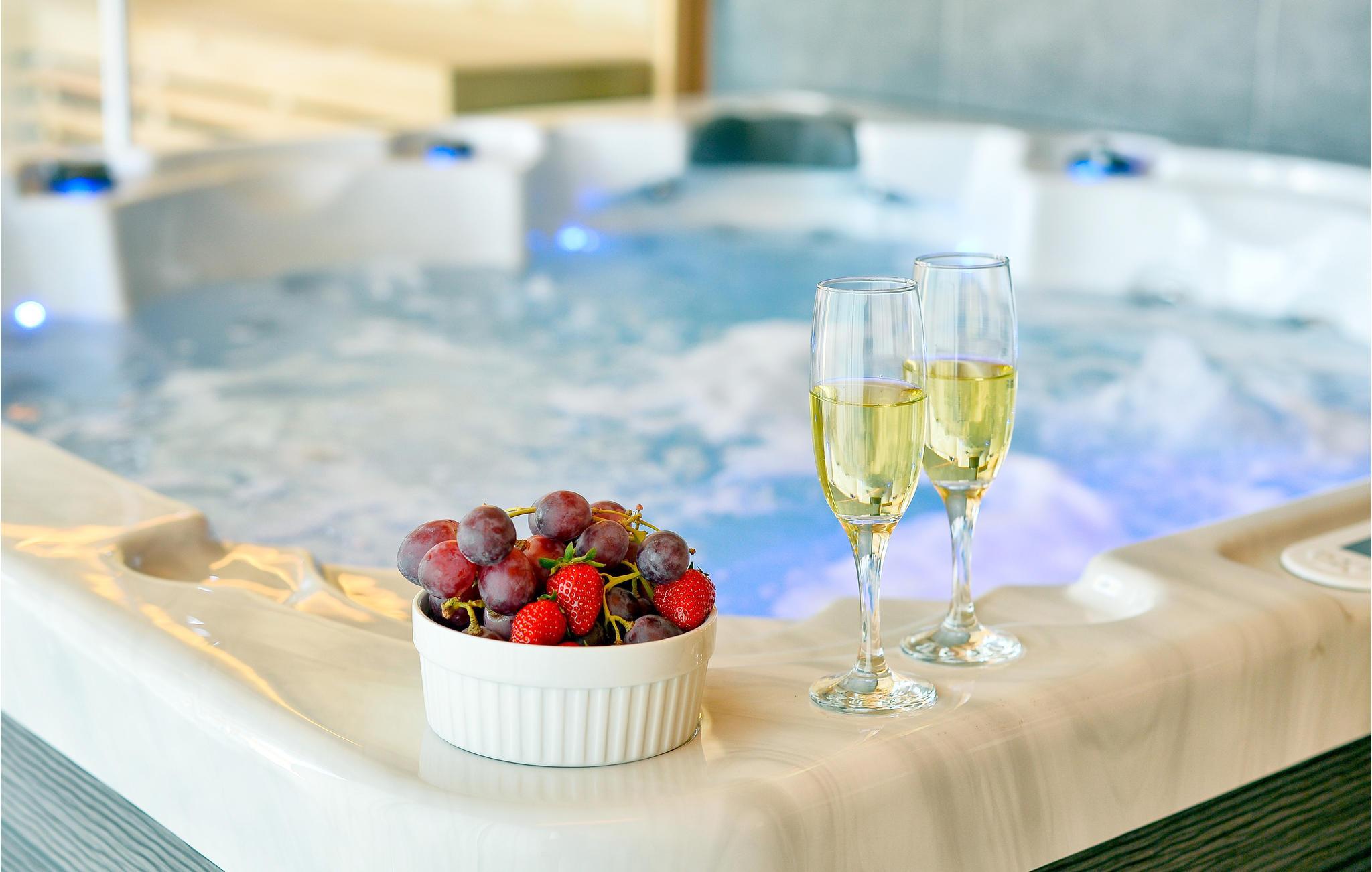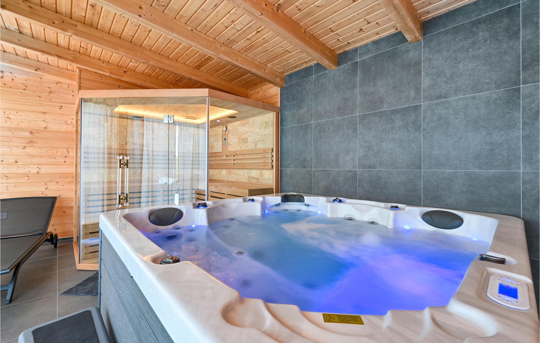 Ved siden af huset er en stor pool med vandmassage og en terrasse med solstole, hvor I kan slappe af med en god bog eller en forfriskende cocktail. Poolen kan benyttes mellem 1. juni og 1. oktober. Resten af året har I adgan til wellnessområdet med sauna og boblebad, som er lukket i sommerhalvåret.