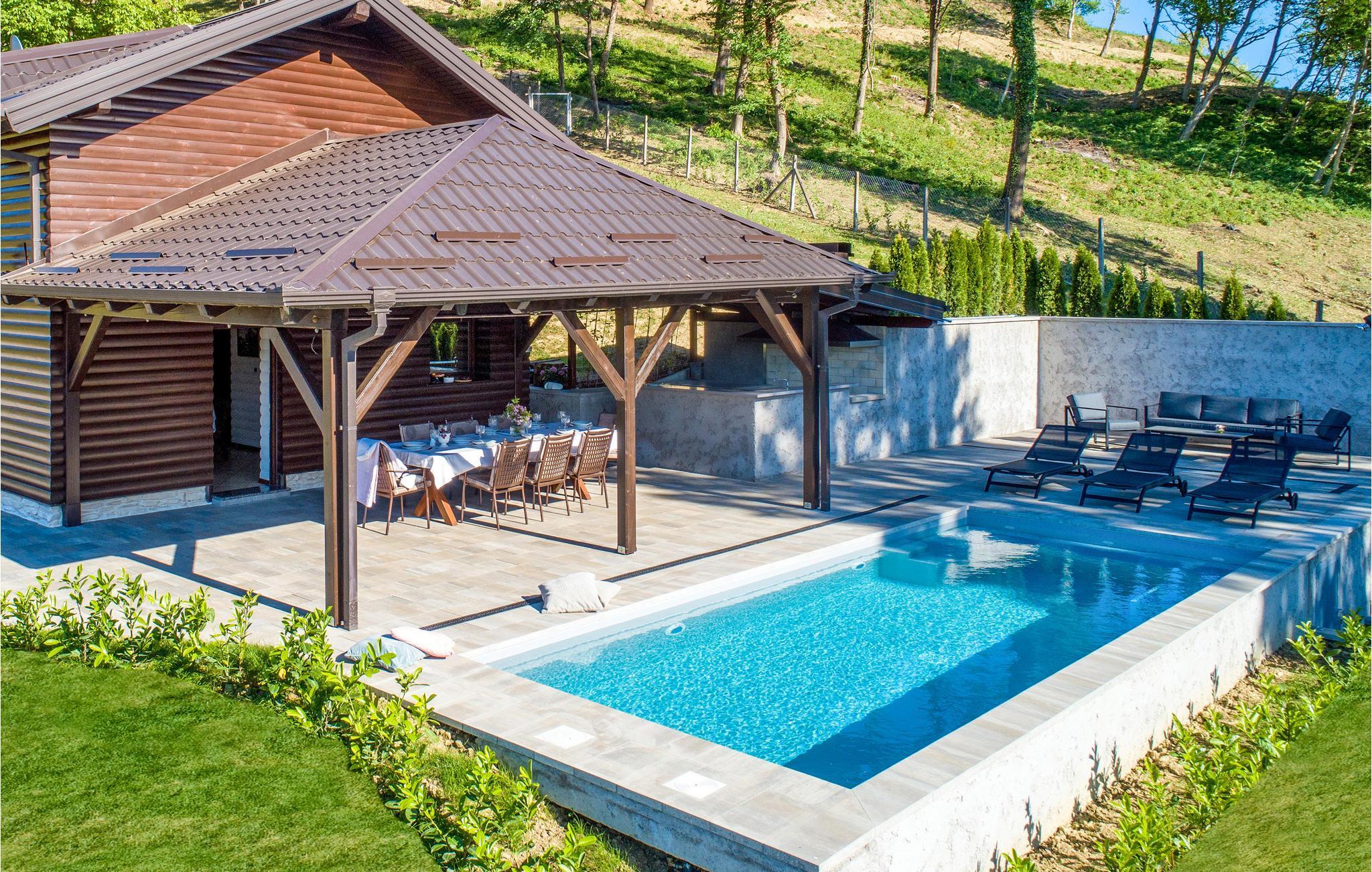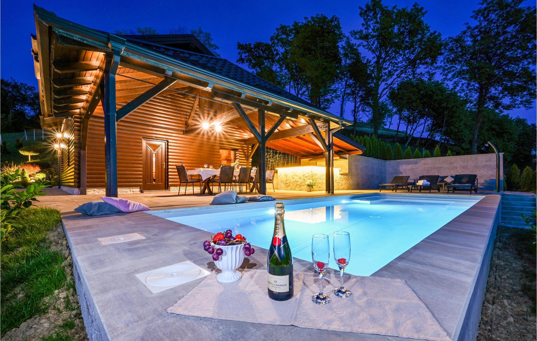 Skøn og rummelig bjerghytte med pool og wellness, beliggende i et smukt bjerglandskab nord for Zagreb.