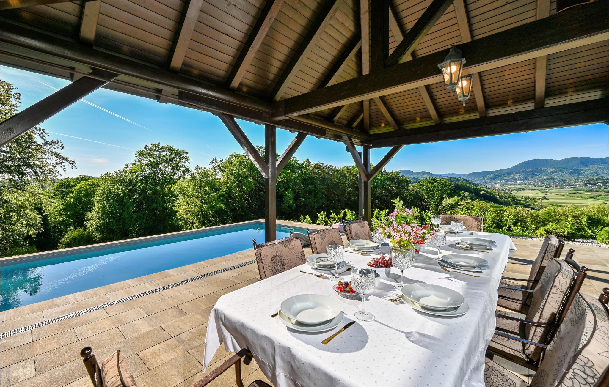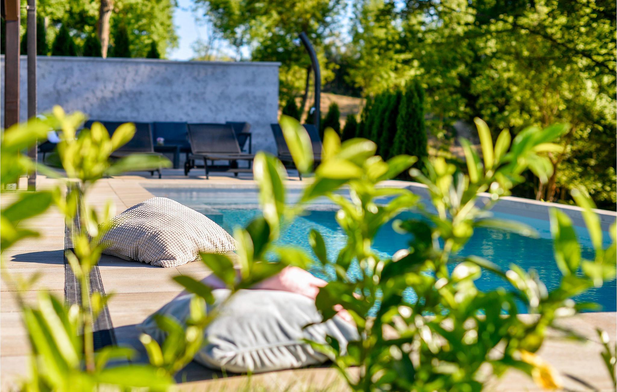 Udenfor kommer I til at tilbringe mange skønne timer ved poolen og på den overdækkede terrasse, hvor I kan sidde og hyggesnakke, fordybe jer i spændende ferielæsning eller nyde jeres måltider. I har grill og et udendørskøkken til rådighed, så I kan tilberede lækre retter.