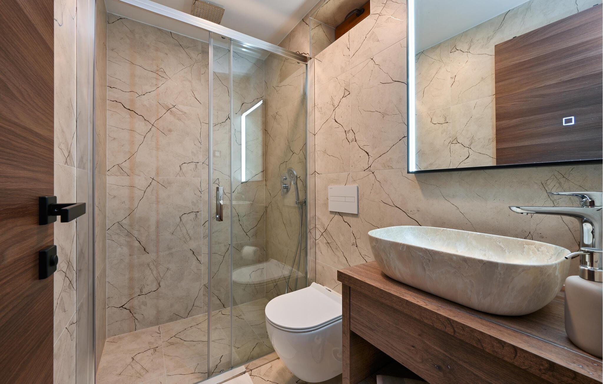 Badeværelse 4m2 (nr. 2) - WC. Varmt og koldt vand. Bruser