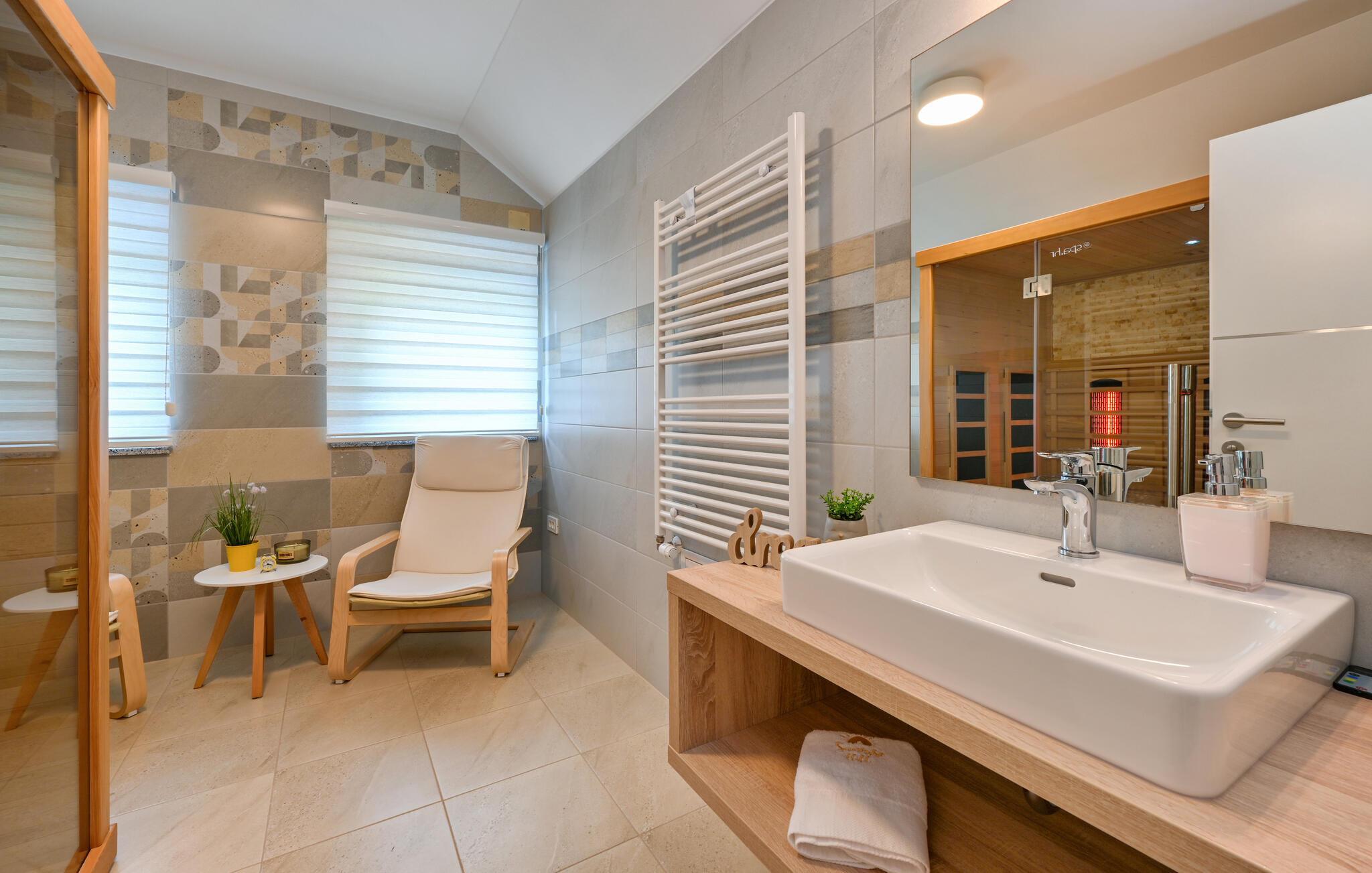 Udenfor finder du en altan med en fantastisk udsigt og flere, delvis overdækkede terrasser. På varme dage inviterer den smukke, private udendørs pool (maj til slutningen af ??september) dig til at tilbringe afslappende timer i solen og i vandet.