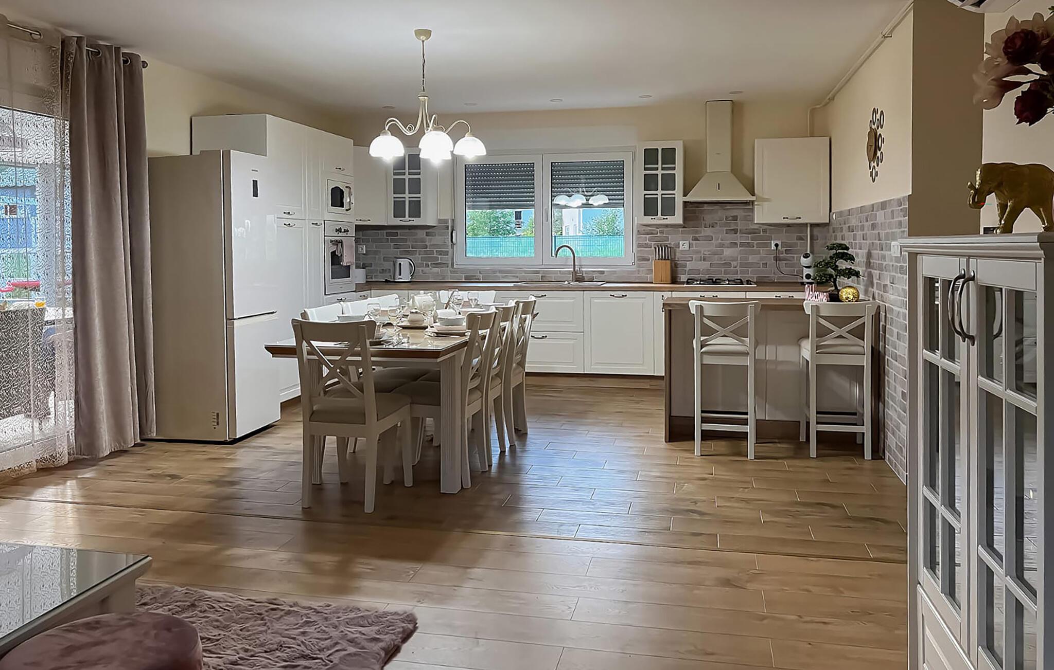 I dette rummelige feriehus kan I opleve feriekomfort for hele familien. De velindrettede værelser, fordelt på to etager, byder på plads til at tilbringe tid sammen samt hyggelige oaser. Madlavning er en fornøjelse i det åbne køkken, mens sofahjørnet er perfekt til afslappede filmaftener. I kan afslutte dagen med en grillmiddag på terrassen, og poolen indbyder til en afslappende svømmetur. Børn kan se frem til legeredskaber i haven - det er det perfekte sted for alle!
