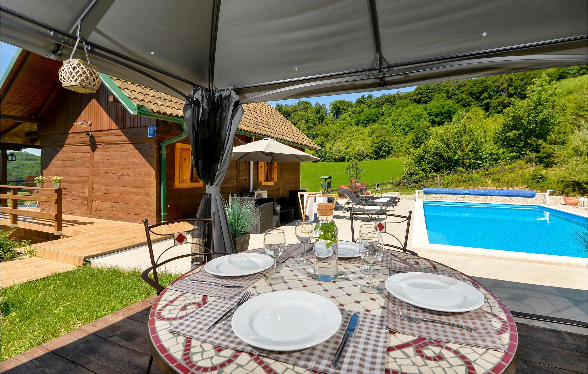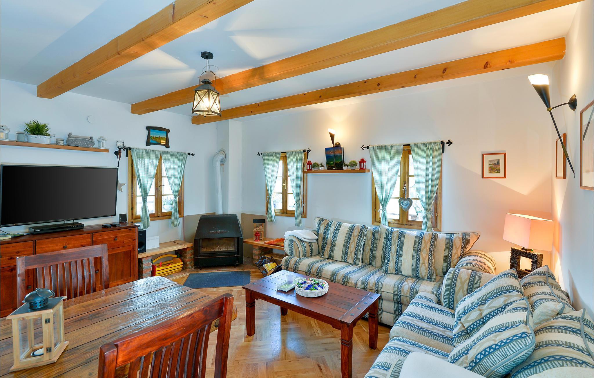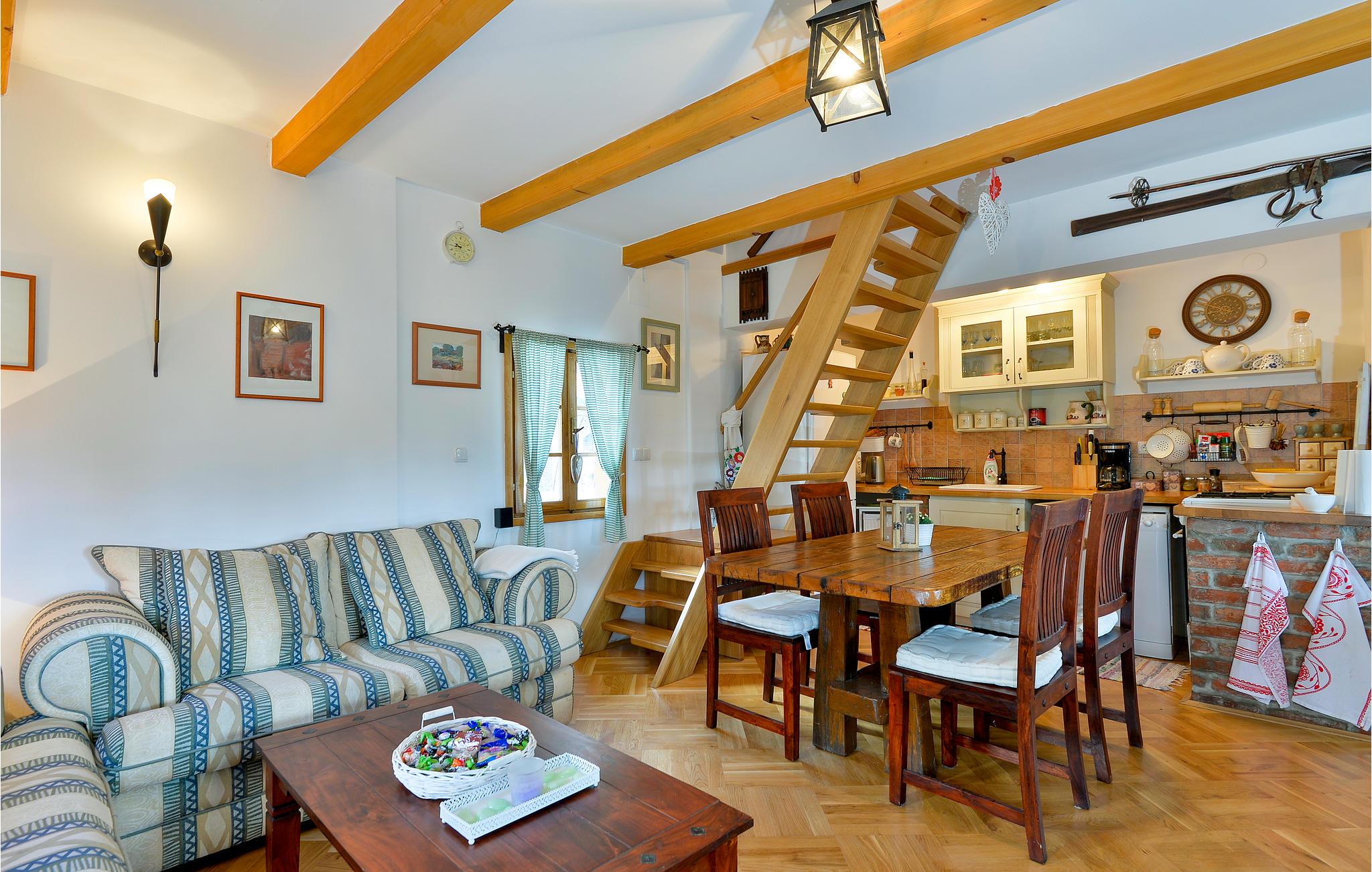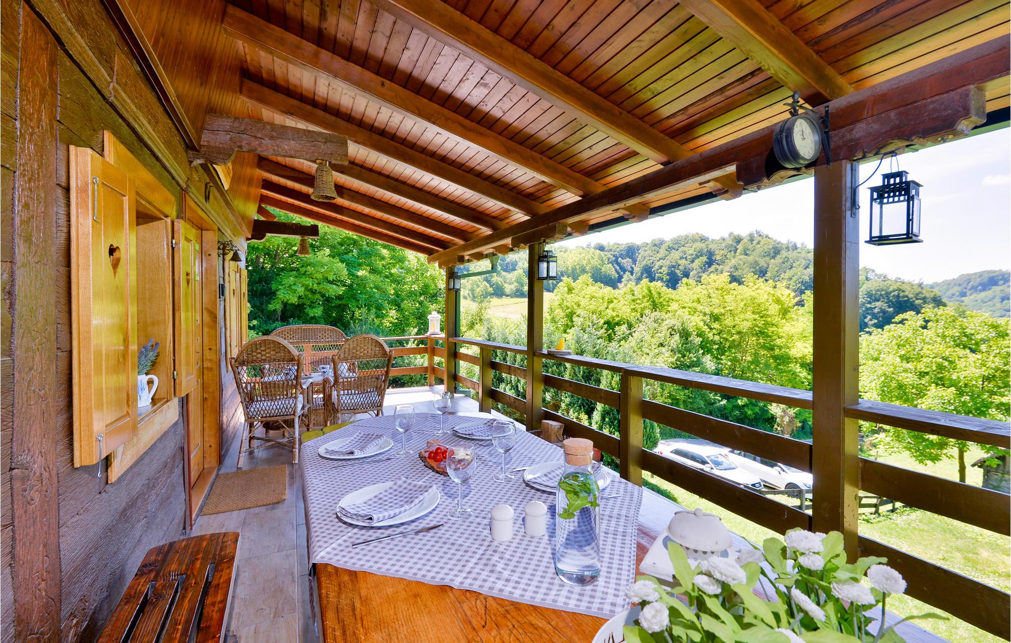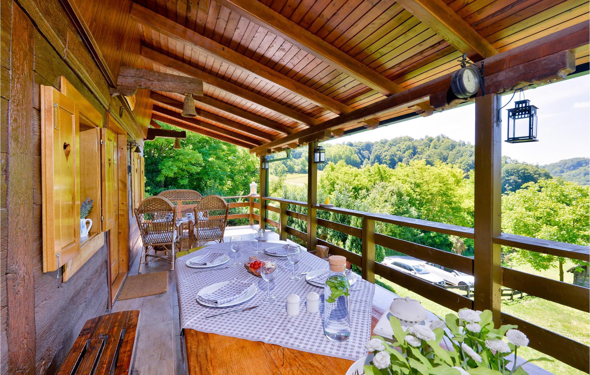Foran ligger en overdækket terrasse, hvor I kan spise jeres mad med udsigt over det smukke landskab og Zagorje's bakker. I stueplan findes et åbent køkken med spiseplads og opholdsstue samt et badeværelse. På 1. sal ligger 2 soveværelser, hvor det ene er et gennemgangsværelse til det andet. Huset er meget velegnet til en børnefamilie.