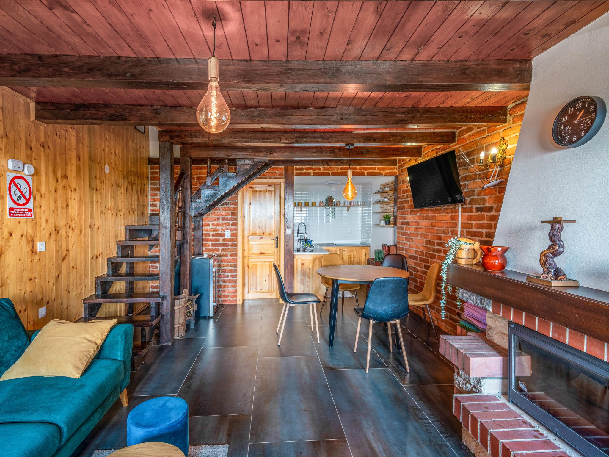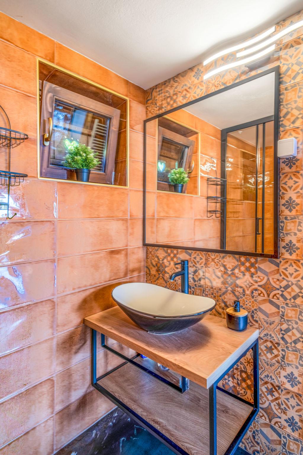 3-room house 80 m2 on 3 levels. Living/dining room with satellite TV (flat screen), wood-burning stove. Open kitchen (4 induction hot plates, kettle). Shower/WC. On the lower ground floor: (exterior staircase). Open kitchen (oven, dishwasher, 4 induction hot plates, toaster, kettle, microwave, freezer, electric coffee machine). Top floor: entrance hall with air conditioning. 1 room, ceiling height 80 - 230 cm with 2 beds (80 cm, length 200 cm). 1 room, ceiling height 80 - 230 cm with 2 beds (80 cm, length 200 cm), 1 french bed (160 cm, length 200 cm). Exit to the balcony. Shower/WC. Wood heating. Balcony 7 m2, terrace 20 m2, roofed. Terrace furniture, balcony furniture. Beautiful view of the mountains and the resort. Facilities: washing machine, iron, mosquito net, children's high chair, baby cot, hair dryer. Internet (WiFi, free). Please note: non-smoking house. Fire extinguisher.