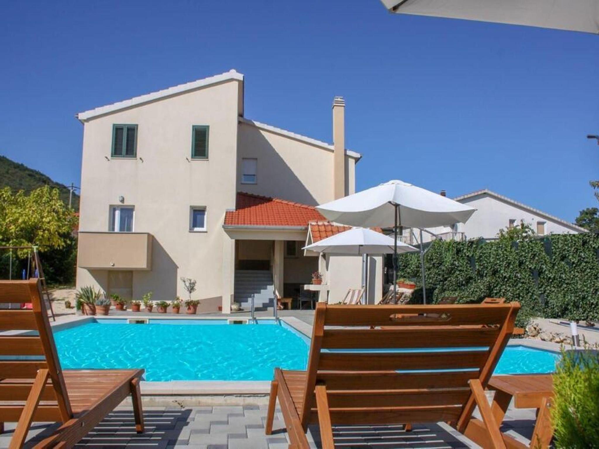 This holiday home has a private pool (38m²), private parking and a wide variety of activities for children and adults, including: child-friendly playground, volley ball net, trampoline, etc. Relax on the large terrace at the outdoor dining table or just sunbathe on the sun loungers under the golden Croatian sun.