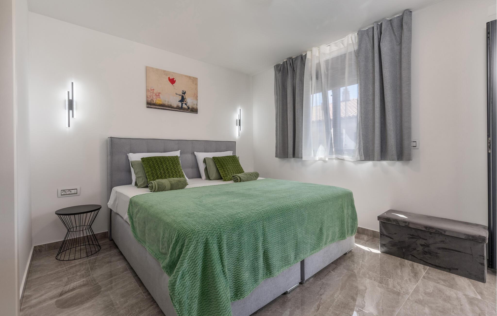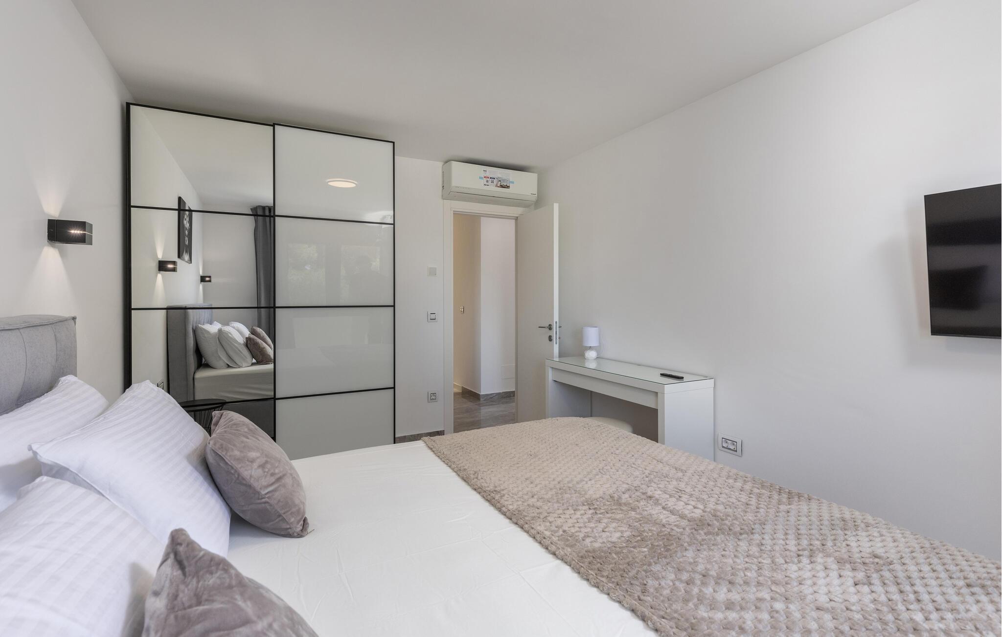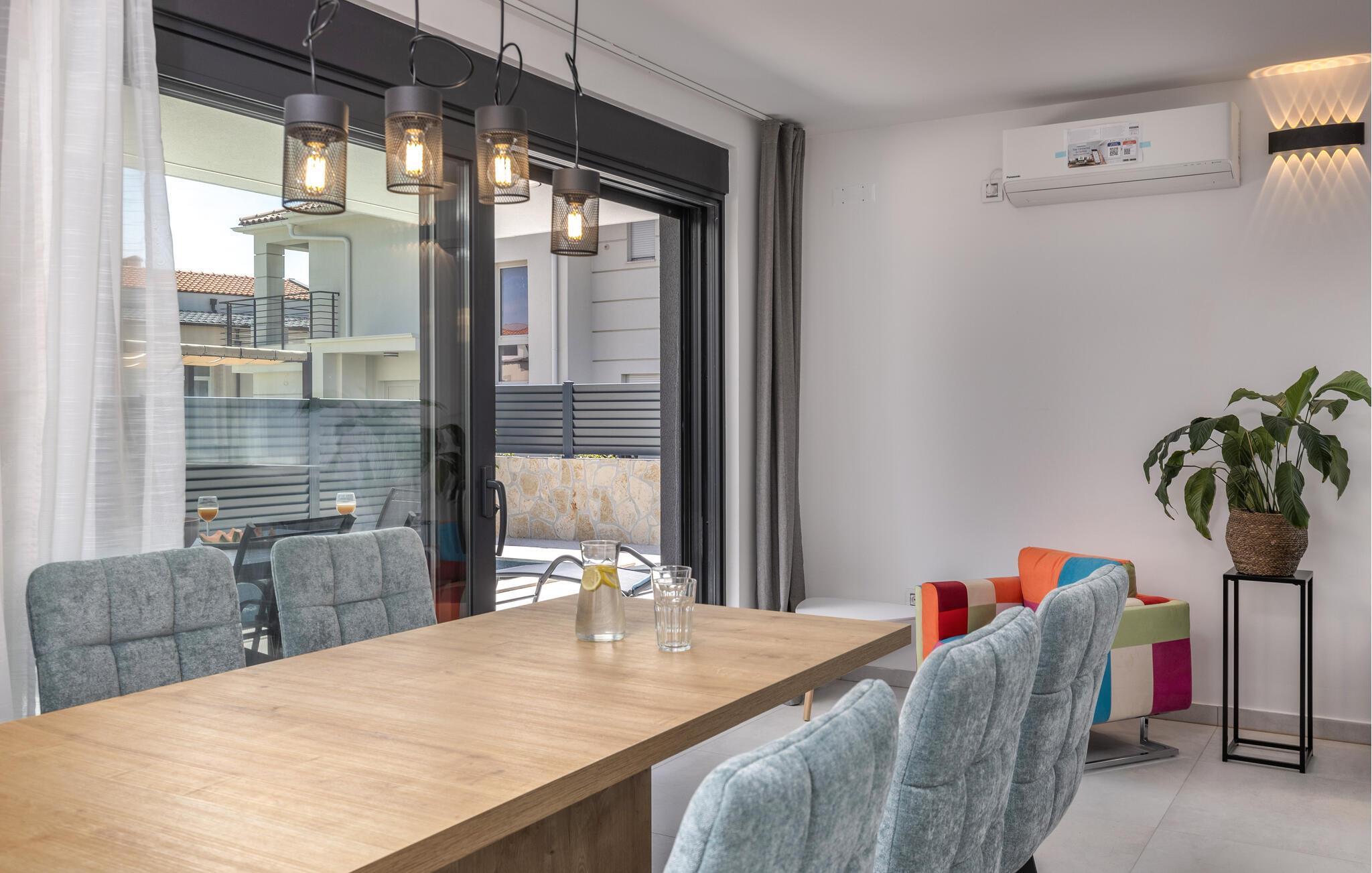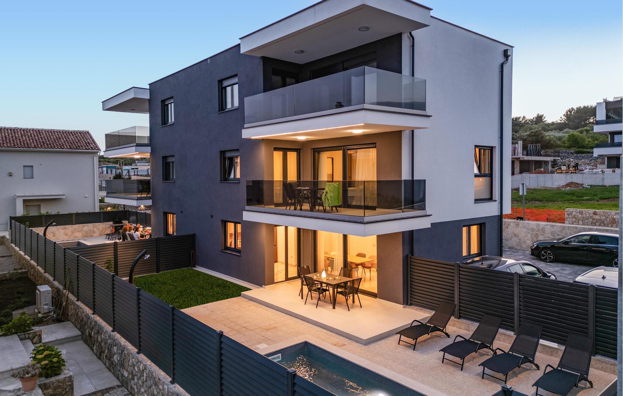 I den smukke by Krk ligger denne stilfulde bolig, som er fordelt over to etager og har plads nok til to familier. Begynd jeres feriedage med en forfriskende svømmetur i den udendørs pool og nyd derefter morgenmaden på en af de to overdækkede terrasser, som er ideel til hyggelige måltider og aftener udendørs. Den smukke udsigt over landskabet skaber en afslappende kulisse og giver jer mulighed for hurtigt at glemme alt om hverdagen. Lejligheden har fuld aircondition, så I kan nyde behagelige temperaturer selv på de varmeste dage. Den moderne, stilfulde indretning sikrer, at I vil føle jer hjemme.