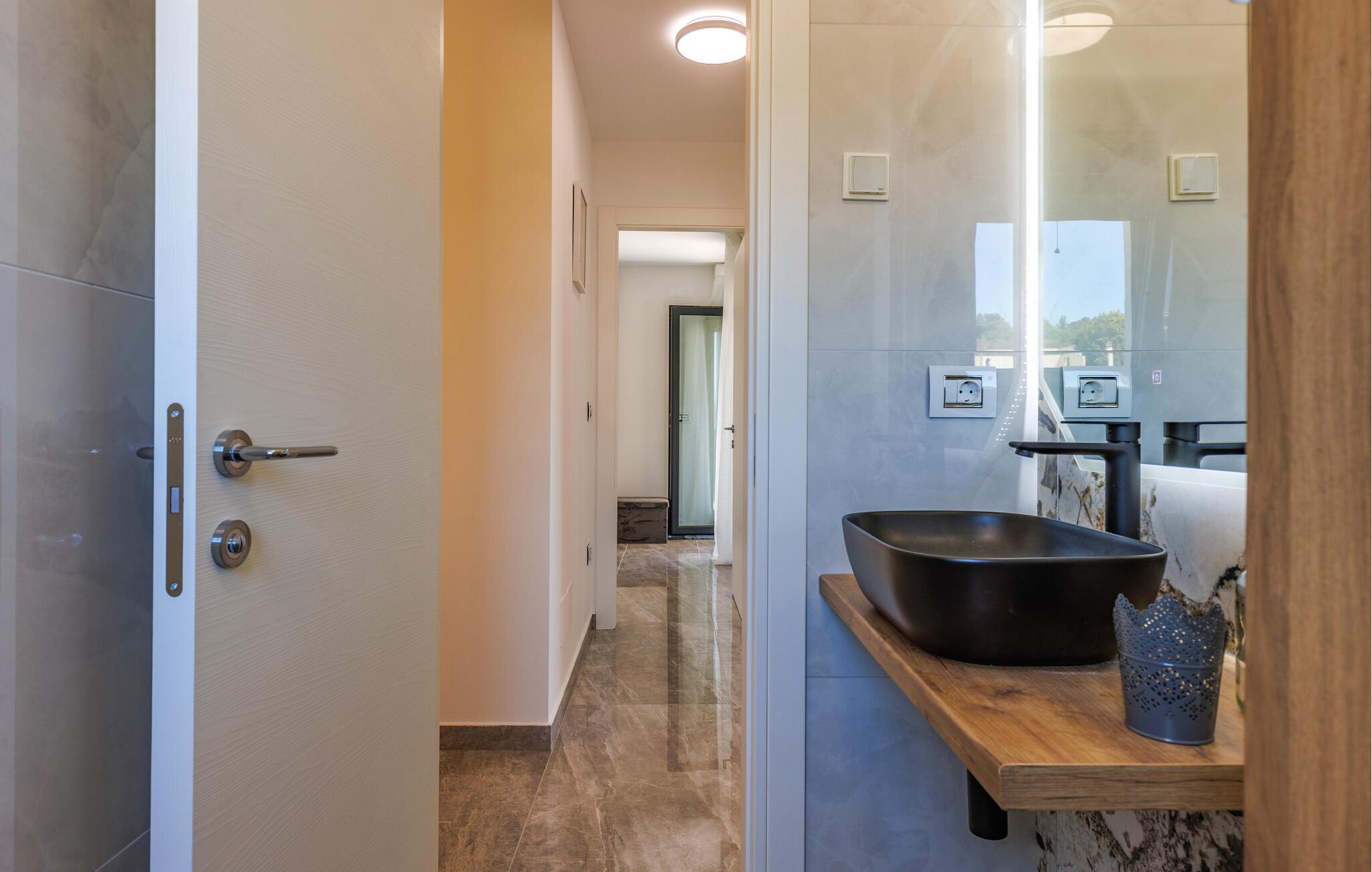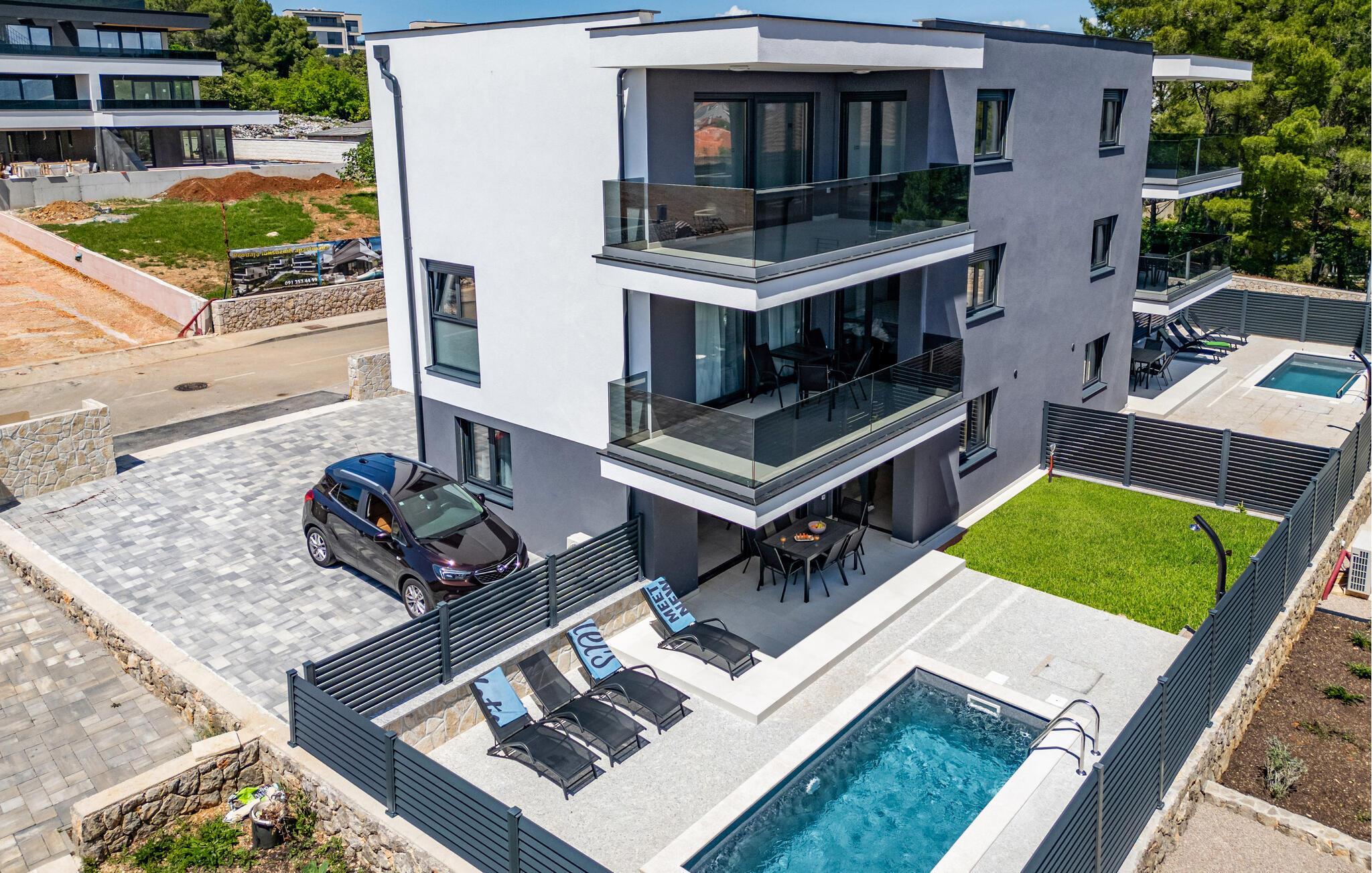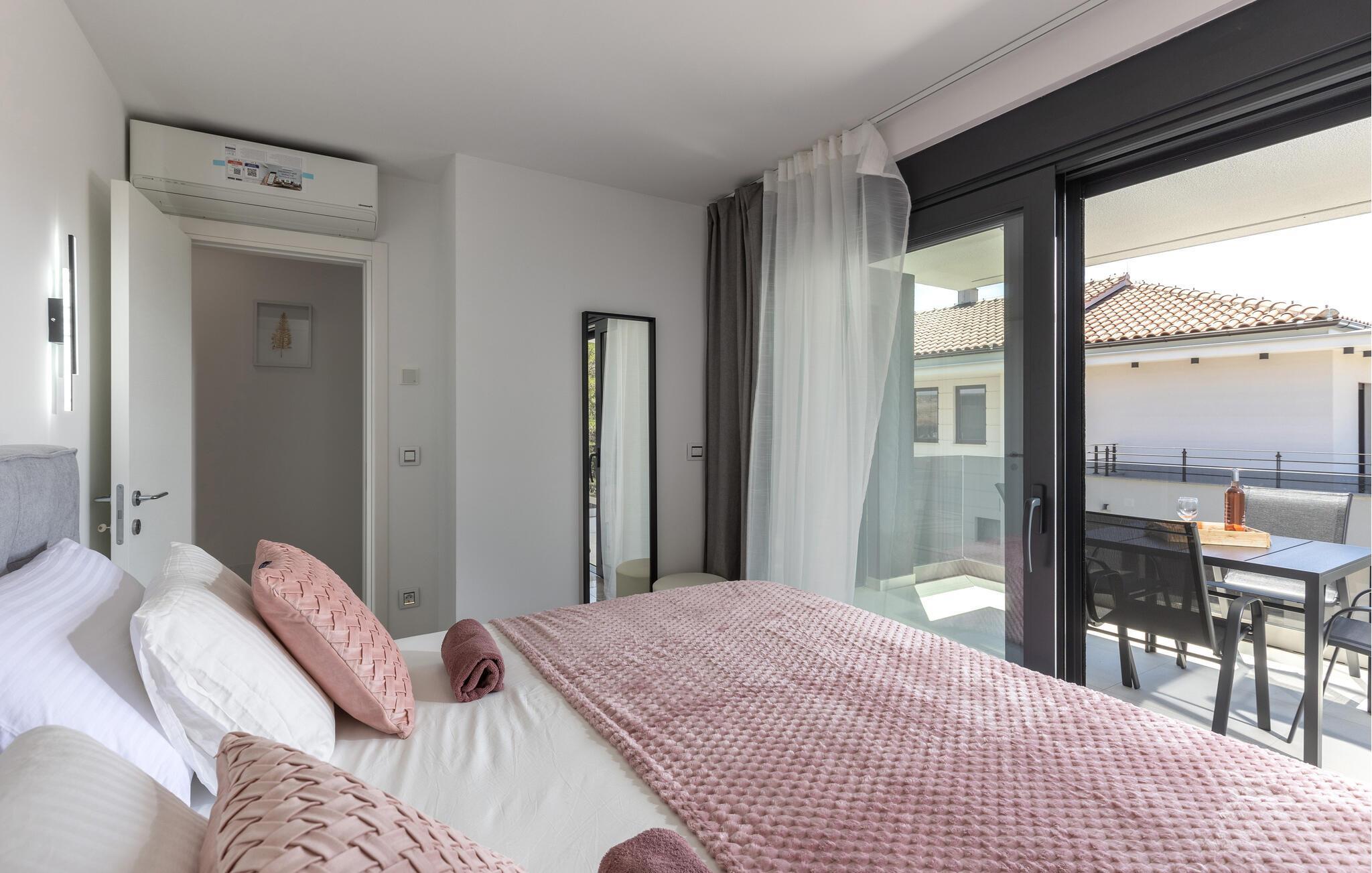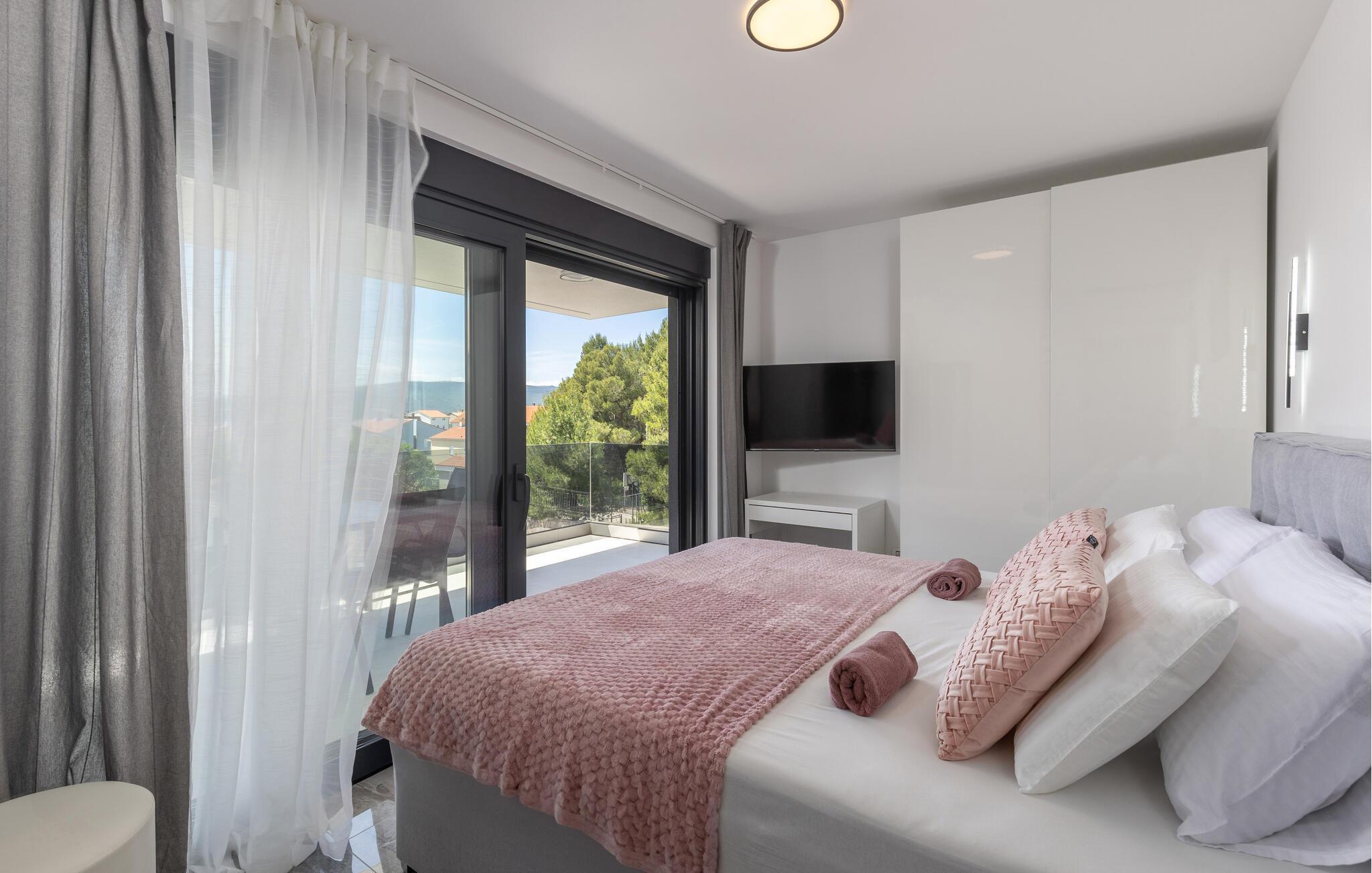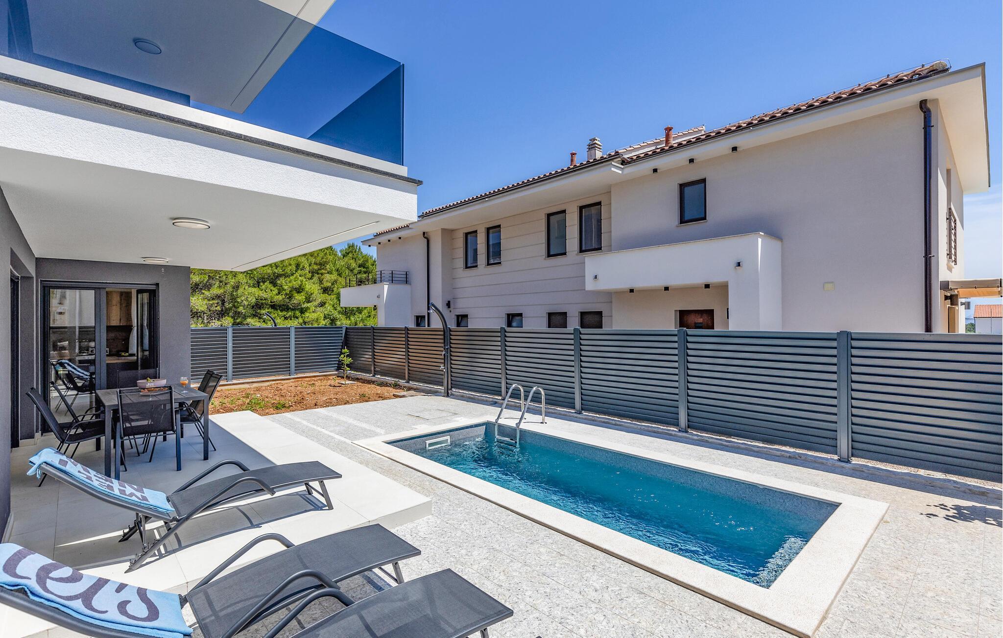 I den smukke by Krk ligger denne stilfulde bolig, som er fordelt over to etager og har plads nok til to familier. Begynd jeres feriedage med en forfriskende svømmetur i den udendørs pool og nyd derefter morgenmaden på en af de to overdækkede terrasser, som er ideel til hyggelige måltider og aftener udendørs. Den smukke udsigt over landskabet skaber en afslappende kulisse og giver jer mulighed for hurtigt at glemme alt om hverdagen. Lejligheden har fuld aircondition, så I kan nyde behagelige temperaturer selv på de varmeste dage. Den moderne, stilfulde indretning sikrer, at I vil føle jer hjemme.