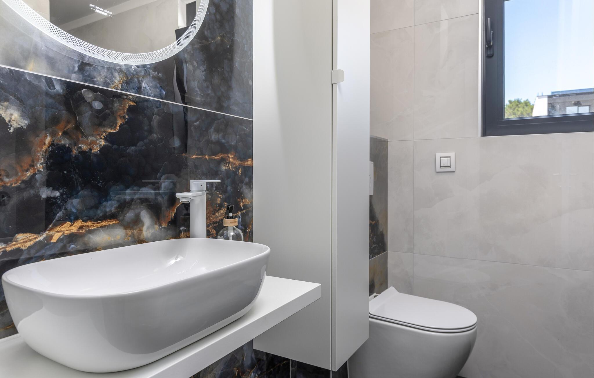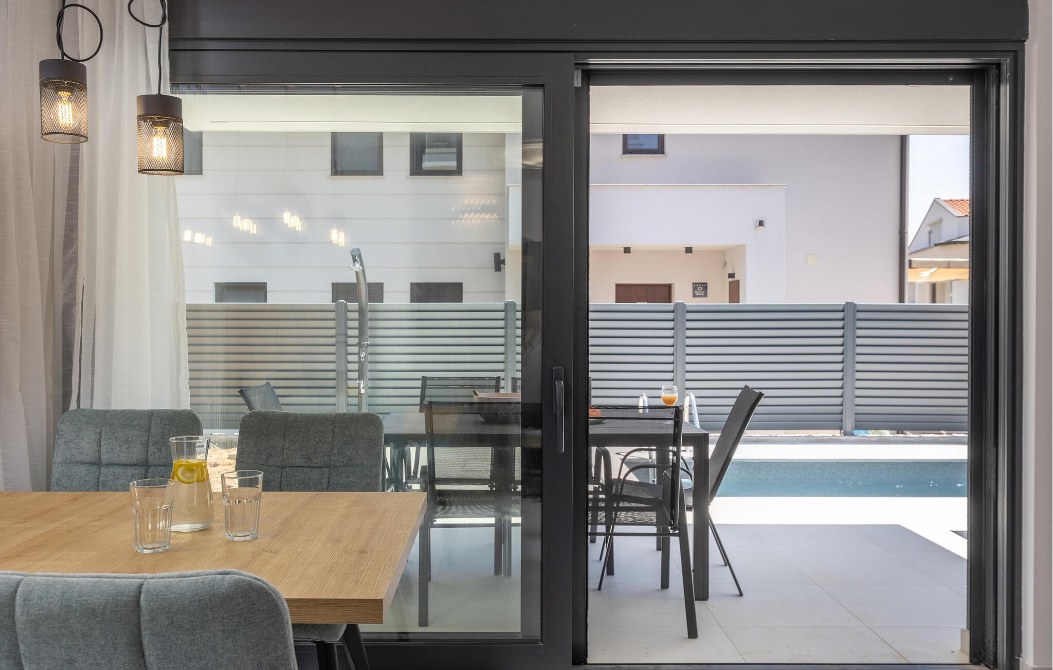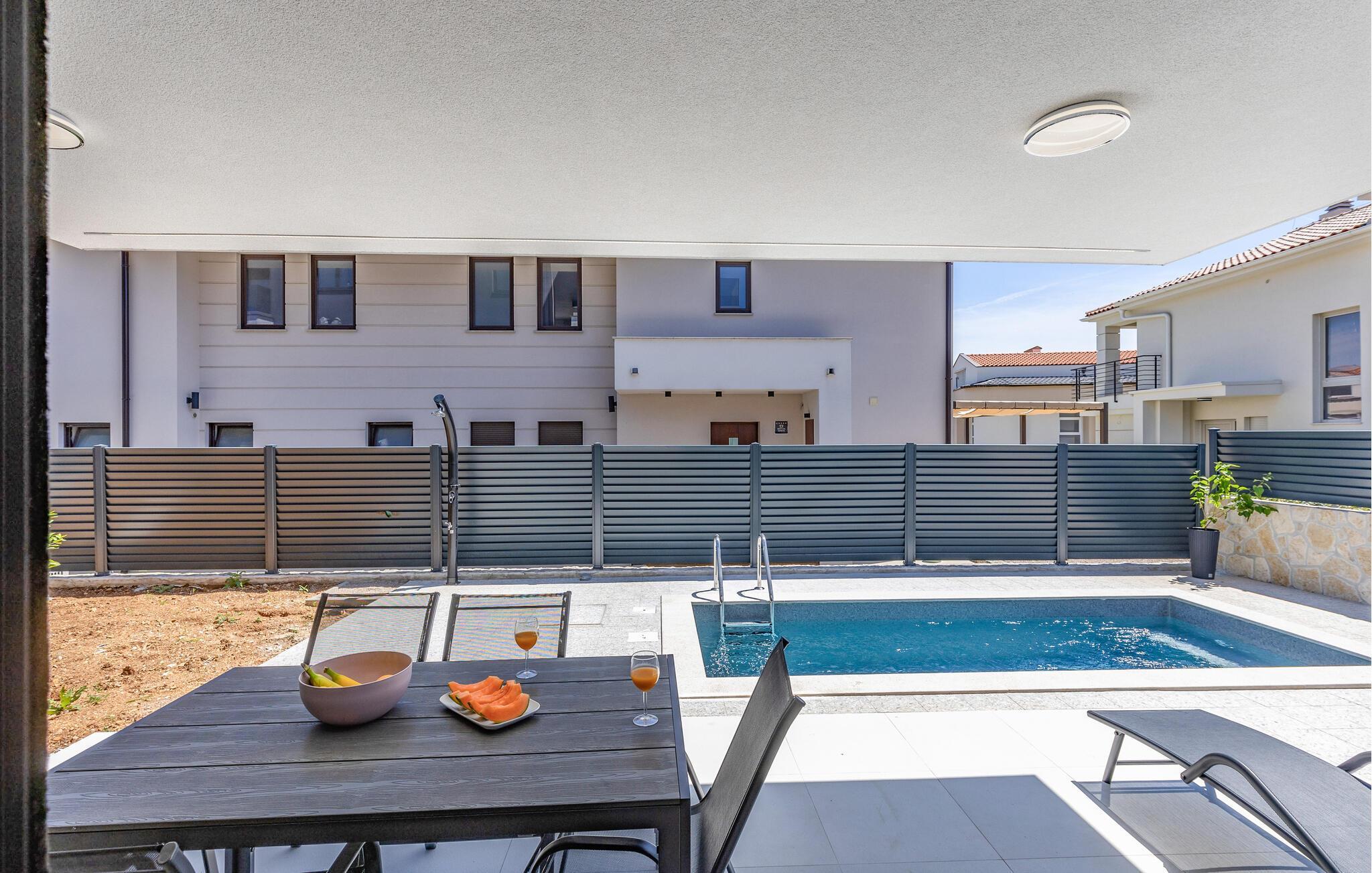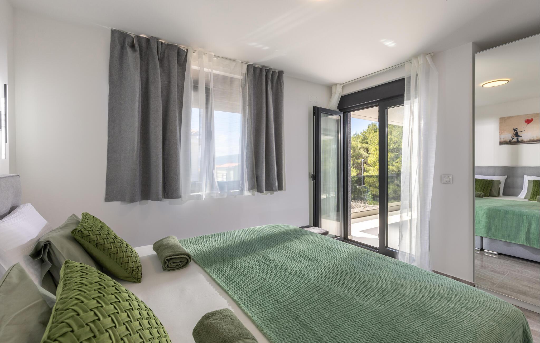 I den smukke by Krk ligger denne stilfulde bolig, som er fordelt over to etager og har plads nok til to familier. Begynd jeres feriedage med en forfriskende svømmetur i den udendørs pool og nyd derefter morgenmaden på en af de to overdækkede terrasser, som er ideel til hyggelige måltider og aftener udendørs. Den smukke udsigt over landskabet skaber en afslappende kulisse og giver jer mulighed for hurtigt at glemme alt om hverdagen. Lejligheden har fuld aircondition, så I kan nyde behagelige temperaturer selv på de varmeste dage. Den moderne, stilfulde indretning sikrer, at I vil føle jer hjemme.