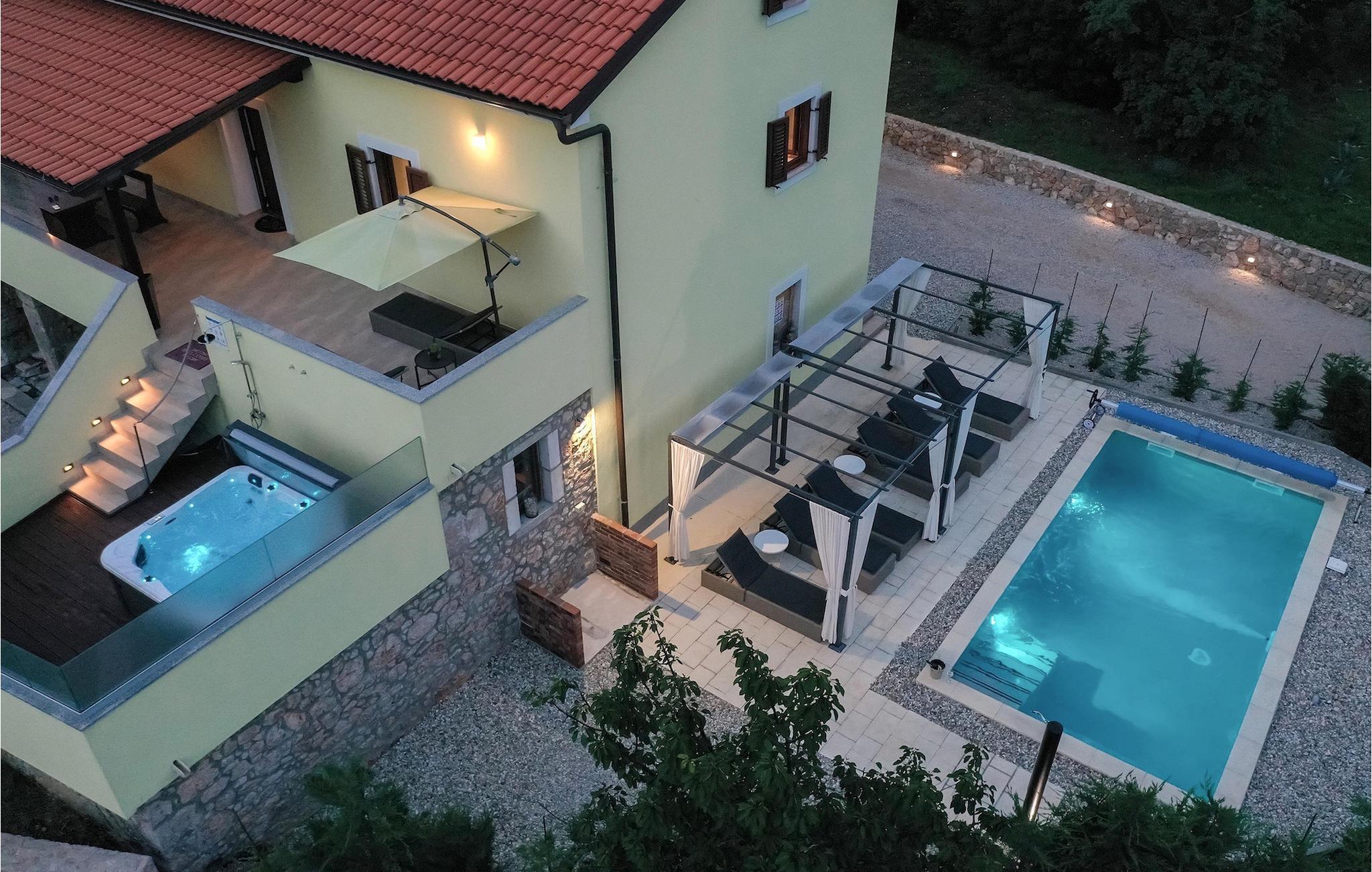 Hvis du drømmer om en ideel ferie på øen i en moderne villa helt for dig selv i fuldstændig privatliv, så er Holiday House Toš villa det rigtige valg. Specialiteten ved Holiday House Tos er nærheden til havet og en smuk sandstrand. Denne luksusvilla tilbyder dig en privat pool på 25 m2, omgivet af liggestole, beliggende i et overdækket område med gardiner, og tilbyder dig førsteklasses nydelse med forfriskende drinks. Du kan helt sikkert forestille dig, at du slapper af i jacuzzien på første sal, på terrassen i villaen og ser den romantiske stjernehimmel. Kæledyr er også velkomne i villaen. For de mindste gæster er der en udendørs legeplads og en trampolin, hvor hele familien kan hygge sig. Udover trampolinen kan du også more dig med at spille badminton, mens du venter på, at frokosten bliver tilberedt på den udendørs grill. Nyd tilberedte delikatesser ved spisebordet med 10 siddepladser. Inde i villaen er der et fuldt udstyret køkken, en stue, 3 soveværelser, 2 badeværelser og et separat toilet. Villaen indeholder alle ingredienserne til en ideel afslappende ferie væk fra hverdagen. Tilbring drømmeferien i Villa Holiday House Toš på den idylliske ø Krk. Risika er en charmerende landsby i nærheden af Vrbnik, beliggende i et idyllisk miljø med natur og smukke strande. Risika kan prale af at have den eneste sandstrand i Sveti Marek-bugten på hele øen Krk. Om sommeren kommer dette sted især til live under svømmemaraton. Mød de muntre lokale ved den største festival til ære for St. Jerome. Historieelskere bør udforske alle seværdighederne i perioden med de berømte Krk-greve på øen Krk langs Frankopan-vejene, og det ideelle udgangspunkt er bestemt Risika. I Vrbnik, hvor du vil blive mødt af vinmarker og græsgange, og mærke den autoktone ø-tradition. Smag på det gastronomiske tilbud og autoktone Žlahtina og nyd udsigten over husene samlet omkring klokketårnet og omgivet af middelaldermure. Udforsk også Baška, som skiller sig ud for sit Bašcanska ploca-monument, smukke strande og sen aftenunderholdning. Byen Krk er et uundgåeligt centrum med talrige seværdigheder og cateringvirksomheder, der vil glæde selv de mest krævende. Vælg Njivice, Malinska, Punat og Omišalj til endagsture. Besøg denne gyldne ø, rig på historie og traditioner med malerisk natur. Temperaturen i den opvarmede swimmingpool er afhængig af eksterne faktorer, herunder vejrforhold, og som sådan kan temperaturen på vandet ikke garanteres.