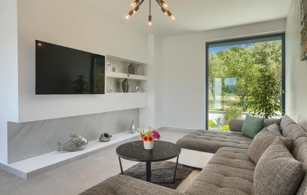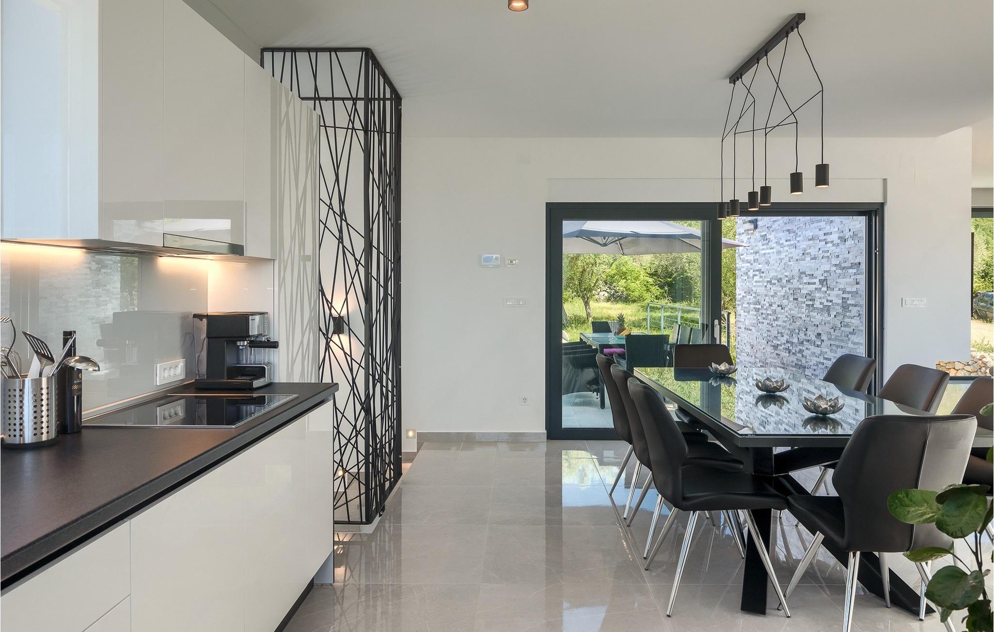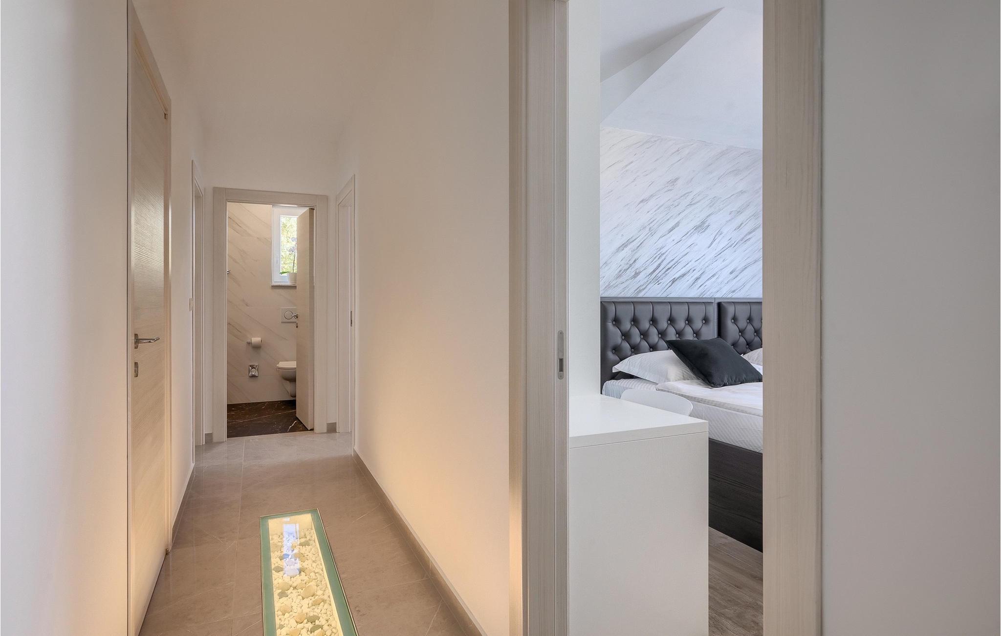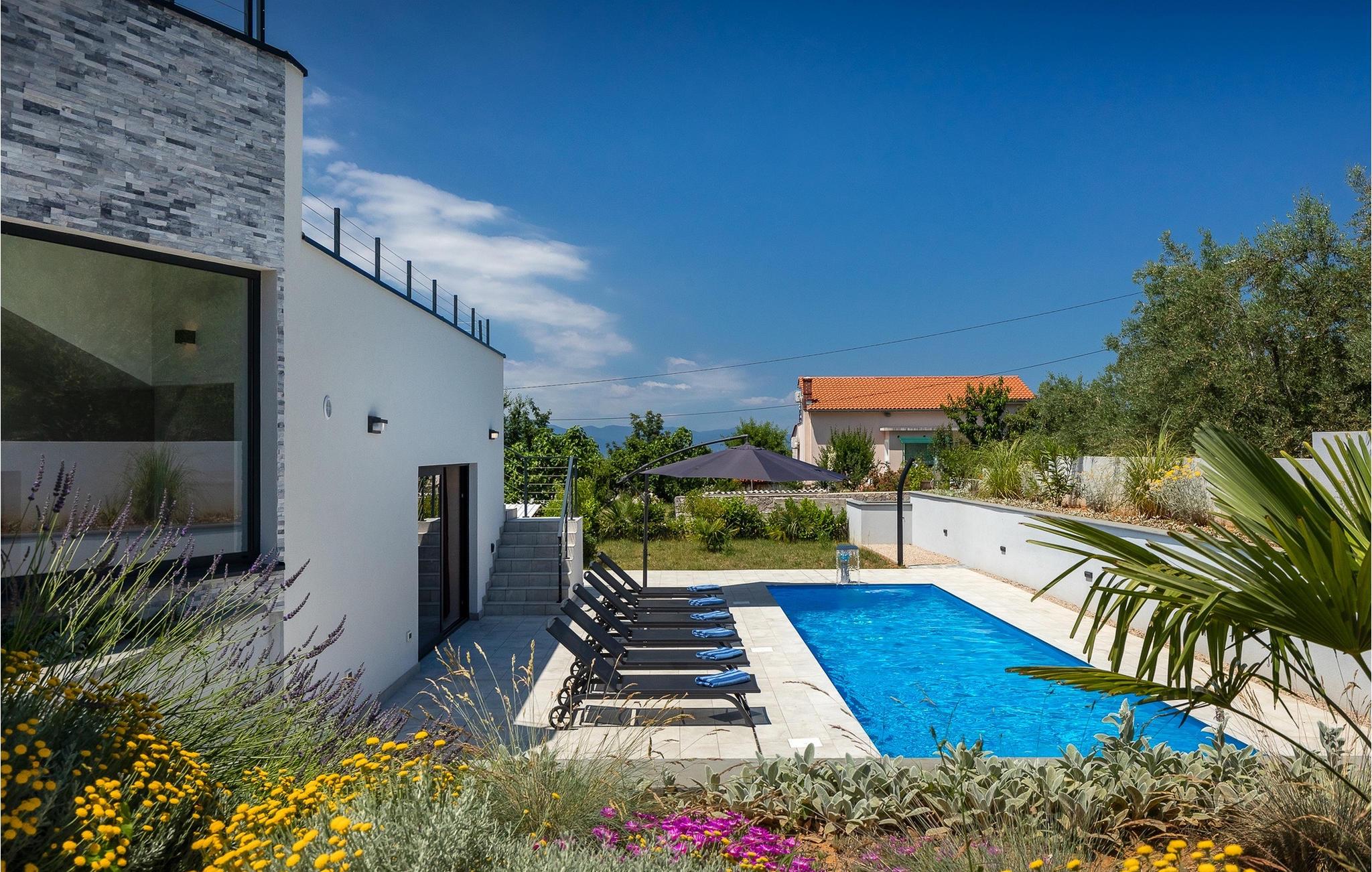 Denne store villa er beliggende på øen Krk, nær turistbyen Malinska. Med i alt 190 kvadratmeter boligareal byder den på plads til op til 6+2 personer og et nænsomt møbleret interiør. Den elegante og rummelige villa er opdelt i 3 etager og giver dig en følelse af hjem. Stueetagen består af 3 smukt indrettede soveværelser med harmoniske farvekombinationer. Et af soveværelserne har eget badeværelse med badekar. På mezzaninen er der et wellness-område med en finsk sauna og en jacuzzi, hvor du kan tilbringe afslappende stunder med din familie og venner. Fra wellnessområdet har du direkte adgang til poolområdet, hvor du kan slappe af på de komfortable liggestole og se børnene hygge sig ved poolen. Anden sal består af et opholdsområde med et fuldt udstyret køkken, en spiseplads med et stort familiebord og en stue med et tv. Få skridt væk ligger den smukke terrasse med en udendørs spiseplads, hvor du kan nyde måltider tilberedt på grillen. I opholdsområdet kan du gøre dig godt tilpas med en kop kaffe og nyde din ferie fuldt ud.Villa Subventus ligger i en lille landsby Bajcici, ikke langt fra turiststedet Malinska på øen Krk. Øen Krk er en af de største øer i Adriaterhavet og er forbundet med fastlandet med en bro. Øen Krk er et meget populært turistmål, der byder på mange turistattraktioner og er et ideelt udgangspunkt for mange udflugter. Vi anbefaler dig at opdage Kvarners skønheder såsom Opatija og Moscenicka Draga, gå langs promenaden Lungo mare og nyde en af de smukkeste solnedgange. Hvis du bare vil slappe af og nyde din ferie, har øen Krk alt hvad du behøver. Nyd de smukke strande i de mange skjulte bugter på øen og det mangfoldige kulinariske tilbud, der vil glæde alle elskere af gastronomi. Udover at være et fantastisk sted for alle hedonister, byder øen Krk på meget mere, såsom adskillige cykel- og vandrestier, dykkersteder og adskillige sportsmuligheder.