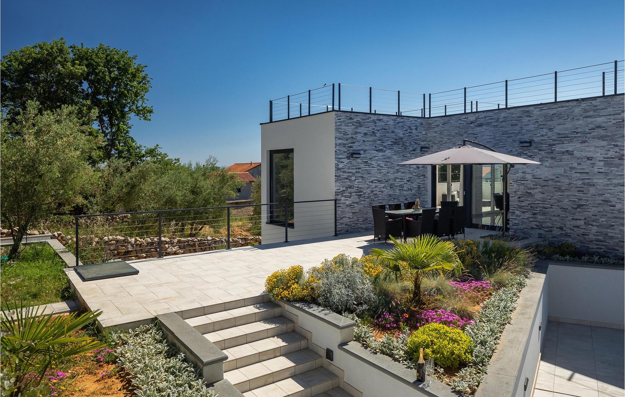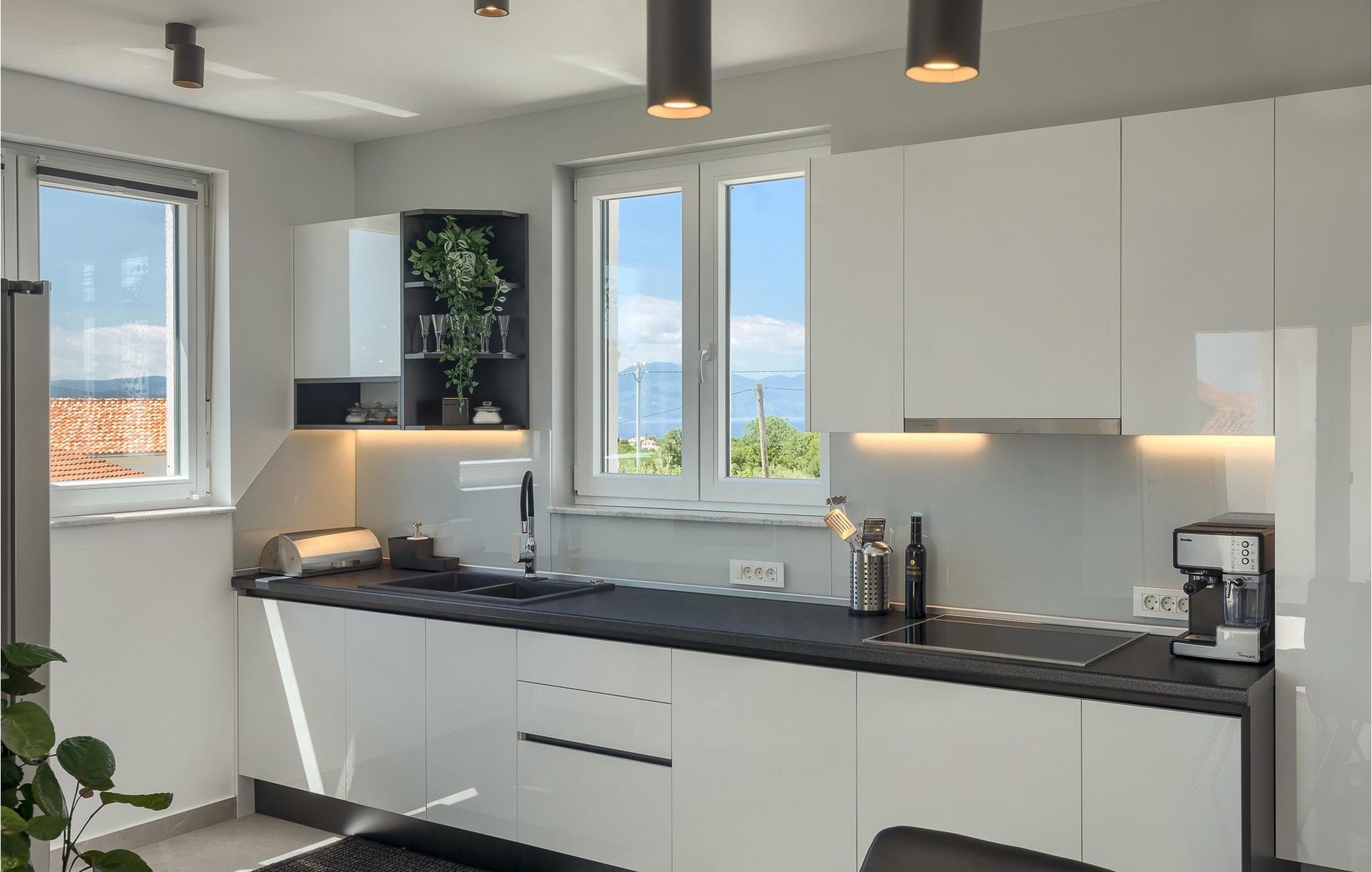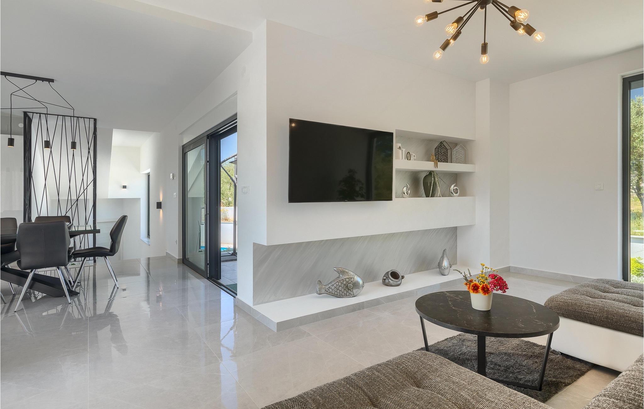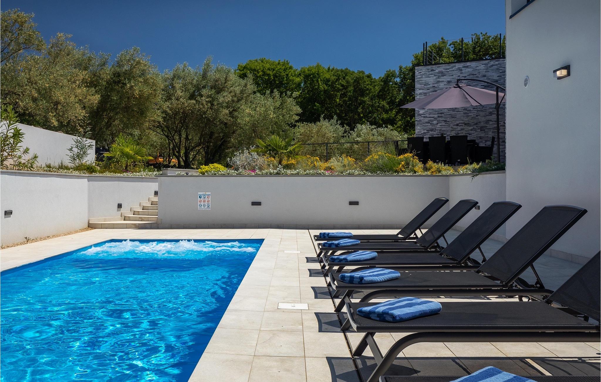 Denne store villa er beliggende på øen Krk, nær turistbyen Malinska. Med i alt 190 kvadratmeter boligareal byder den på plads til op til 6+2 personer og et nænsomt møbleret interiør. Den elegante og rummelige villa er opdelt i 3 etager og giver dig en følelse af hjem. Stueetagen består af 3 smukt indrettede soveværelser med harmoniske farvekombinationer. Et af soveværelserne har eget badeværelse med badekar. På mezzaninen er der et wellness-område med en finsk sauna og en jacuzzi, hvor du kan tilbringe afslappende stunder med din familie og venner. Fra wellnessområdet har du direkte adgang til poolområdet, hvor du kan slappe af på de komfortable liggestole og se børnene hygge sig ved poolen. Anden sal består af et opholdsområde med et fuldt udstyret køkken, en spiseplads med et stort familiebord og en stue med et tv. Få skridt væk ligger den smukke terrasse med en udendørs spiseplads, hvor du kan nyde måltider tilberedt på grillen. I opholdsområdet kan du gøre dig godt tilpas med en kop kaffe og nyde din ferie fuldt ud.Villa Subventus ligger i en lille landsby Bajcici, ikke langt fra turiststedet Malinska på øen Krk. Øen Krk er en af de største øer i Adriaterhavet og er forbundet med fastlandet med en bro. Øen Krk er et meget populært turistmål, der byder på mange turistattraktioner og er et ideelt udgangspunkt for mange udflugter. Vi anbefaler dig at opdage Kvarners skønheder såsom Opatija og Moscenicka Draga, gå langs promenaden Lungo mare og nyde en af de smukkeste solnedgange. Hvis du bare vil slappe af og nyde din ferie, har øen Krk alt hvad du behøver. Nyd de smukke strande i de mange skjulte bugter på øen og det mangfoldige kulinariske tilbud, der vil glæde alle elskere af gastronomi. Udover at være et fantastisk sted for alle hedonister, byder øen Krk på meget mere, såsom adskillige cykel- og vandrestier, dykkersteder og adskillige sportsmuligheder.