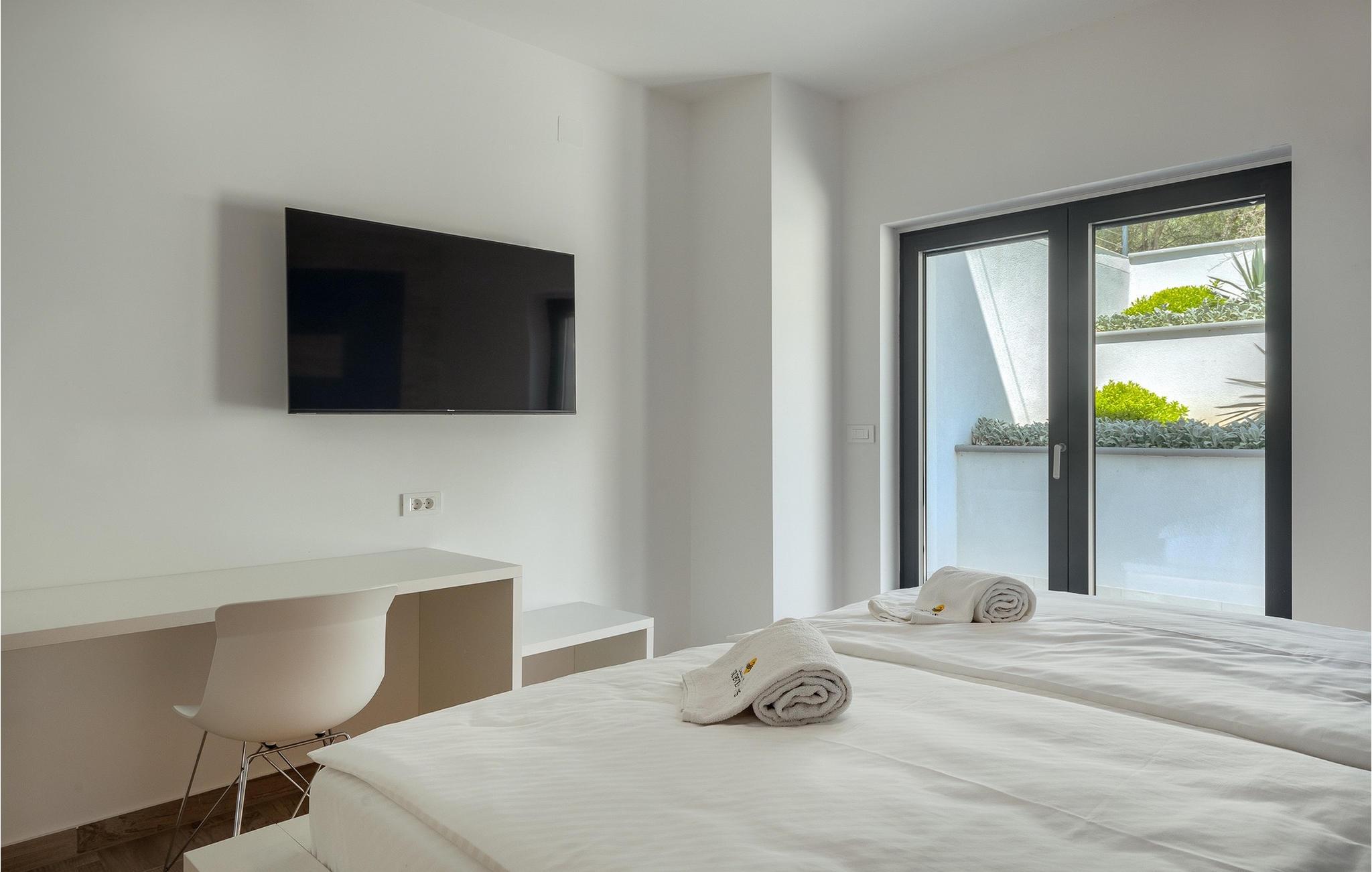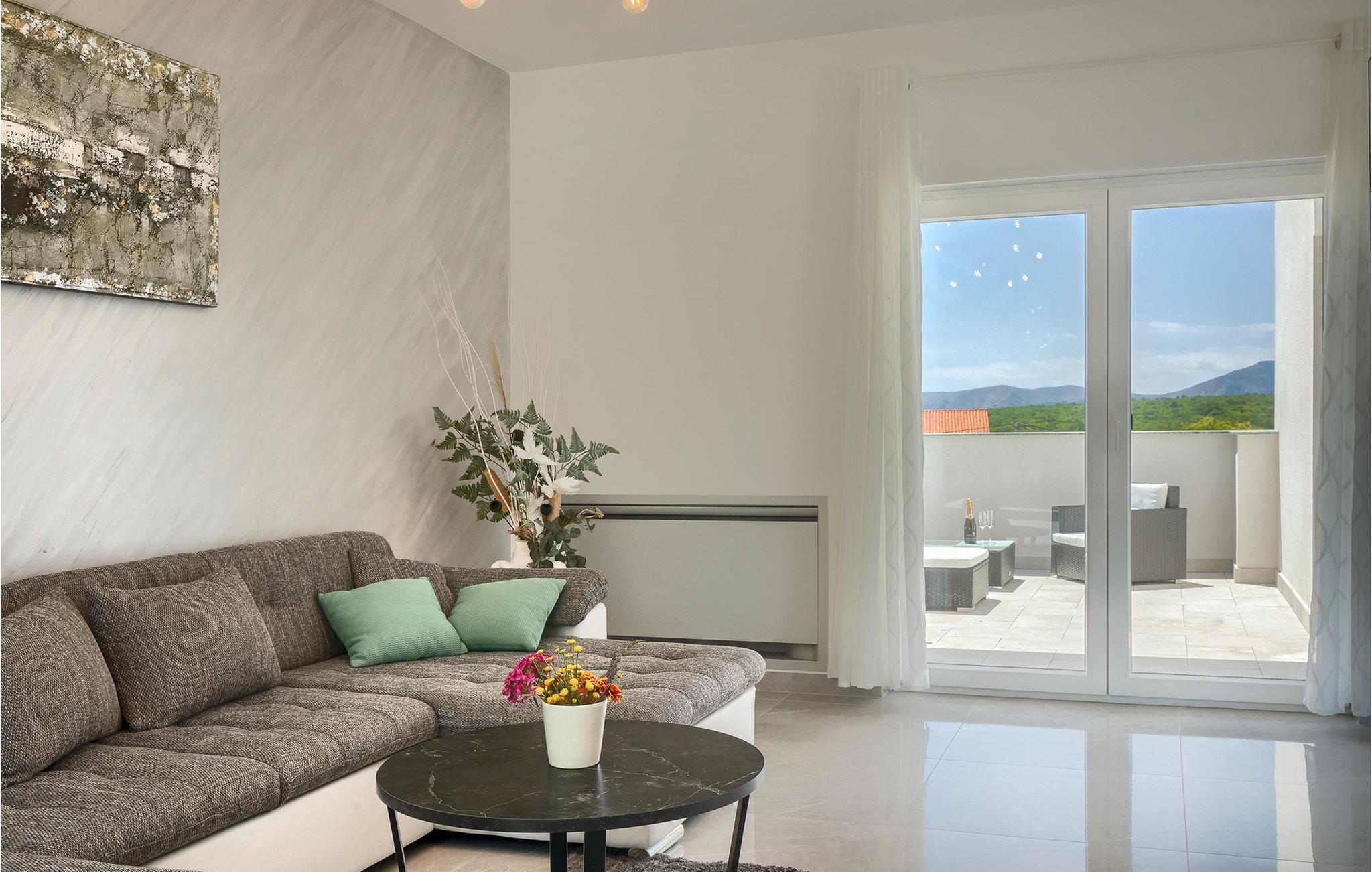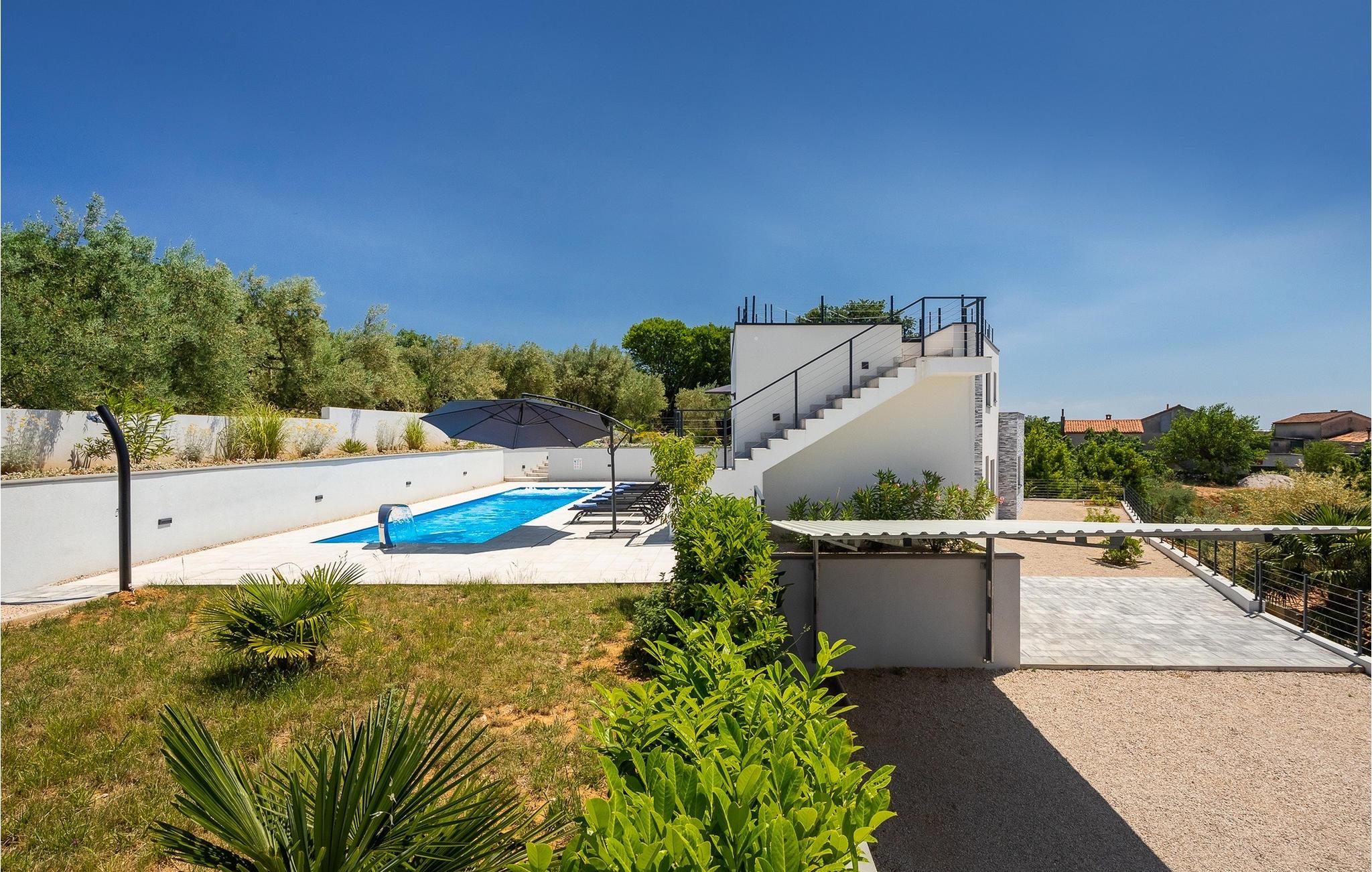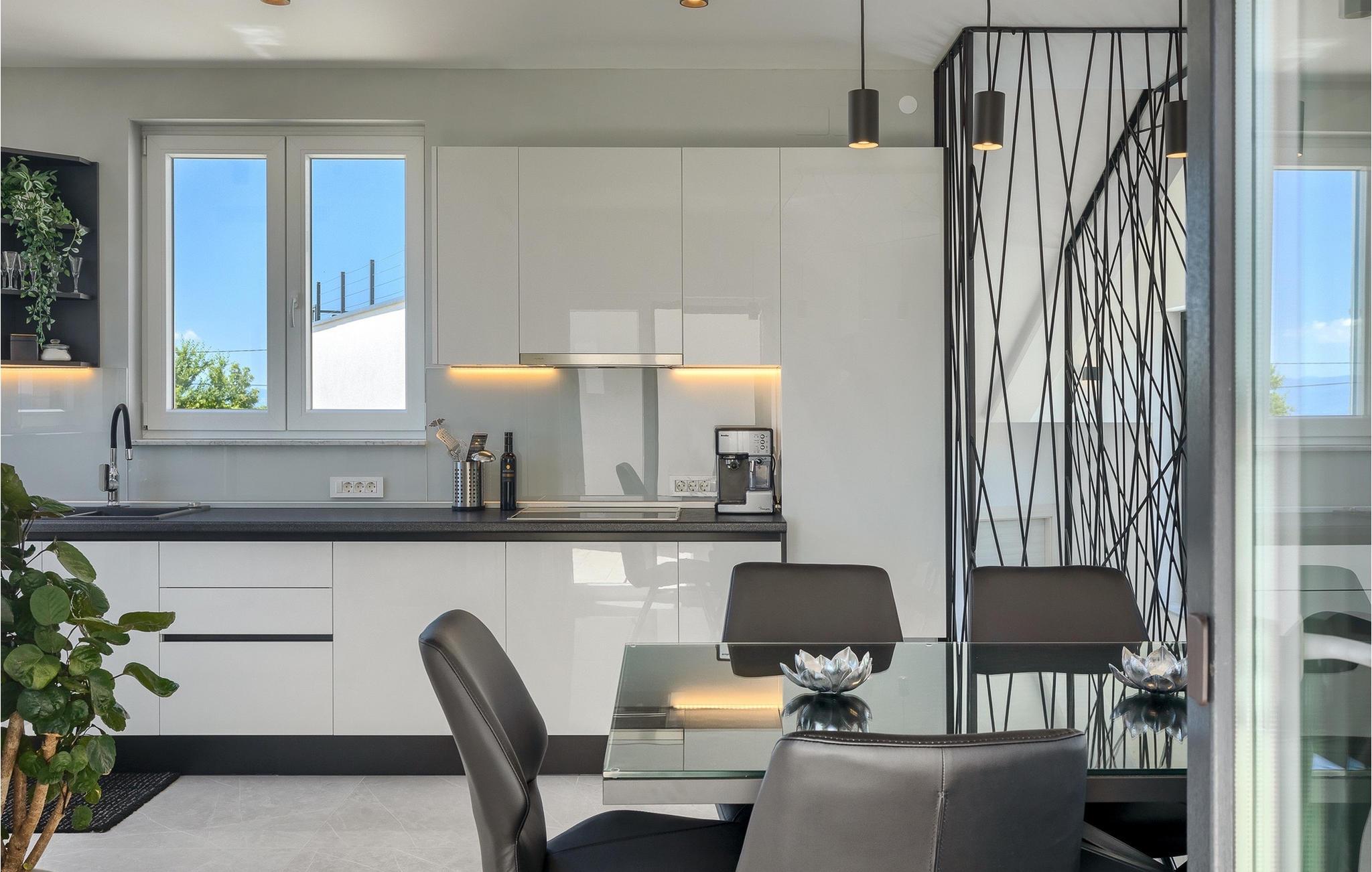 Denne store villa er beliggende på øen Krk, nær turistbyen Malinska. Med i alt 190 kvadratmeter boligareal byder den på plads til op til 6+2 personer og et nænsomt møbleret interiør. Den elegante og rummelige villa er opdelt i 3 etager og giver dig en følelse af hjem. Stueetagen består af 3 smukt indrettede soveværelser med harmoniske farvekombinationer. Et af soveværelserne har eget badeværelse med badekar. På mezzaninen er der et wellness-område med en finsk sauna og en jacuzzi, hvor du kan tilbringe afslappende stunder med din familie og venner. Fra wellnessområdet har du direkte adgang til poolområdet, hvor du kan slappe af på de komfortable liggestole og se børnene hygge sig ved poolen. Anden sal består af et opholdsområde med et fuldt udstyret køkken, en spiseplads med et stort familiebord og en stue med et tv. Få skridt væk ligger den smukke terrasse med en udendørs spiseplads, hvor du kan nyde måltider tilberedt på grillen. I opholdsområdet kan du gøre dig godt tilpas med en kop kaffe og nyde din ferie fuldt ud.Villa Subventus ligger i en lille landsby Bajcici, ikke langt fra turiststedet Malinska på øen Krk. Øen Krk er en af de største øer i Adriaterhavet og er forbundet med fastlandet med en bro. Øen Krk er et meget populært turistmål, der byder på mange turistattraktioner og er et ideelt udgangspunkt for mange udflugter. Vi anbefaler dig at opdage Kvarners skønheder såsom Opatija og Moscenicka Draga, gå langs promenaden Lungo mare og nyde en af de smukkeste solnedgange. Hvis du bare vil slappe af og nyde din ferie, har øen Krk alt hvad du behøver. Nyd de smukke strande i de mange skjulte bugter på øen og det mangfoldige kulinariske tilbud, der vil glæde alle elskere af gastronomi. Udover at være et fantastisk sted for alle hedonister, byder øen Krk på meget mere, såsom adskillige cykel- og vandrestier, dykkersteder og adskillige sportsmuligheder.