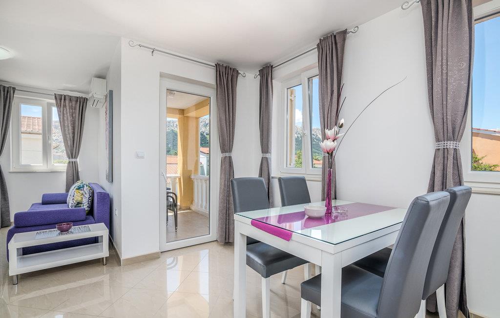 Lejligheden bliver en god base til jeres hyggelige parferie på Krk. Ferielejligheden er placeret på 1. sal i en beboelsesbygning og har en smuk udsigt over landskabet.