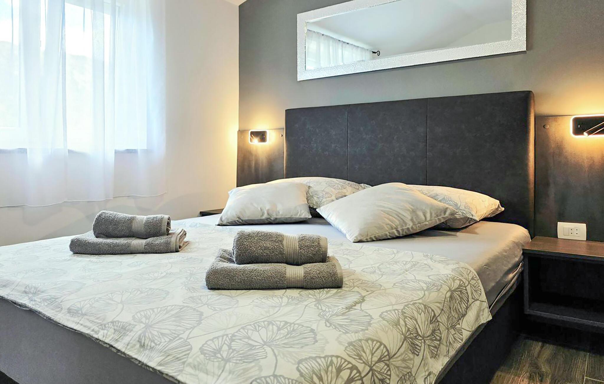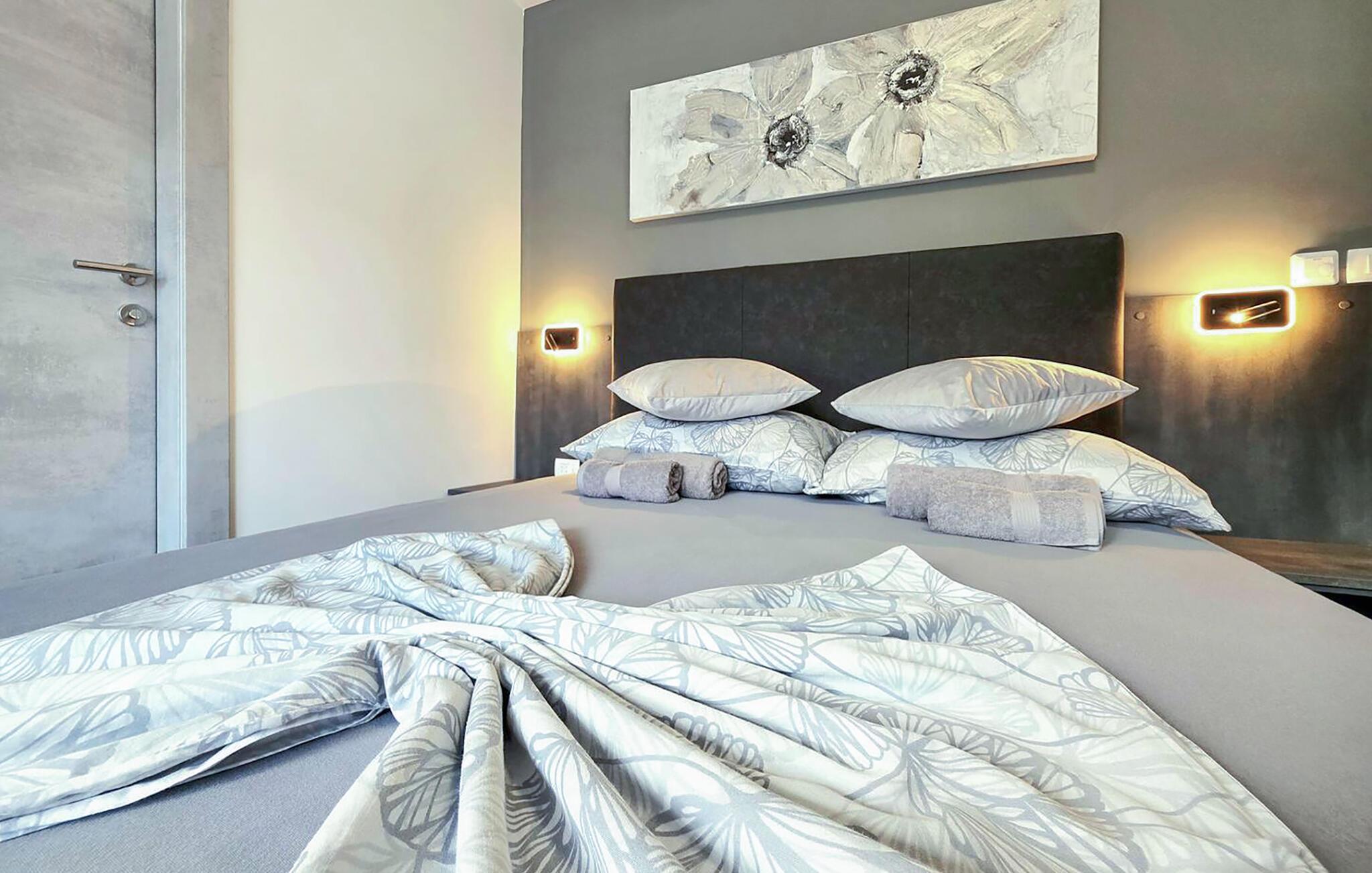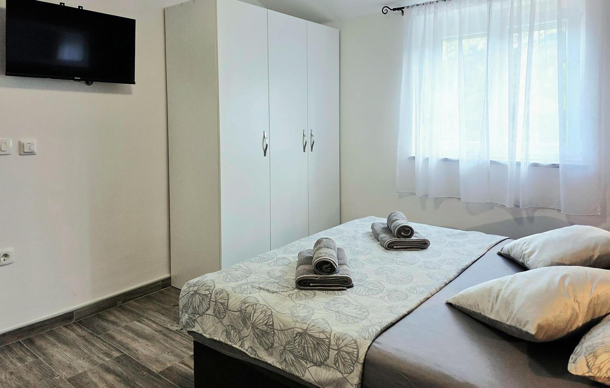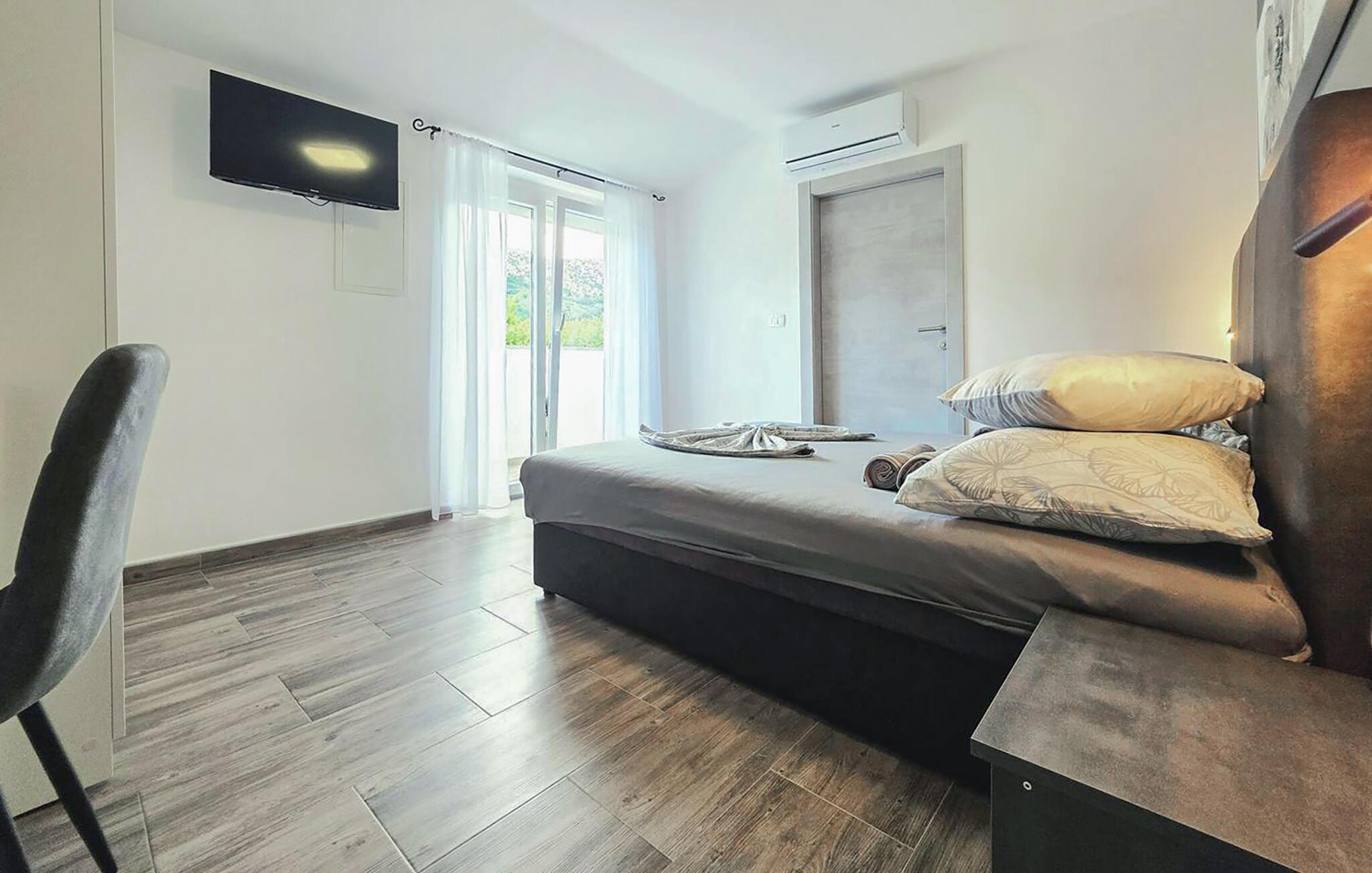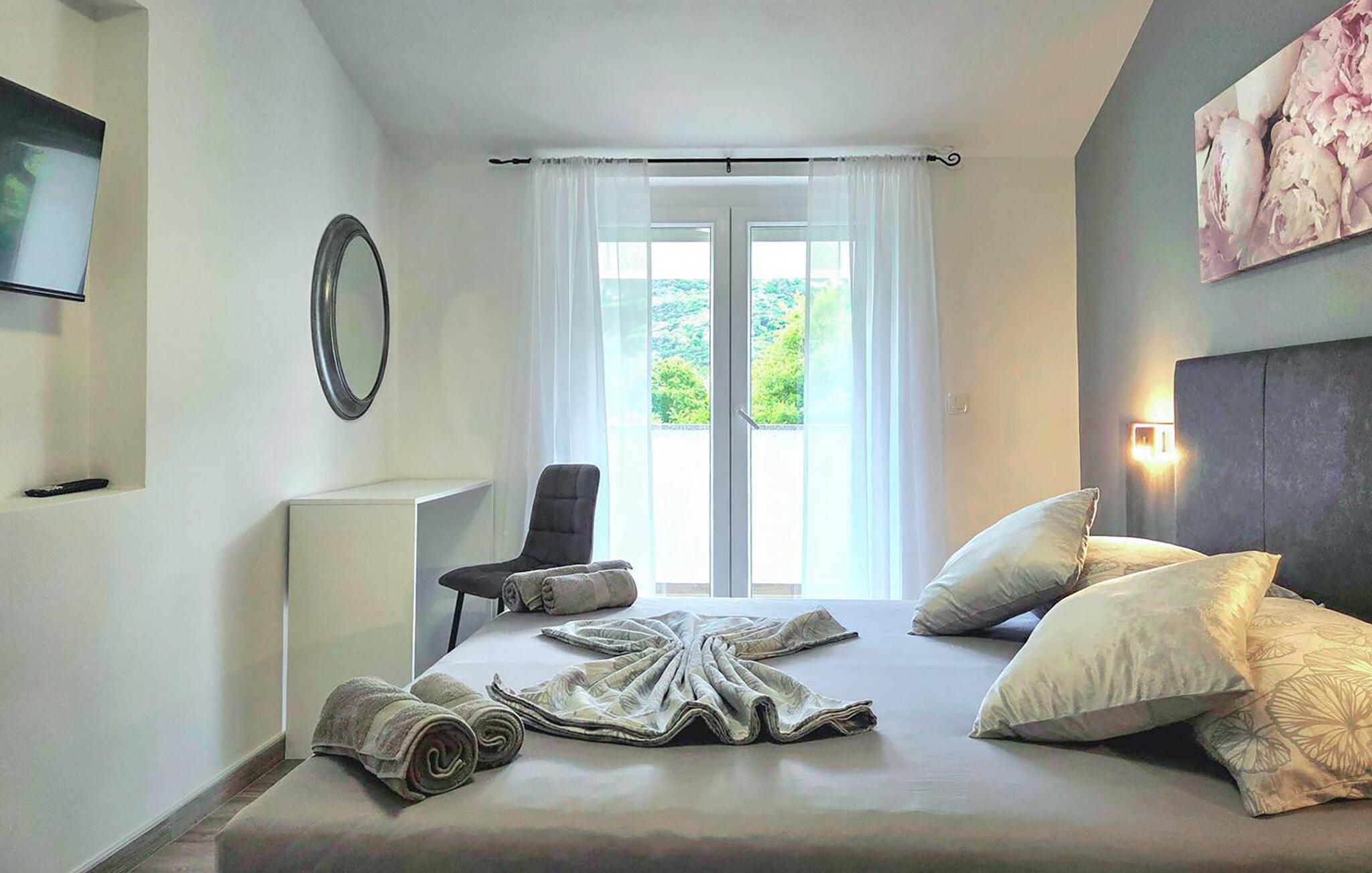 Tag en kort gåtur til den lange stenstrand Vela Plaža med det turkise vand og slap af, mens I svømmer eller solbader. Slentr gennem den charmerende gamle bydel med dens snoede gader og traditionelle stenhuse. De omkringliggende vandrestier tilbyder en vidunderlig udsigt over havet og det grønne bakkelandskab.