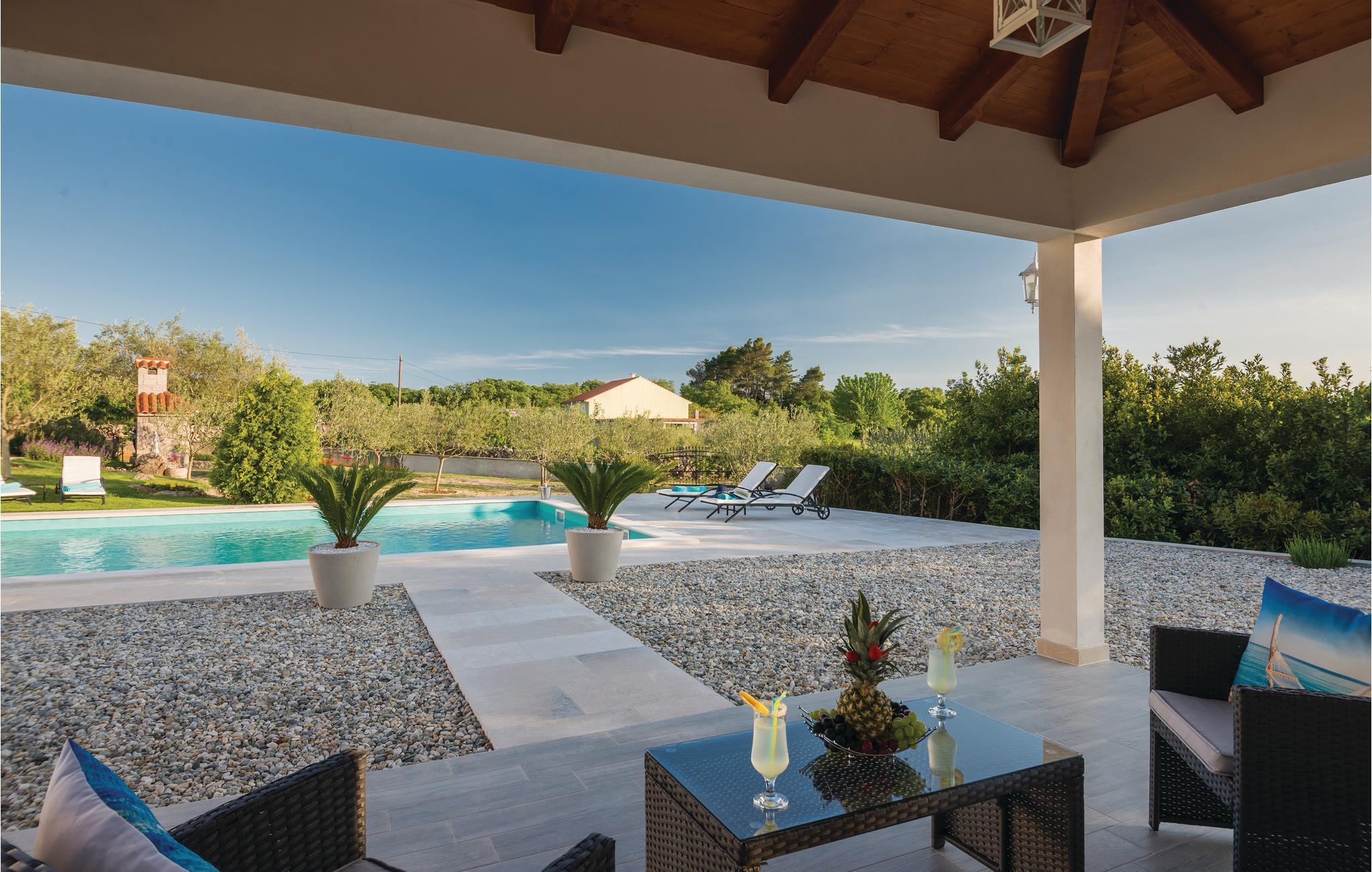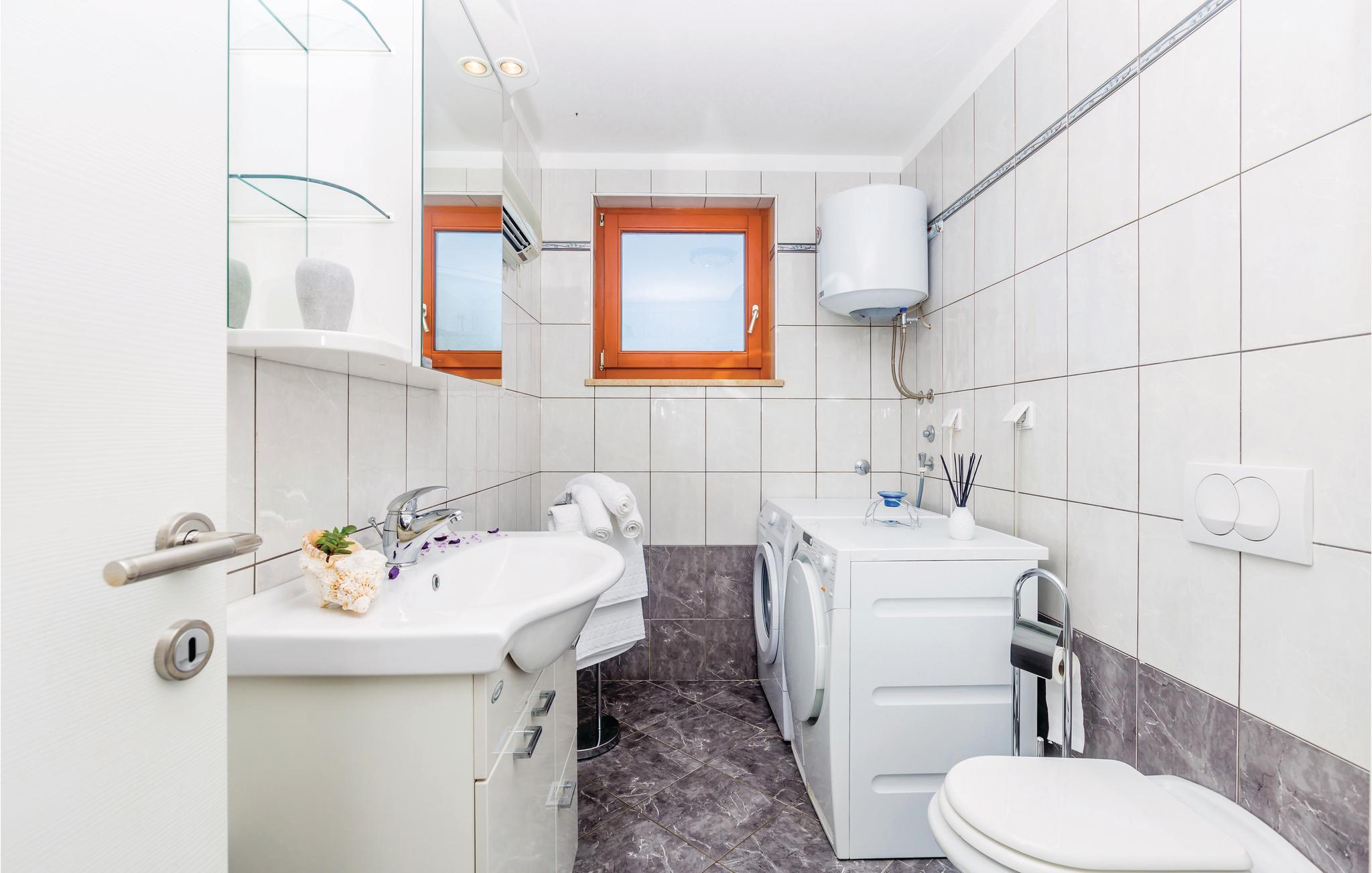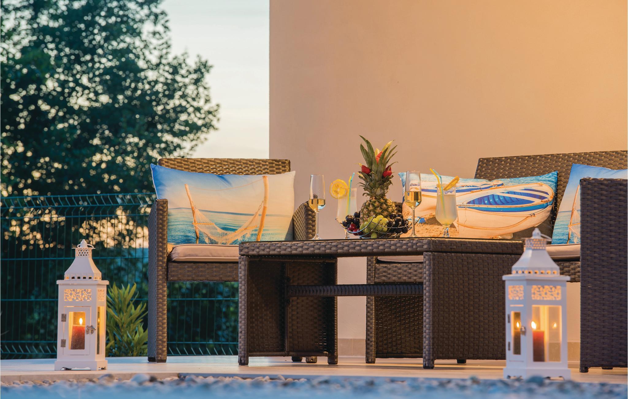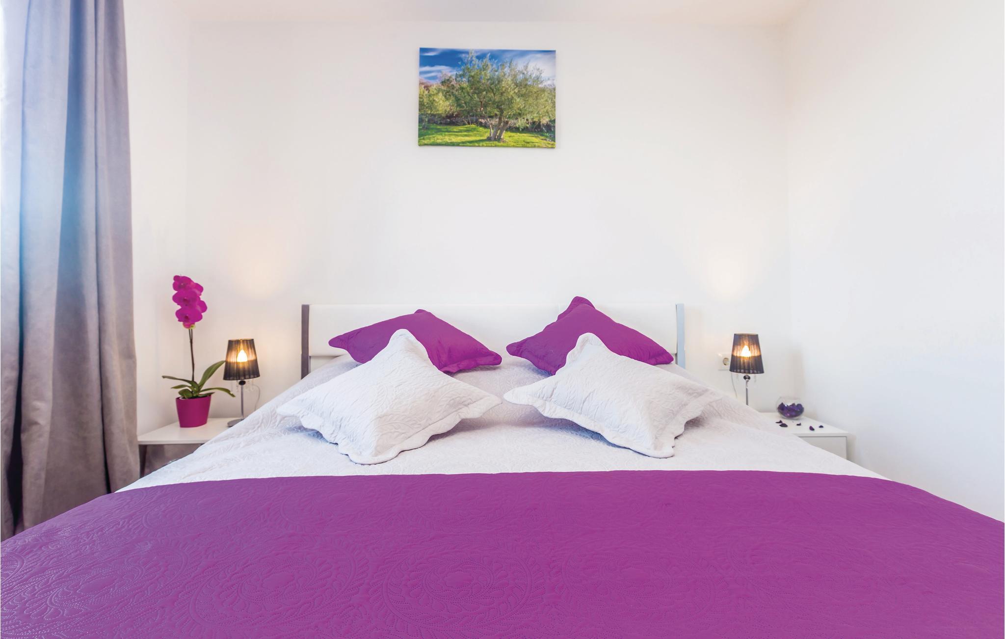 Indbydende ferielejlighed i en familieejendom, i hvis have der er imposante oliventræer. Denne smagfuldt indrettede bolig ligger i en lille by i nærheden af den større by Krk, på øen af samme navn. Fra stuen er der udgang til den rummelige terrasse, som er oplagt til afslappede timer. I den fælles velplejede have kan de små lege og alle forfriske sig i den fælles pool. Tag på udflugt til de skønne kiesbugter – der ligger ud til det lune og krystalklare hav. I byen Krk er der mange former for sommerunderholdning og mange gode restauranter, hvor I kan smage traditionsrige retter tilberedt af lokale råvarer.