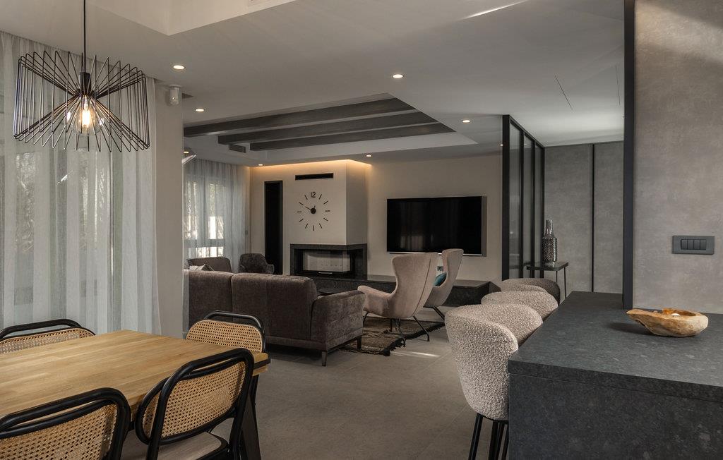 Glæd jer til en behagelig ferie med familien i dette vidunderlige hus. Der er lagt meget vægt på kvalitet og komfort, da huset blev indrettet, så det eneste I skal gøre efter ankomst er at læne jer tilbage og slappe af. Møbler og udstyr af høj kvalitet inviterer jer til at lave mad, spille kort ved spisebordet og lægge fødderne op på sofaen. Der er også tænkt på jeres privatliv, soveværelserne på øverste etage har alle deres eget badeværelse og i kælderen er der endda en lille lejlighed med separat køkken og toilet. I kan også glæde jer til den store have. Herfra, samt fra balkonen, kan I nyde en smuk udsigt over havet og øen Ces. Sid ude på den skønne terrasse og se børnene svømme i poolen. Soldækket inviterer jer også til at solbade og lytte til jeres yndlingspodcast. Om aftenen kan I samles ved udekøkkenet og tilberede og nyde lækre grillmåltider.