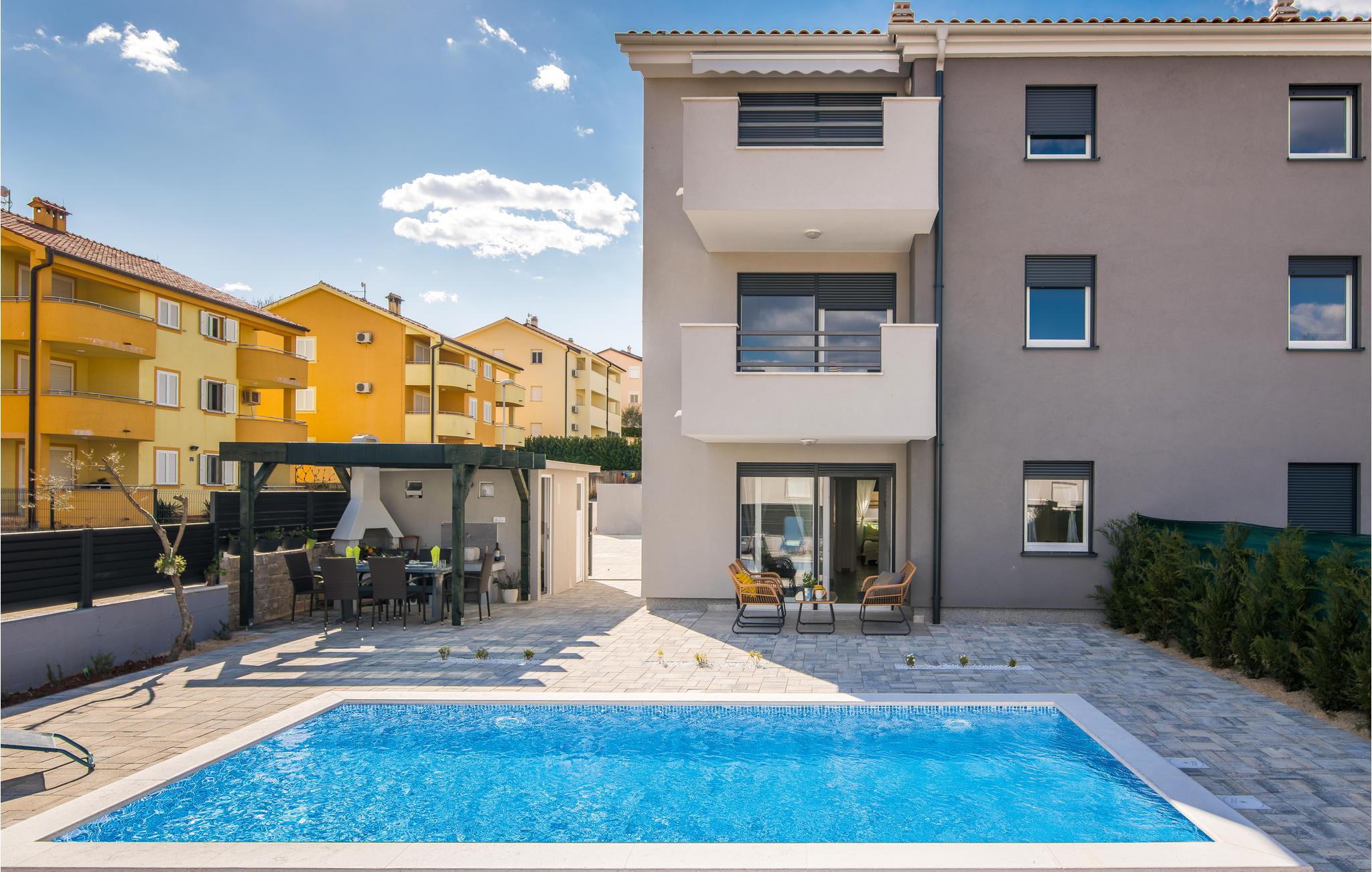 Fra stuen kan I nå en af ??de to overdækkede terrasser med en grill, hvor I kan nyde solen. På varme sommerdage lokker den private udendørs pool jer til at køle af og have det sjovt og svømme. Den smukke stenstrand og havet er kun få minutters gang væk - ideelt til en ferie med mange dage på stranden. Lejligheden har også en fantastisk beliggenhed for at besøge andre steder på øen Krk.