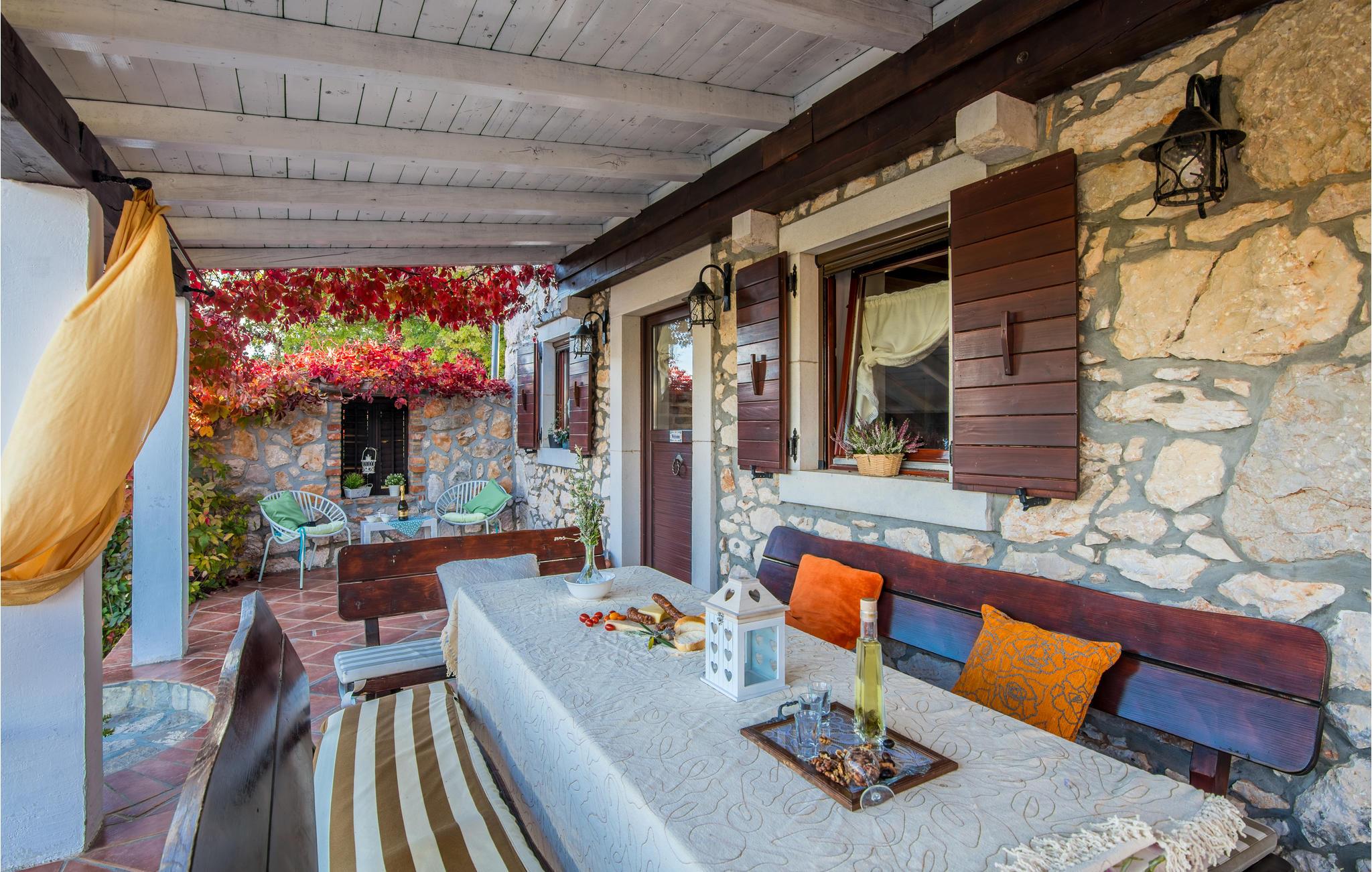 Dette flotte og traditionelt indrettede feriehus ligger midt på øen Krk. På den overdækkede terrasse er der hyggelige træmøbler, her kan I se børnene lege og nyde husets rolige omgivelser. Slap af med jeres familie ved siden af den dejlige pool. I et lille hus ved siden af er der et soveværelse med plads til to personer og et badeværelse. Grunden er indhegnet. Med bilen kommer I hurtigt til strandene i nærheden, mudderbadene i Kimno, gemte bugter, byerne Silo, Vrbnik og Malinska samt byen Krk med sit livlige natteliv i højsæsonen. Besøg de mange strande, øen tilbyder.