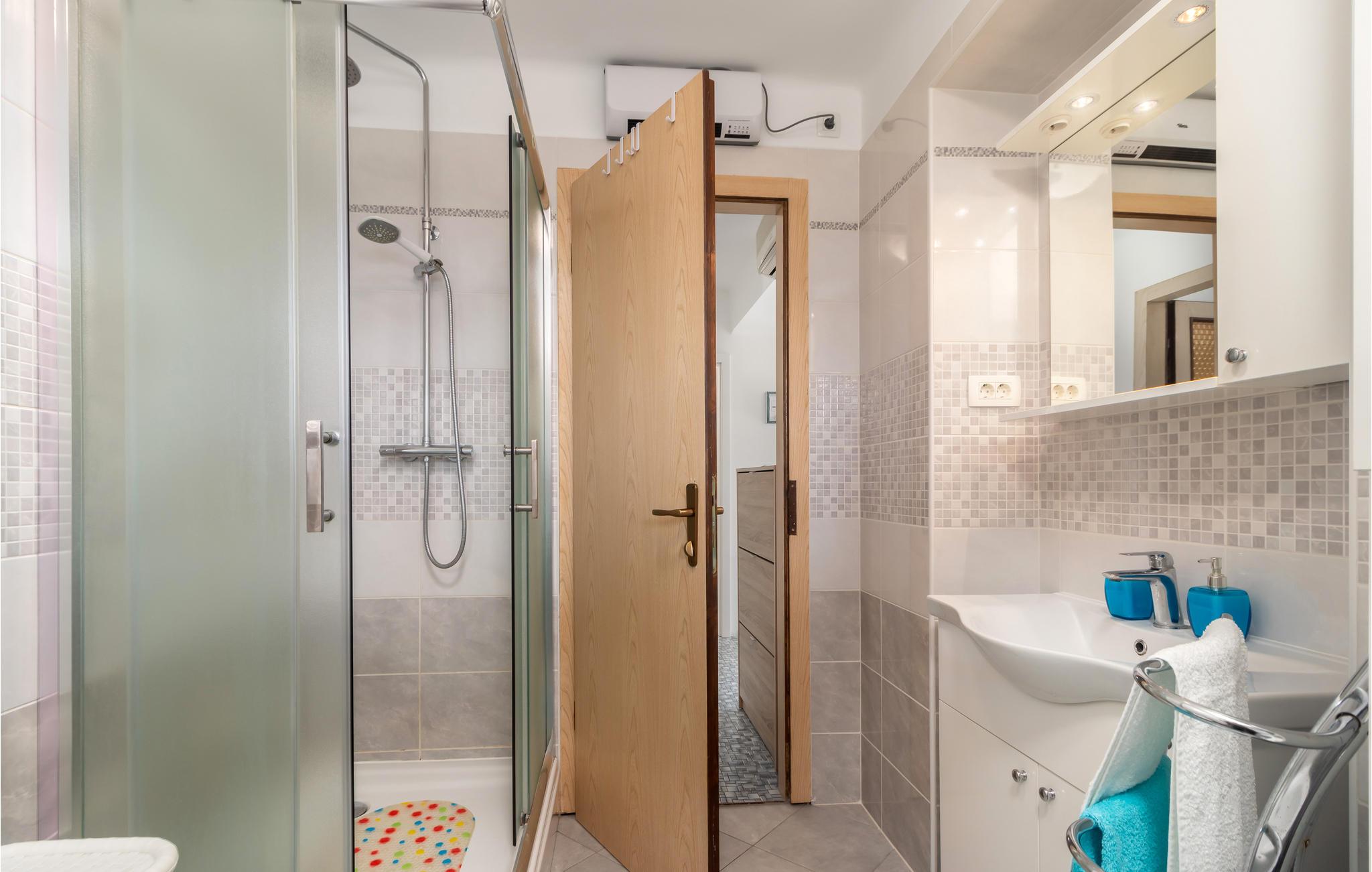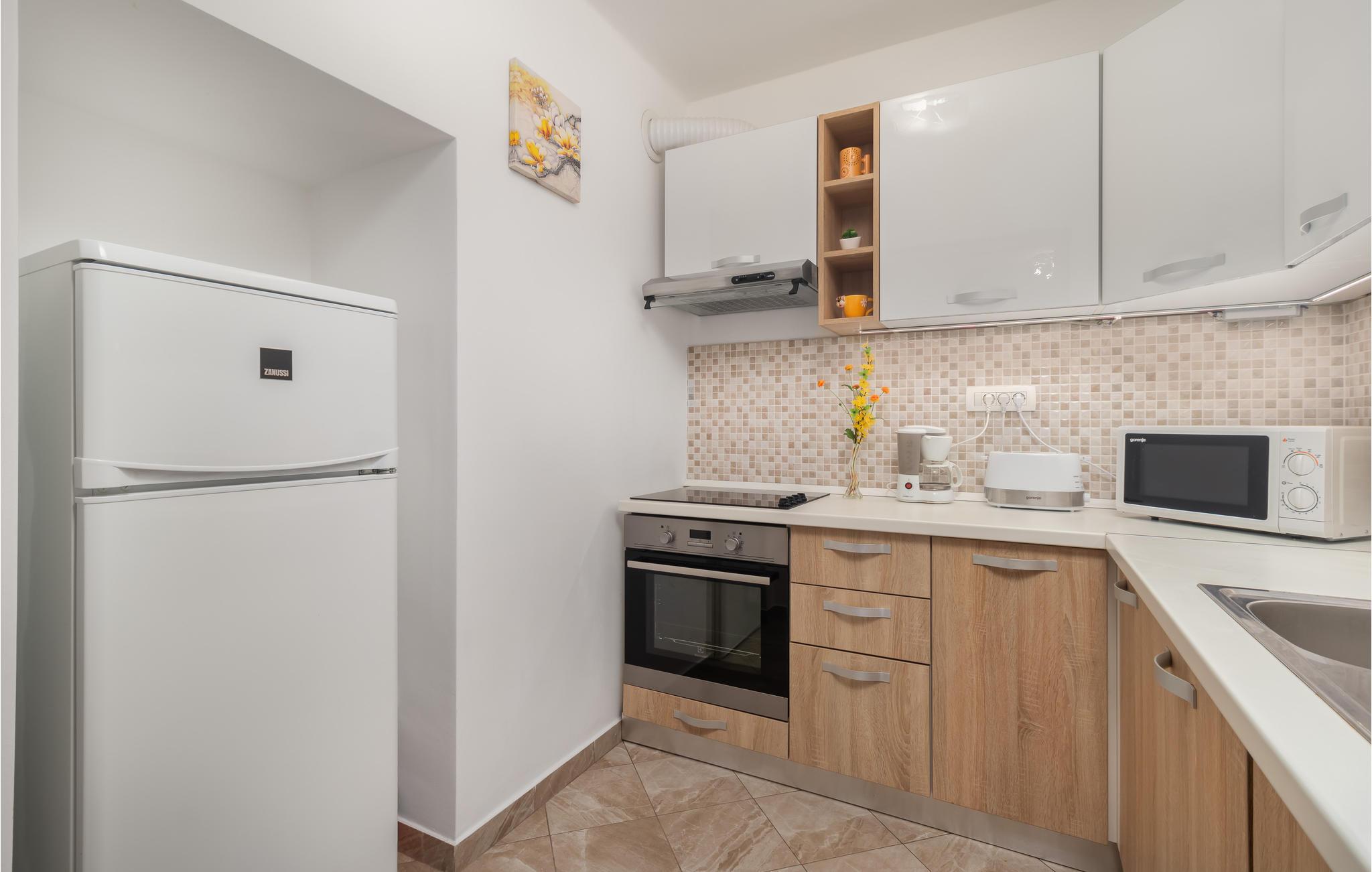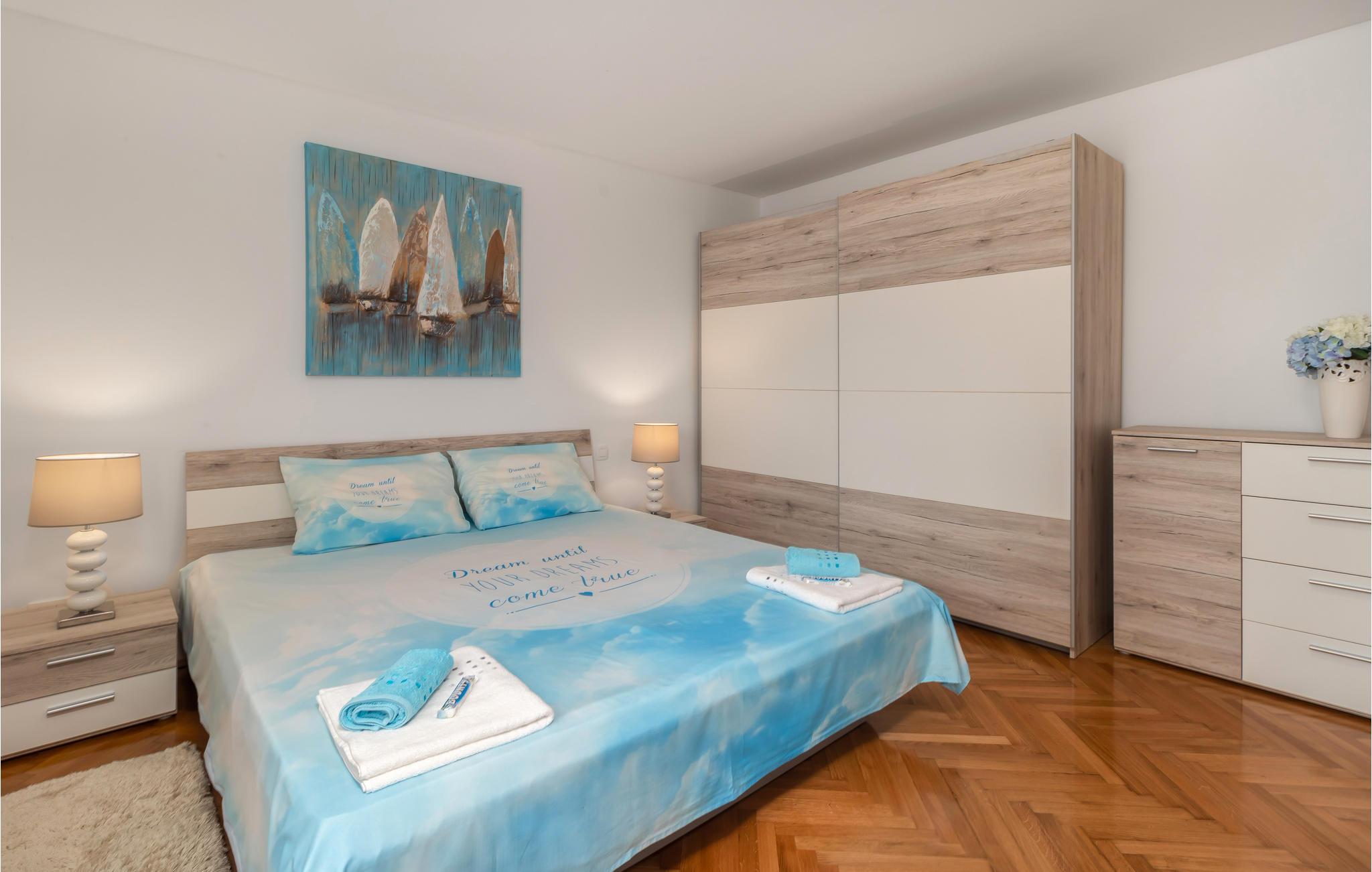Bygningen ligger i øbyen Gostinjac, omgivet af blomstrer og økologiske frugttræer. Lejligheden er behageligt indrettet. Tæt på den store terrasse er der en eng med en rutsjebane, hvor børnene kan lege løs i det fri. Hyg med at grille ude og drikke et glas vin med vennerne eller familien.