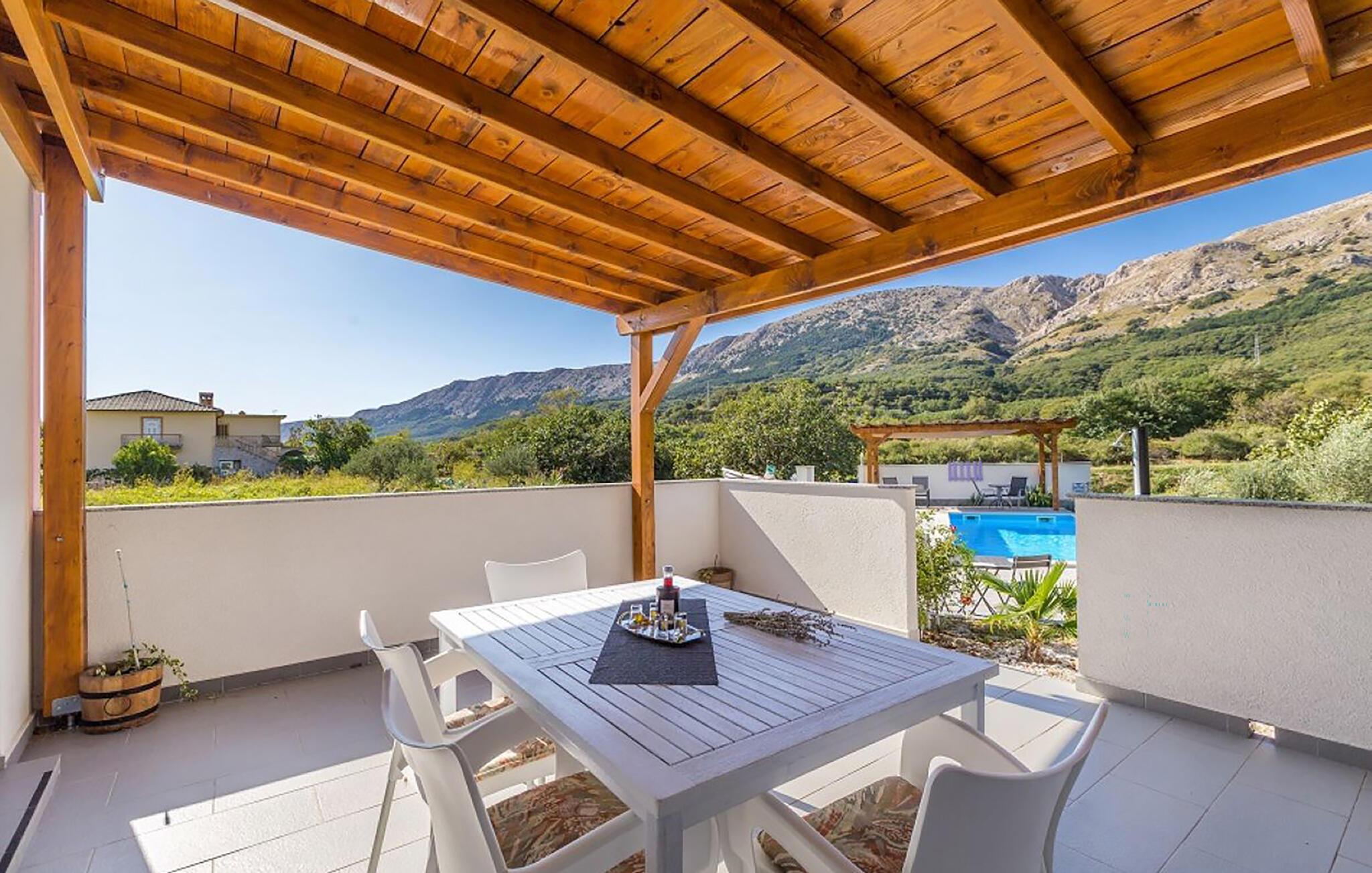 Nyd en afslappende ferie i denne ferielejlighed med pool og udsigt over det grønne bjerglandskab.