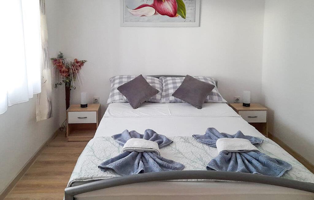 Tilbring en fredelig og behagelig ferie i den lille ø-by Gabonjin på den gyldne ø Krk. I dette familiehus er der 3 mindre lejligheder med hver sin overdækkede terrasse. Haven er indhegnet, grøn og fuld af blomster. Den venlige vært bor i stueetagen i sin lejlighed og vil være diskret og hjælpe jer med alt, hvad I har brug for. De har en indbygget fælles grill, hvor I kan tilberede lækre grillretter i en hyggelig atmosfære om aftenen. Atmosfæren i huset er hyggelig og behagelig.