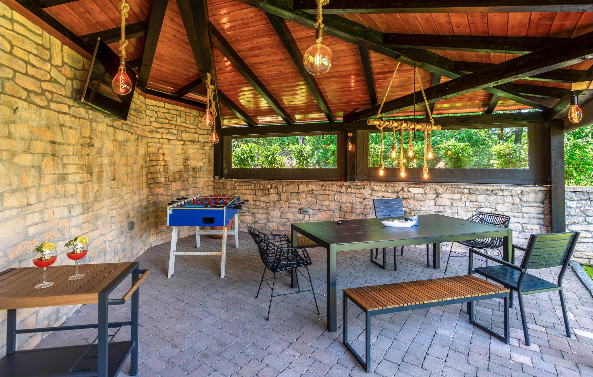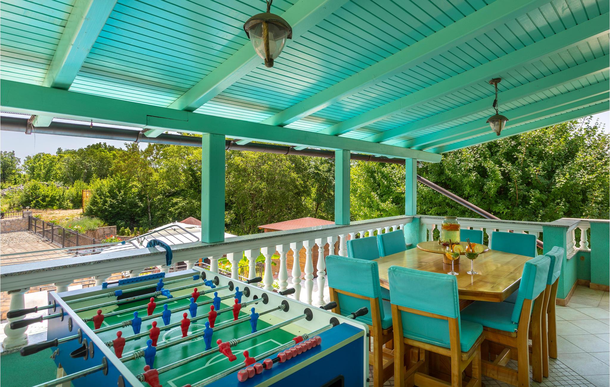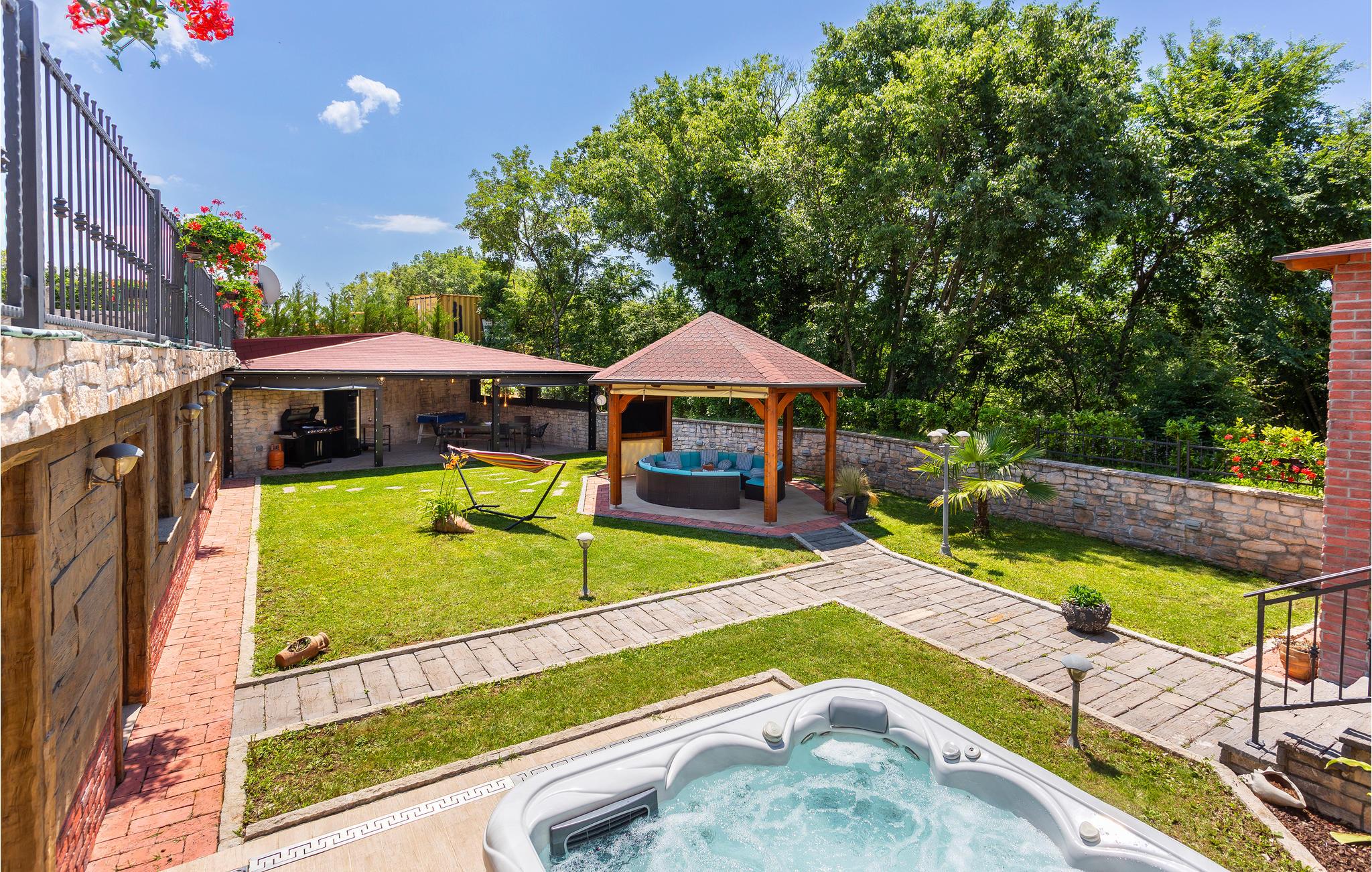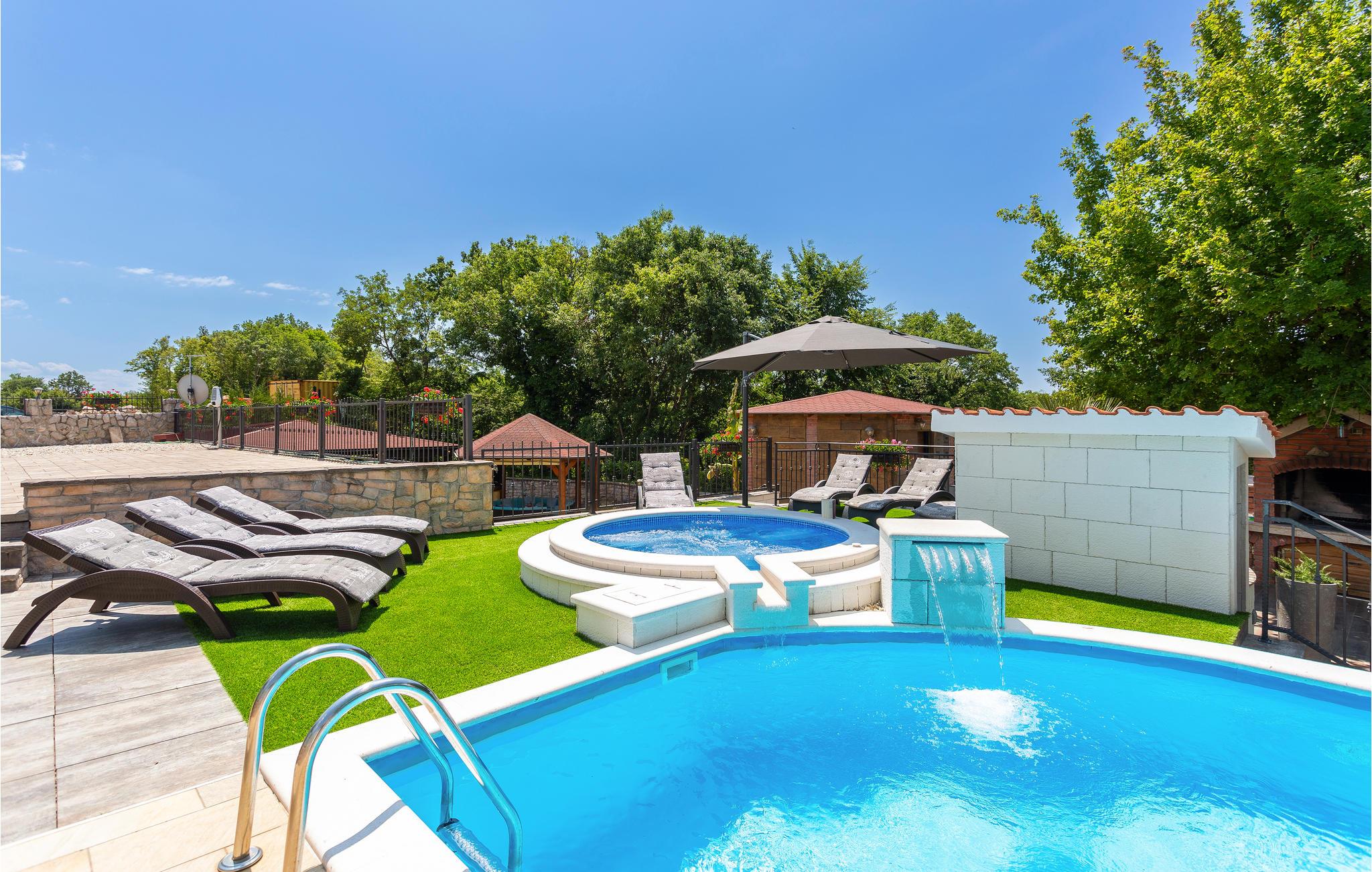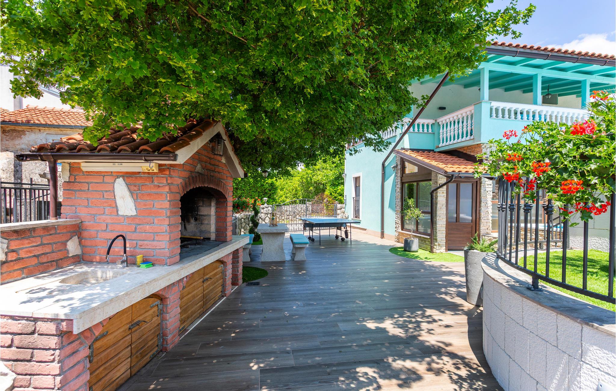 Flot møbleret sommerhus beliggende på øen Krk. Huset er opdelt i to enheder, der er forbundet via en udvendig trappe. De lyse, luftige møbler og varme farver skaber en hyggelig stemning, som garanterer et afslappende og behageligt ophold. Den laveste loftshøjde er 200 cm. Den velholdte pool er forfriskende på varme dage. Her kan du ligge uforstyrret på den lukkede grund. Slap af i skyggen af havepavillonen eller i sauna og whirlpool, der står til rådighed for jer i haven i en særskilt bygning. Den nærved liggende vej gør stedet til et godt udgangspunkt for forskellige udflugter til bl.a. øen Krk også kaldet Den Gyldne Ø, som er den største og mest besøgte ø i Kroatien. Den er forbundet med bro til fastlandet, har mange små og maleriske byer og landsbyer såsom Vrbnik, Malinska, Baska, Punat, Krk Silo at besøge. Smukke strande og fine restauranter med internationale og lokale specialiteter til rådighed er der gode muligheder for at udforske. Dette smukke sted er et vidunderligt sted at holde sin sommerhusferie så book en ferie her og nyd et fantastisk ophold.