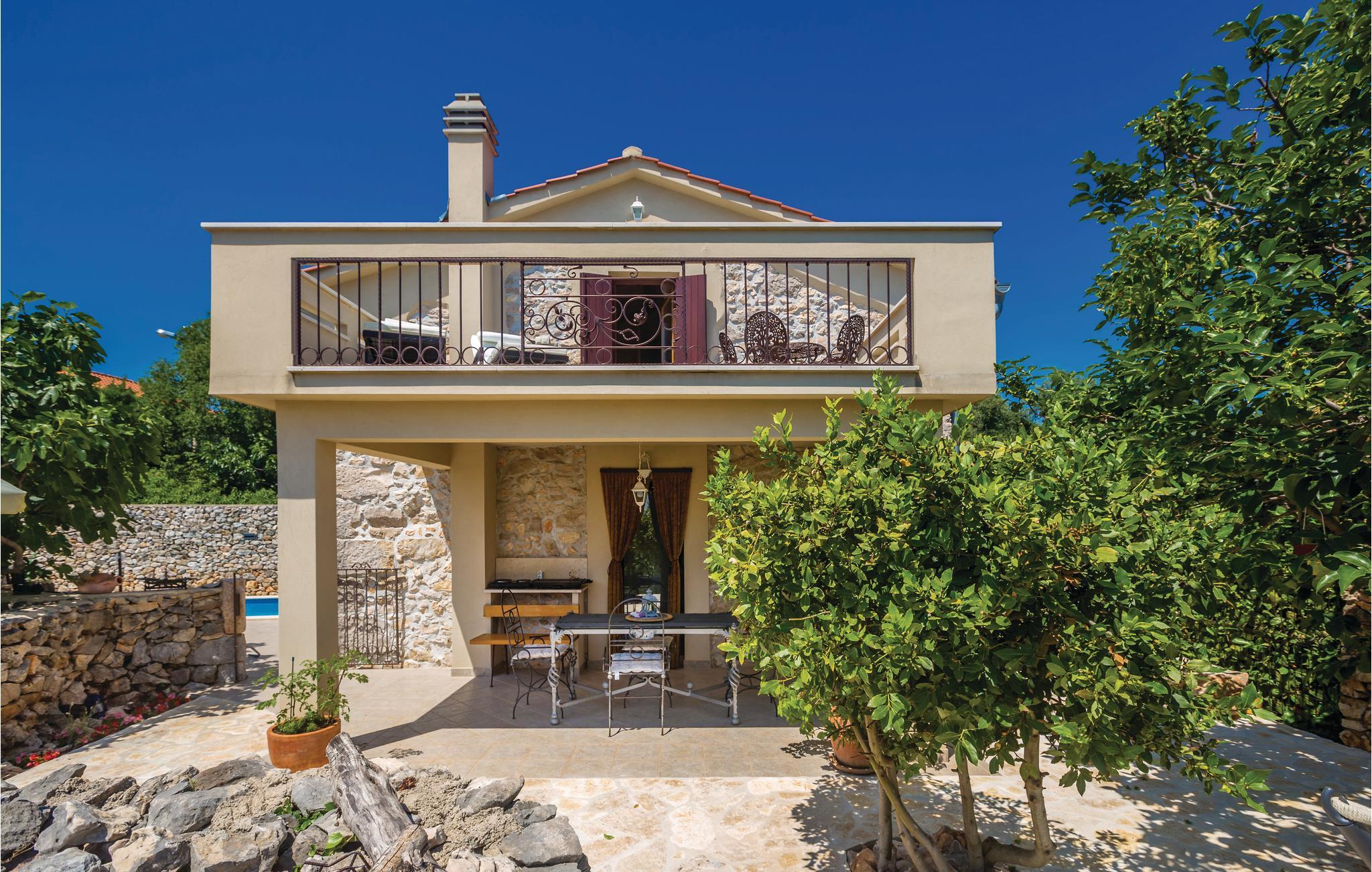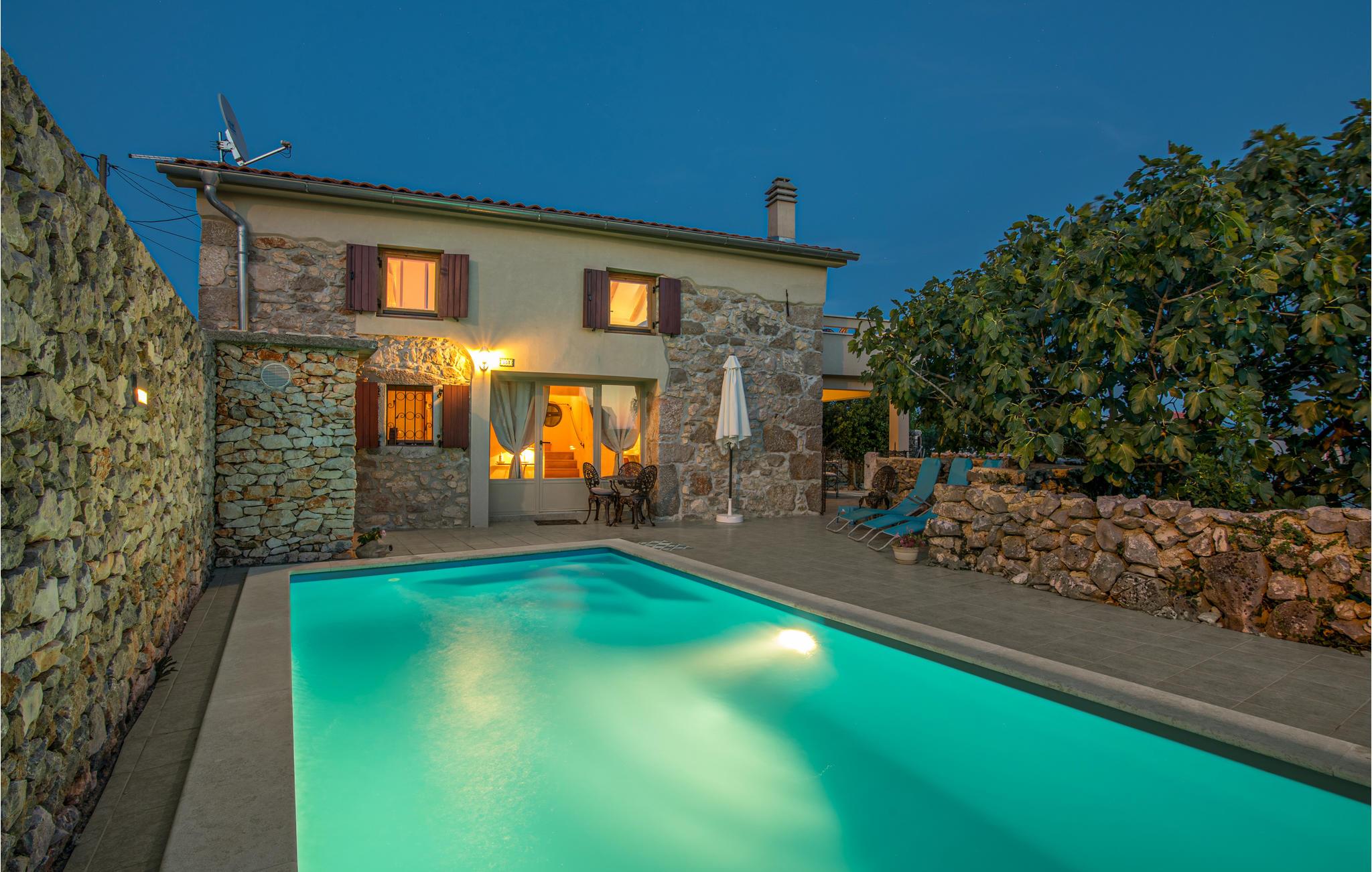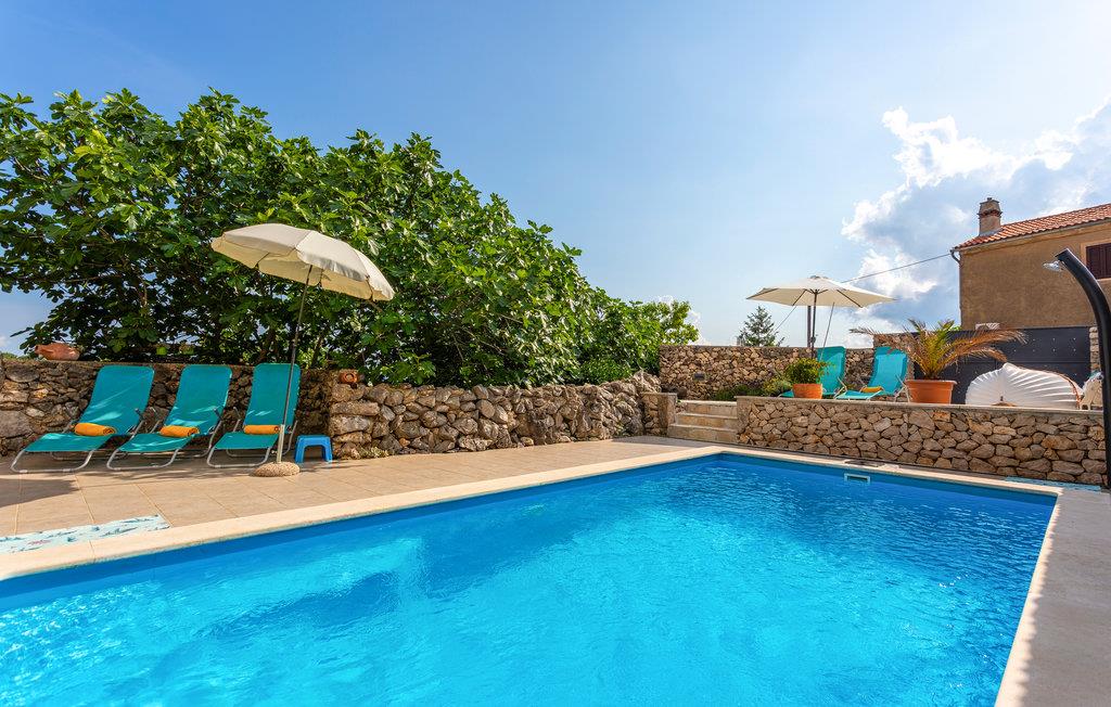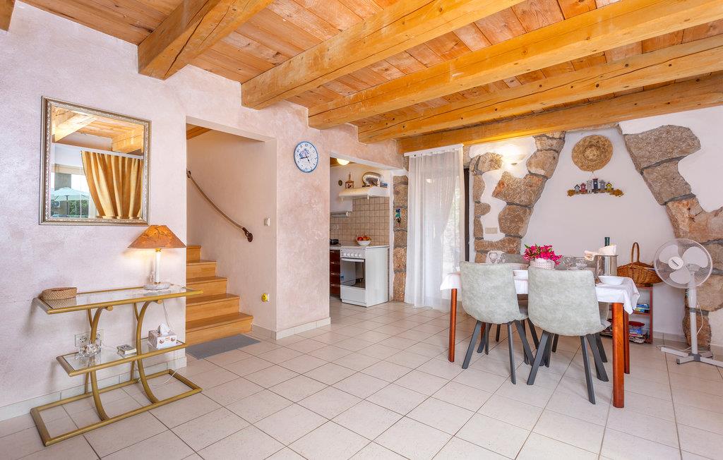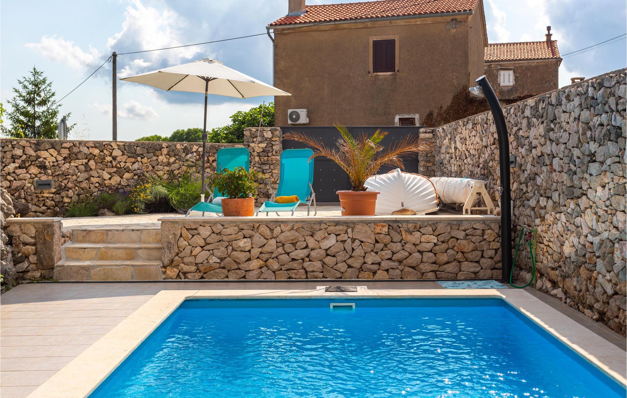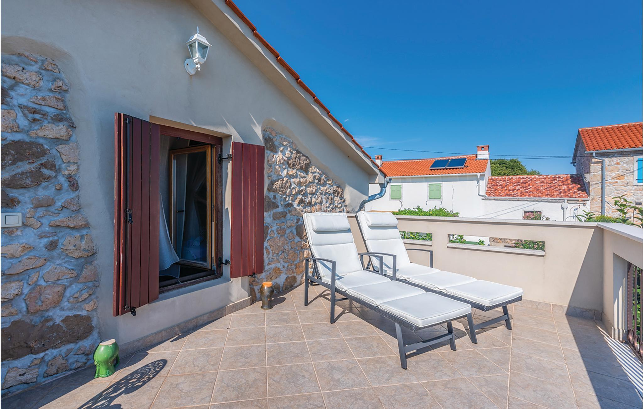 I en lille og rolig landsby på øen Krk Garica med perfekt beliggenhed for dem, der ønsker at tilbringe ferien midt i naturen, ligger dette skønne feriehus. I stueetagen er en stor stue med køkken og spisestue placeret med udgang til den smukt indrettede have. Den udendørs pool giver jer afkøling i løbet af de varme sommerdage. På øverste etage er soveværelser og et badeværelse. Et af soveværelserne har udgang til terrassen, hvorfra der er en smuk panoramaudsigt over landskabet og havet et par kilometer væk. På denne terrasse er det ideelt at tilbringe sommeraftener kun omgivet af lyde og dufte fra naturen. I soveværelse og badeværelse på den øverste etage er den mindste loftshøjde 100 cm. Huset er ideelt til en familie med børn. De nærmeste strande og turistbyer som Baska, Malinska og Krk nås let med bil.