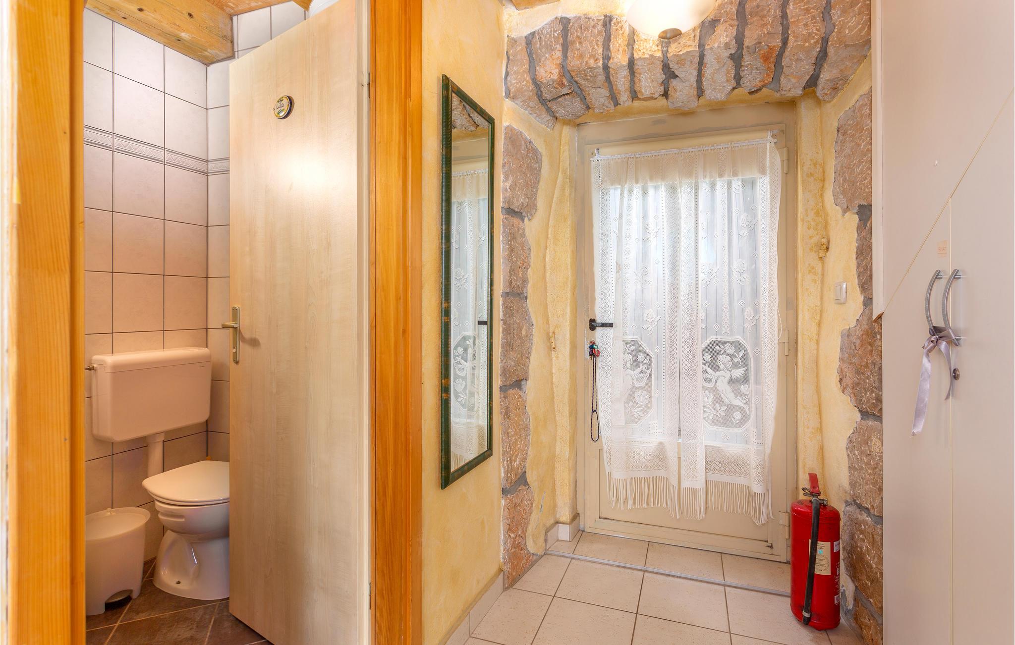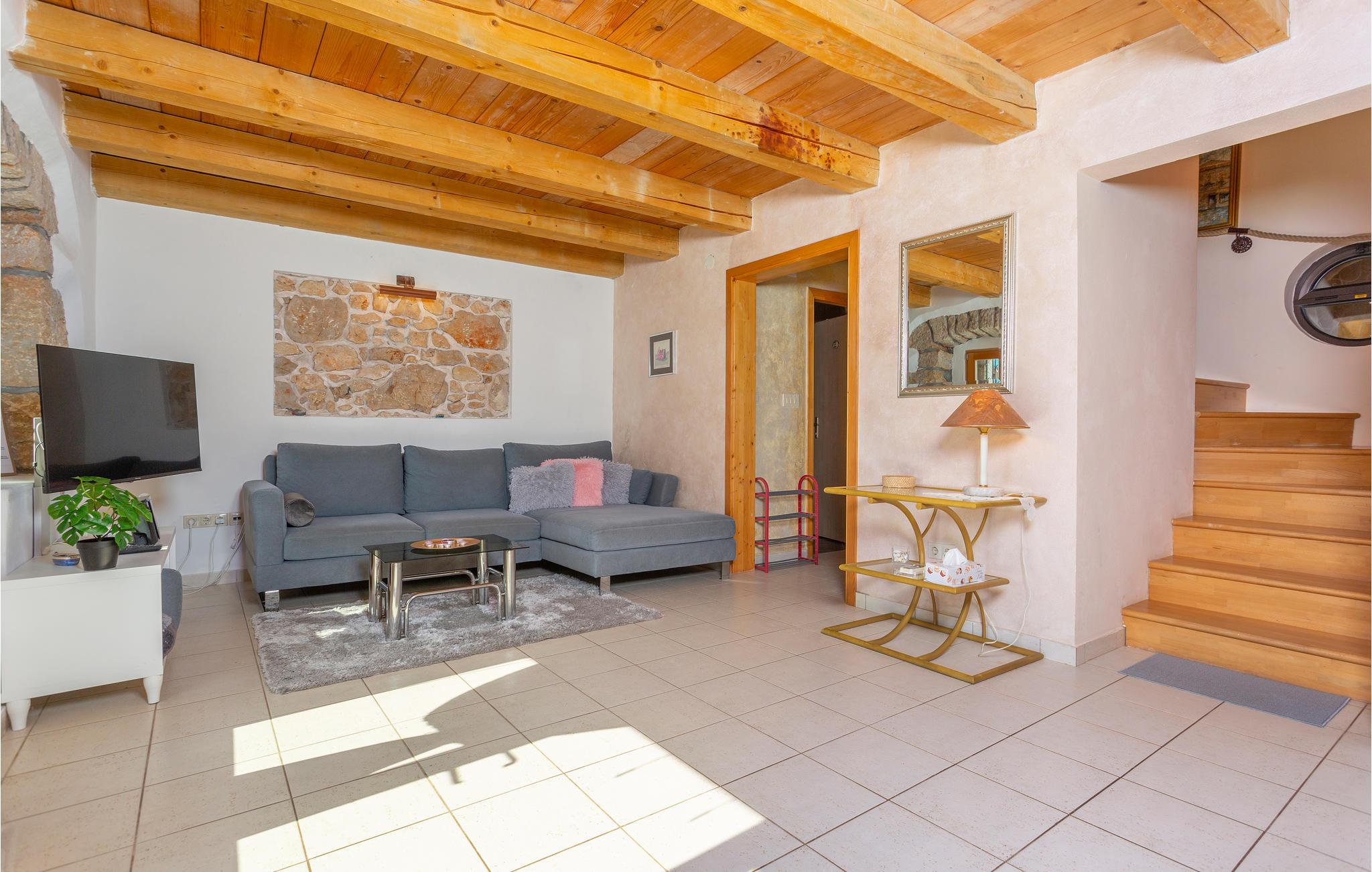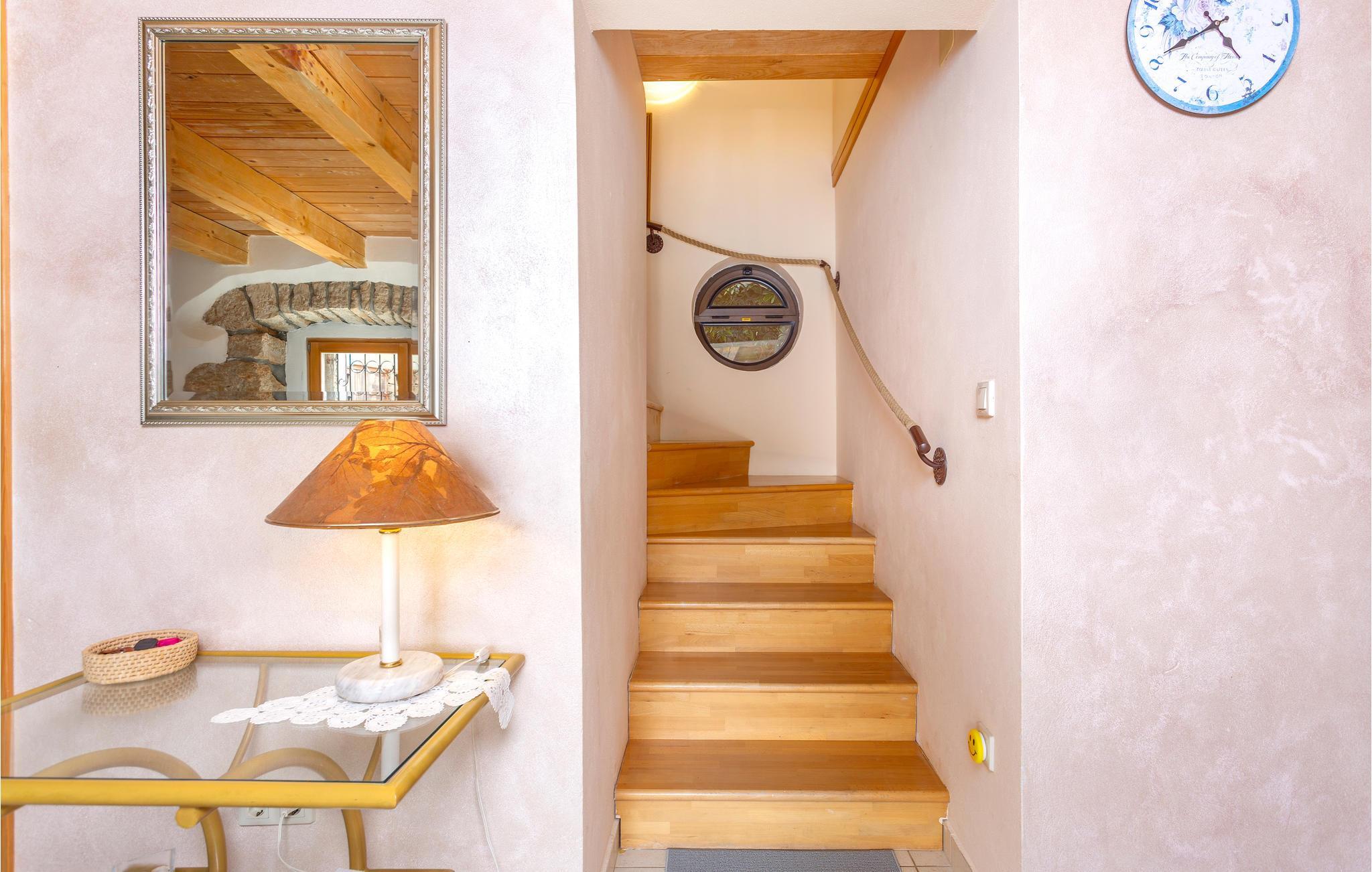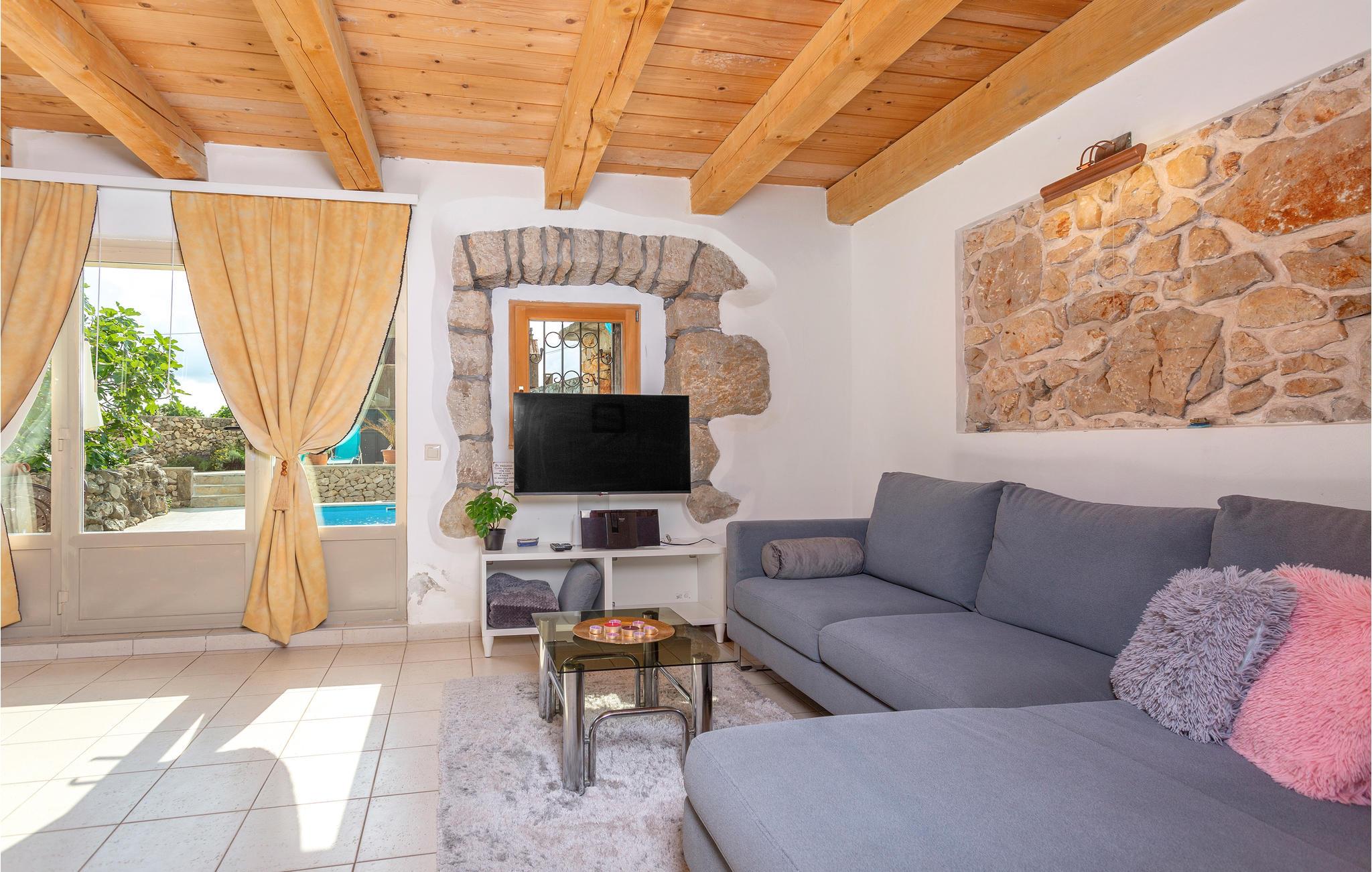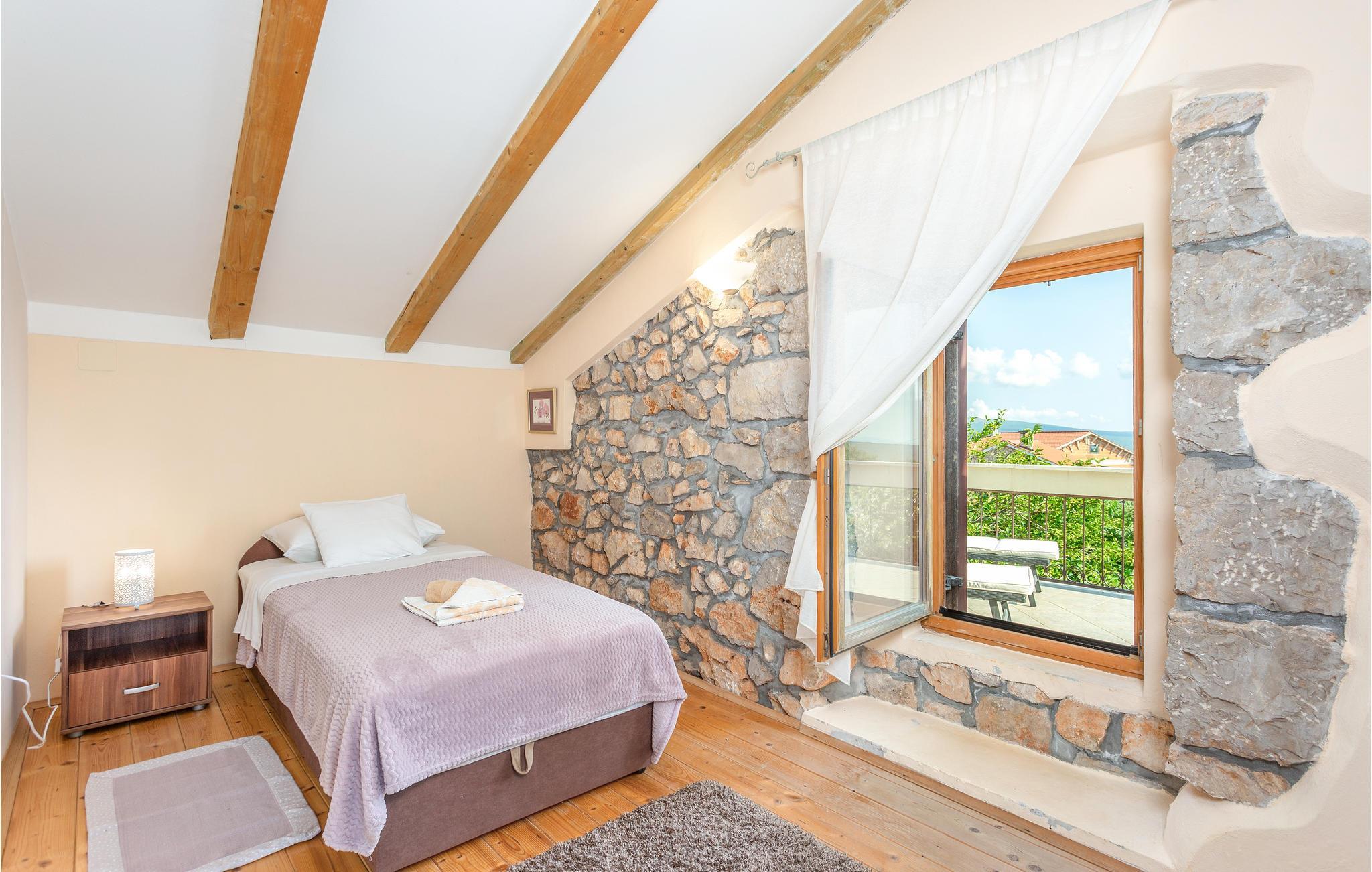 I en lille og rolig landsby på øen Krk Garica med perfekt beliggenhed for dem, der ønsker at tilbringe ferien midt i naturen, ligger dette skønne feriehus. I stueetagen er en stor stue med køkken og spisestue placeret med udgang til den smukt indrettede have. Den udendørs pool giver jer afkøling i løbet af de varme sommerdage. På øverste etage er soveværelser og et badeværelse. Et af soveværelserne har udgang til terrassen, hvorfra der er en smuk panoramaudsigt over landskabet og havet et par kilometer væk. På denne terrasse er det ideelt at tilbringe sommeraftener kun omgivet af lyde og dufte fra naturen. I soveværelse og badeværelse på den øverste etage er den mindste loftshøjde 100 cm. Huset er ideelt til en familie med børn. De nærmeste strande og turistbyer som Baska, Malinska og Krk nås let med bil.