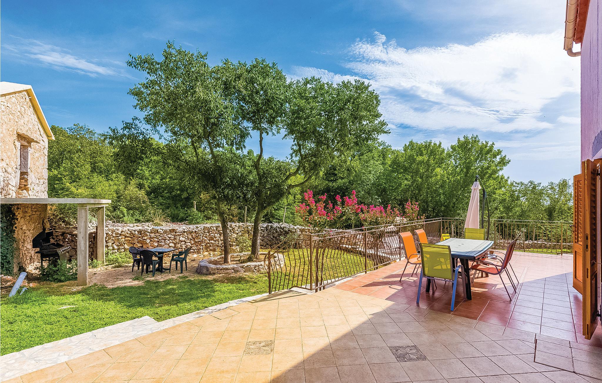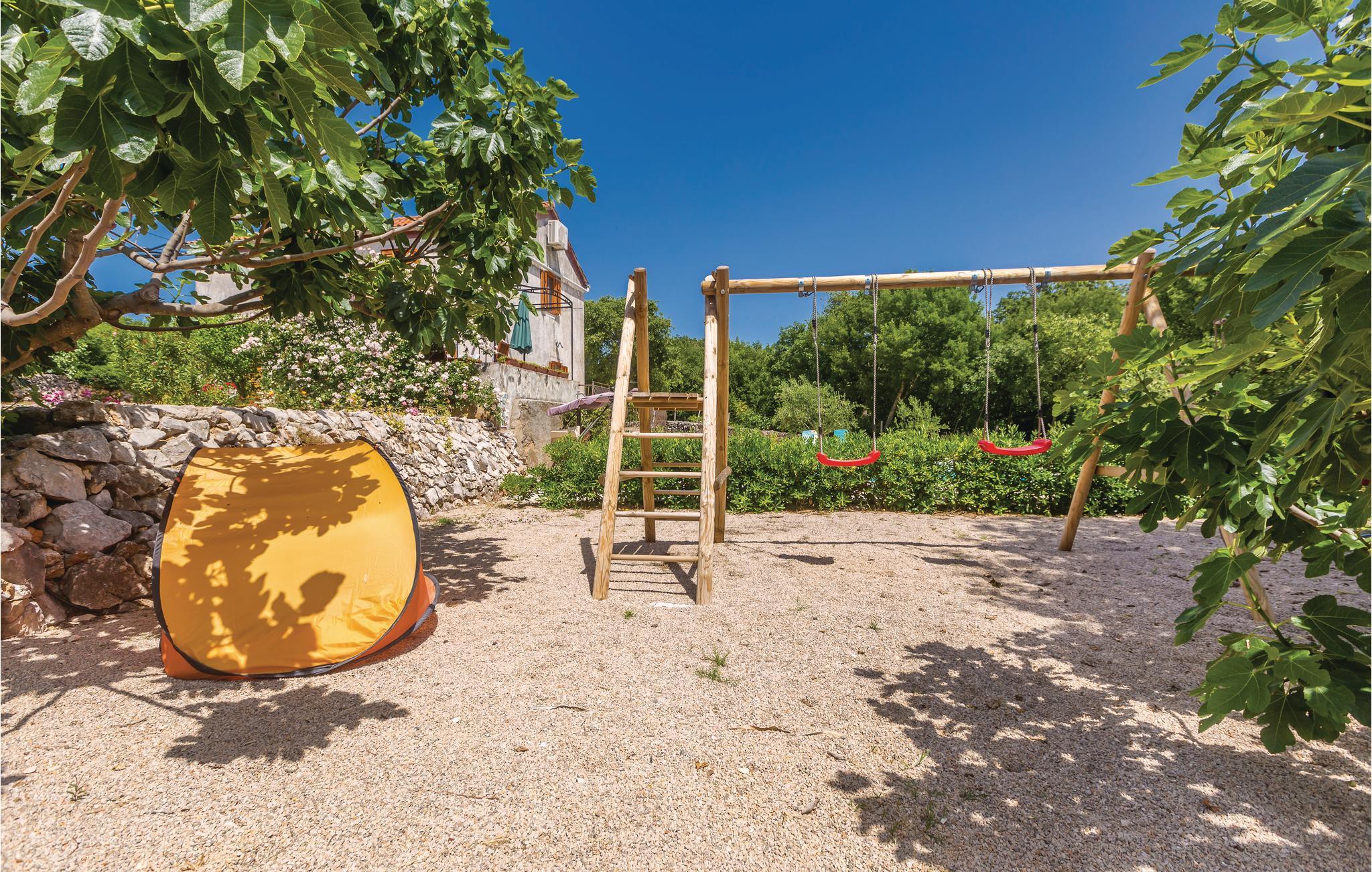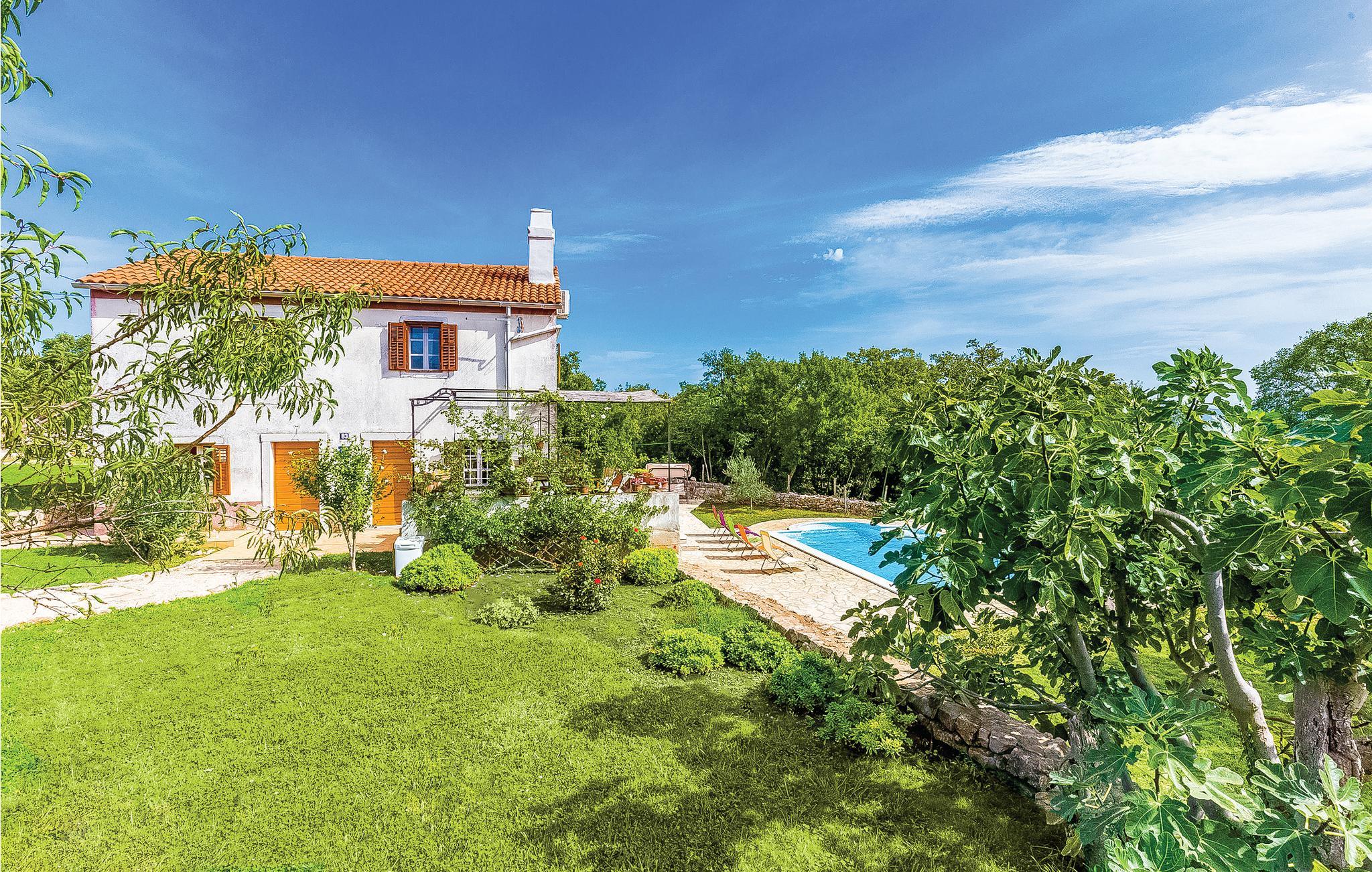Dette feriehus er omgivet af en vidunderligt anlagte og indhegnet have og derfor ideelt til en familieferie. Her lytter I til naturens klange, langt væk fra byens travlhed og larm. I stueetagen har I et dejligt indrettet opholdsområde med køkken, mens soveværelserne ligger på 1. sal. Hyggelige timer vil I opleve på terrassen foran opholdsområdet. Her kan I spise i det fri, mens jeres børn leger i den fritstående pool eller i haven. Badestrandene, de gode restauranter og de gode tilbud inden for kultur i de større feriebyer, Baska, Krk, Malinska og Vrbnik kan I nemt køre til i bil.