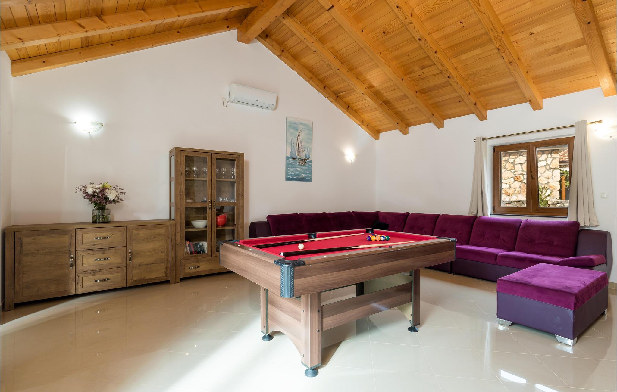 I nærheden af de populære ferieområder omkring byen Krk og Malinska, i en lille landsby Gostinjac, venter der jer et dejligt feriehus, med en kombination af moderne og traditionel indretning. Det er perfekt for naturelskere med dens smukke grønne have og udsigten til øens rige, varierede landskab. Den forfriskende pool bliver jeres naturlige opholdssted på de varme dage, og børnene kan lege uforstyrret på havens legeredskaber. Huset fordeler sig over en stueetage med hems, hvor væggene skråner fra 60cm fra gulvet. Nyd solnedgangen fra den overdækkede terrasse og den kølige brise fra havet til et glas hvidvin. Med bil når I hurtigt ned til øens mange uforstyrrede strande, hvor I endda kan vælge mellem sand, grus og klipper. Hen over sommeren udfolder der sig et omfattende program af arrangementer på øen og I kan gøre brug af de mange sportslige aktiviteter som øen har at byde på - både til vands og på land. For gourmet'en findes et rigt udvalg af lokale vine og specialiteter som er værd at gå på opdagelse i.
