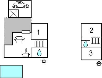 Stueetagen består af to niveauer, så I kan få adgang til soveværelset og badeværelset via to trin. Ovenpå er der to soveværelser og et badeværelse. Slap af ved poolen med solbadning, mens børnene leger bekymringsløst på ejendommen. I kan nyde jeres måltider udendørs på den overdækkede terrasse med en murstensgrill.