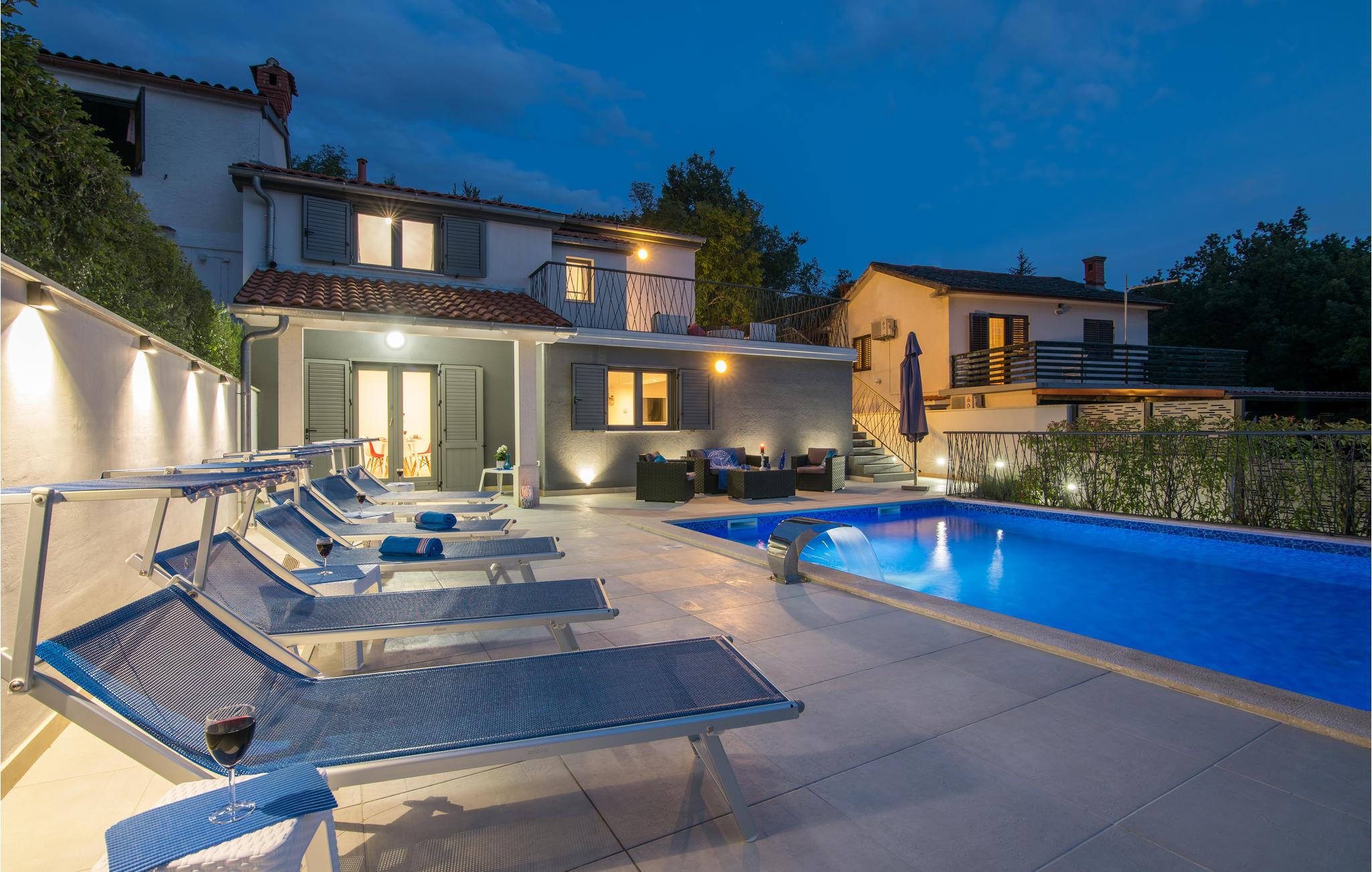 Det smagfuldt indrettede sommerhus med pool ligger på et terrasselignende terræn, så du kan nå stueetagen via udvendige trapper. Sommerkøkkenet med grill og overdækket terrasse er placeret bag på ejendommen, som du kan få adgang til direkte fra øverste etage. I den nederste del af ejendommen, hvor stueetagen ligger, er den udendørs pool med solbadningsområde. Der kan du slappe af med en god bog, mens børnene plasker rundt i poolen.