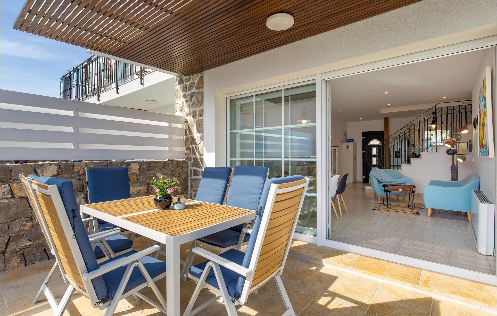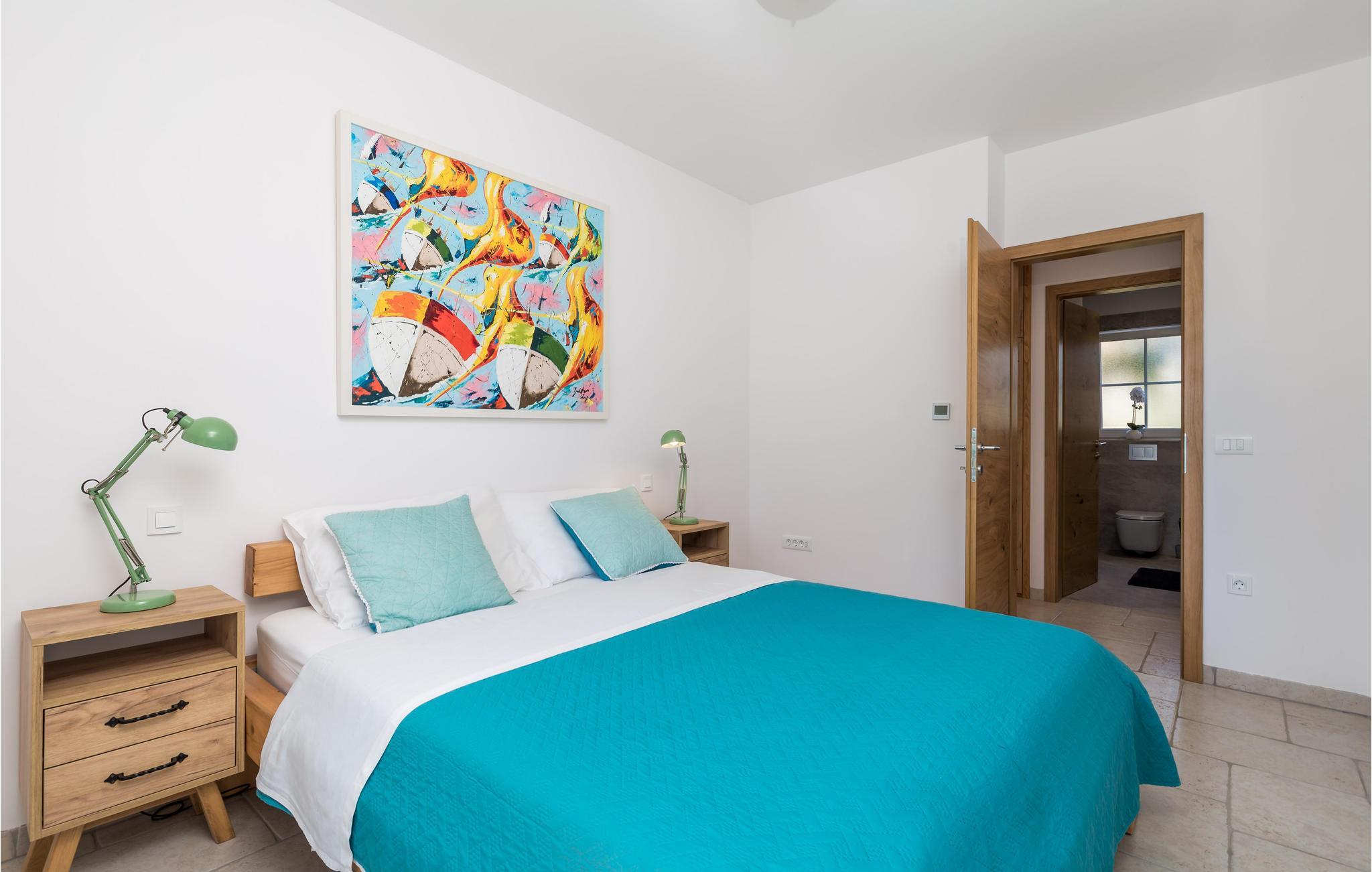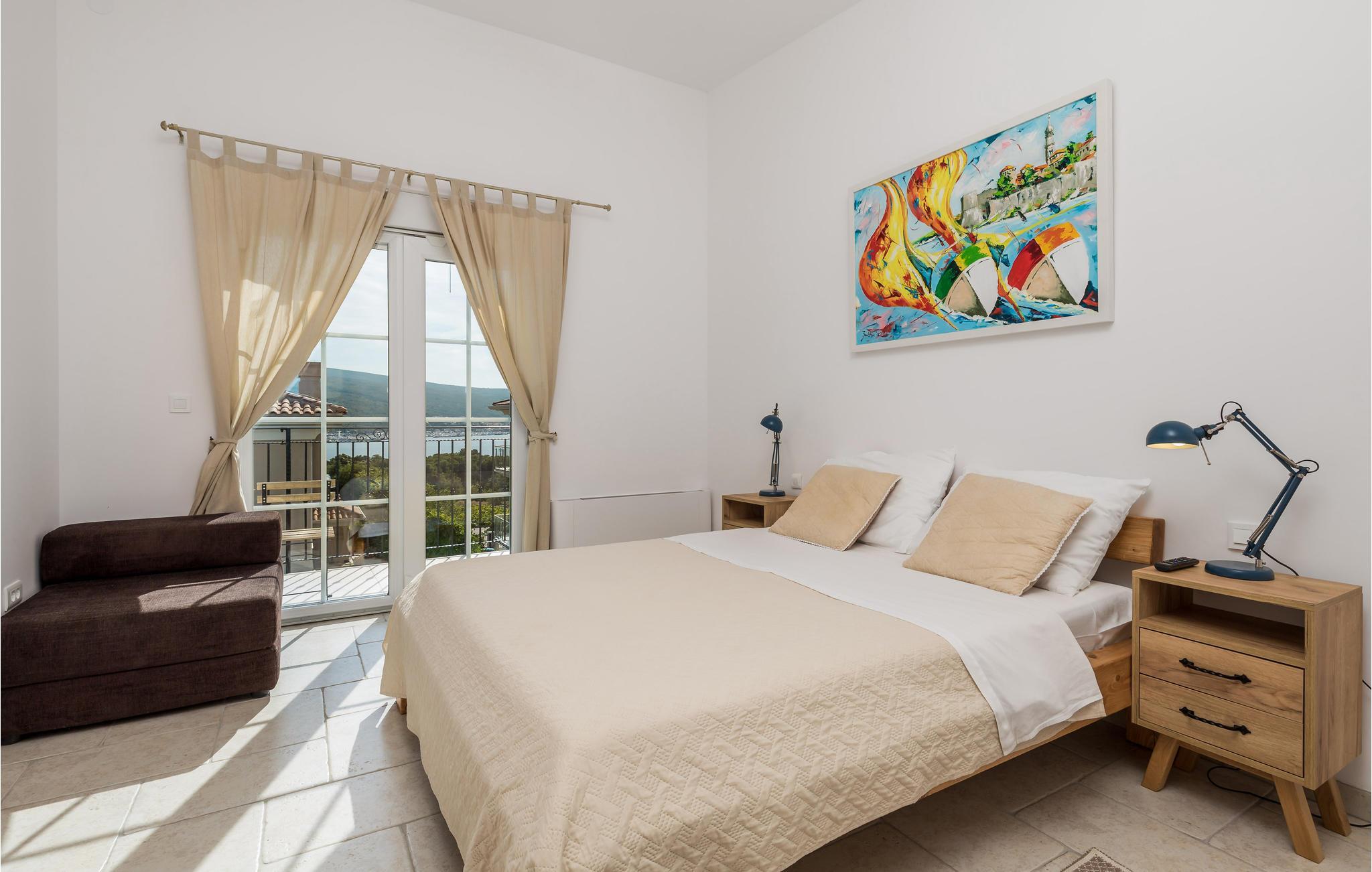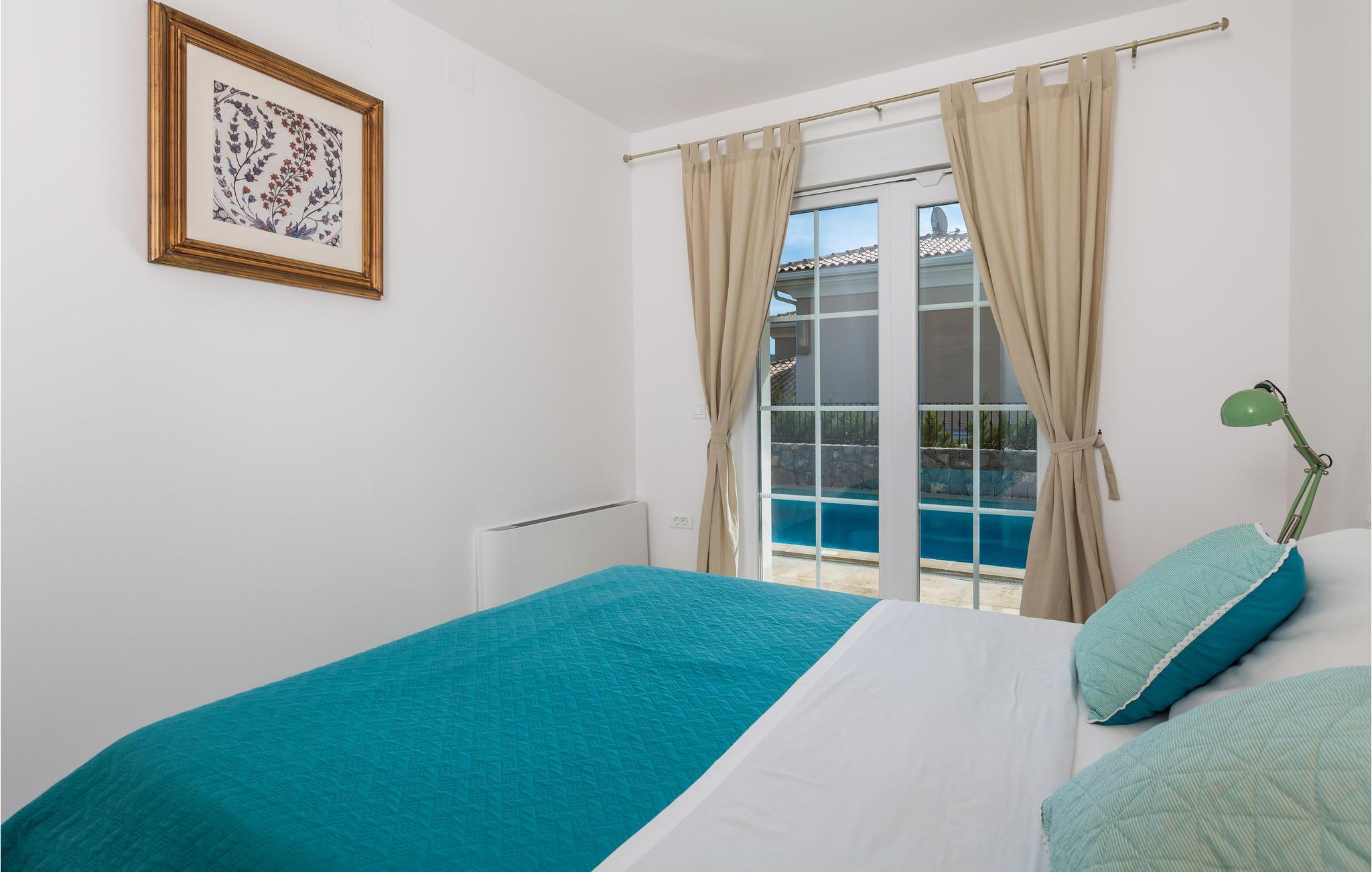 På øen Krk i den lille by Kornic ligger dette vidunderlige feriehus med egen privat pool. Det ligger kun fem minutter i bil fra den historiske by Krk og fra Punat med sin godt beskyttede havn. På grund af beliggenheden på en pakke er der en fantastisk udsigt over havet og de sølvgrønne olivenlunde, som denne region er så berømt for. Huset er indrettet med kærlighed helt ned i de små detaljer og bygget helt traditionelt, og indrettet med en vellykket blanding af gammelt og moderne. Fra stuen er der direkte udgang til terrassen med grill, loungehjørne og område til solbad samt til den opvarmede pool. Det største soveværelse ligger i stueplan og resten på første sal. I huset er der klimaanlæg, gulvvarme og I kan parkere på den store indhegnede grund.