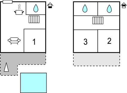 Soveværelse (nr. 2) - 2 Sovepladser. (Dobbeltseng(e)). 1 Soveplads. (Sofa, madras eller lignende).