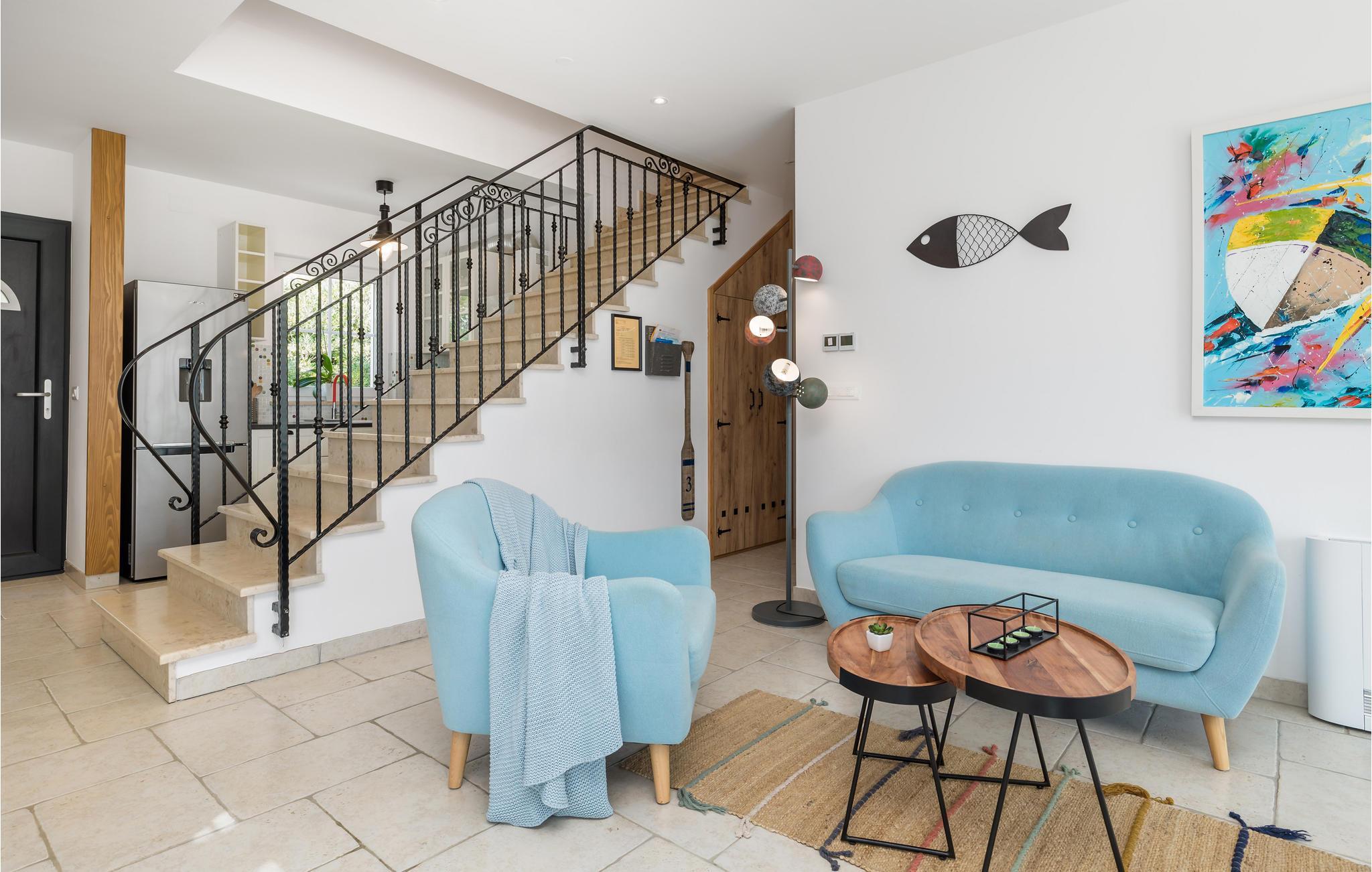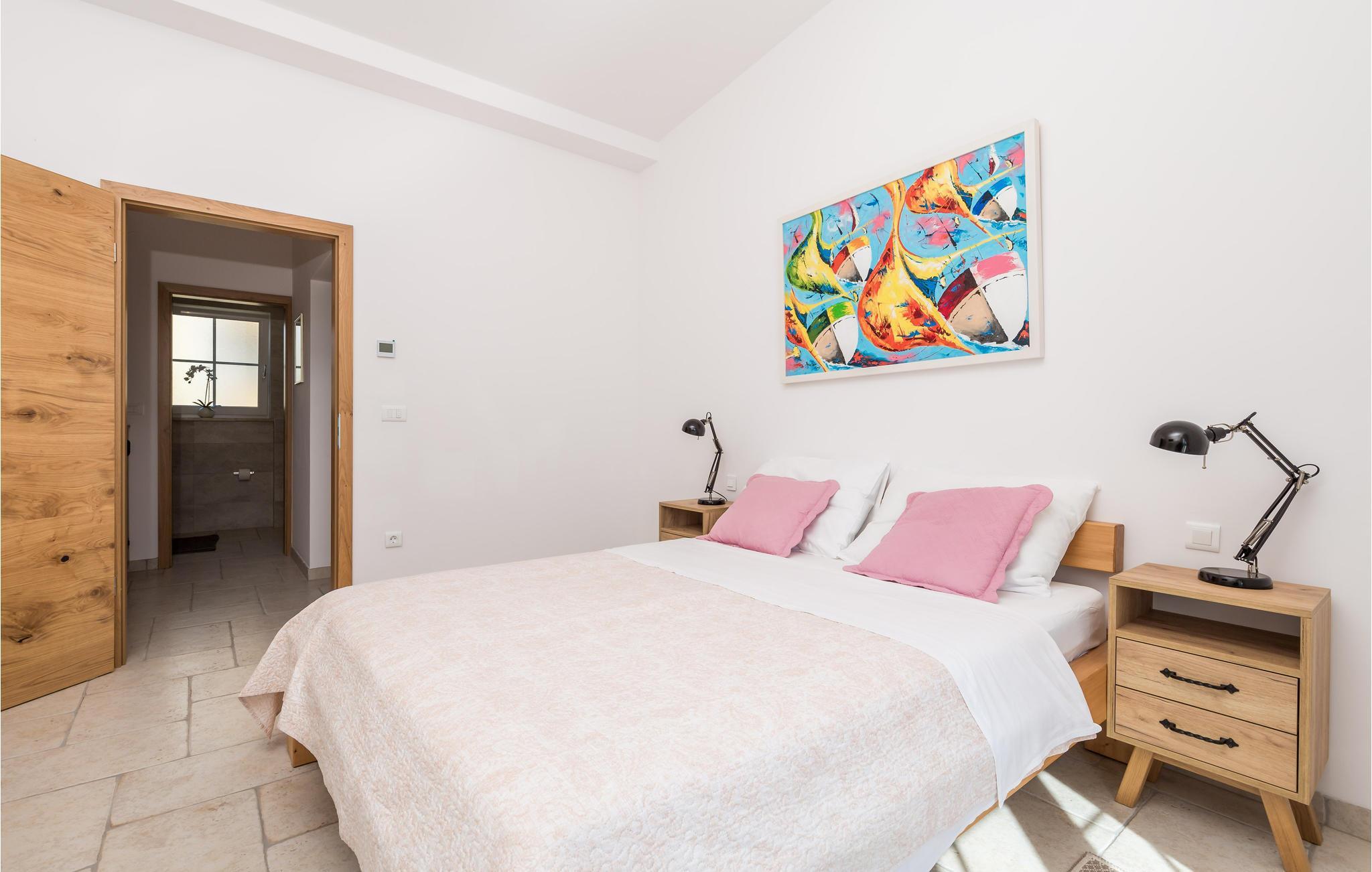 På øen Krk i den lille by Kornic ligger dette vidunderlige feriehus med egen privat pool. Det ligger kun fem minutter i bil fra den historiske by Krk og fra Punat med sin godt beskyttede havn. På grund af beliggenheden på en pakke er der en fantastisk udsigt over havet og de sølvgrønne olivenlunde, som denne region er så berømt for. Huset er indrettet med kærlighed helt ned i de små detaljer og bygget helt traditionelt, og indrettet med en vellykket blanding af gammelt og moderne. Fra stuen er der direkte udgang til terrassen med grill, loungehjørne og område til solbad samt til den opvarmede pool. Det største soveværelse ligger i stueplan og resten på første sal. I huset er der klimaanlæg, gulvvarme og I kan parkere på den store indhegnede grund.