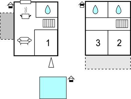 Soveværelse (nr. 2) - 1 Soveplads. (Enkeltseng(e)). 2 Sovepladser. (Dobbeltseng(e)).