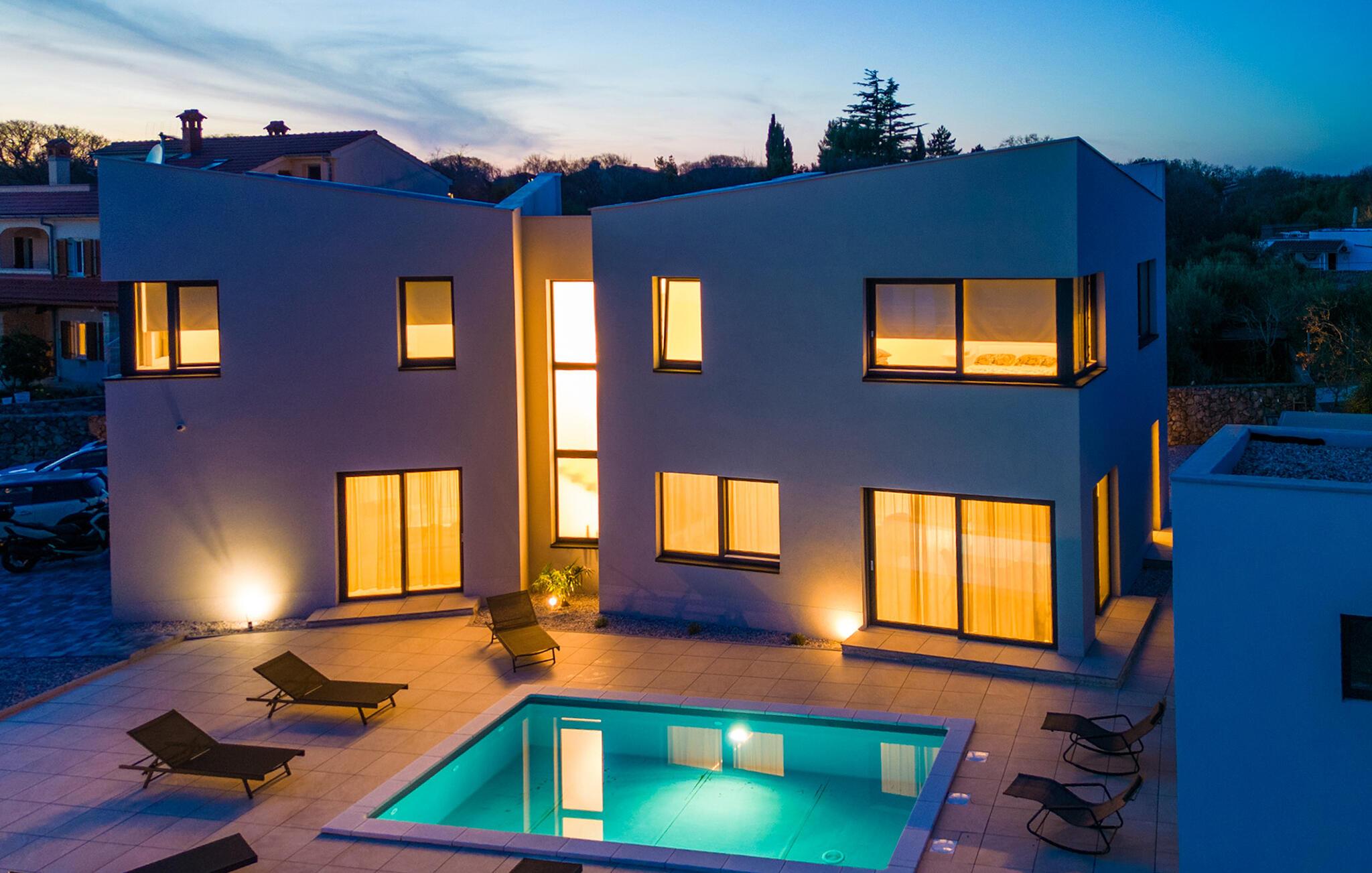 Udforsk den gamle bydel i Krk og slentr langs de historiske bymure, eller tag til Vrbnik, hvor I kan vandre gennem smalle gader og prøve regionale vine. Udforsk Biserujka-hulen nær Rudine eller ro kajak langs bugterne omkring Stara Baška. Tag en dagstur til Rijeka, besøg Trsat Slot eller slap af i de små badebugter nær Malinska og Njivice.
