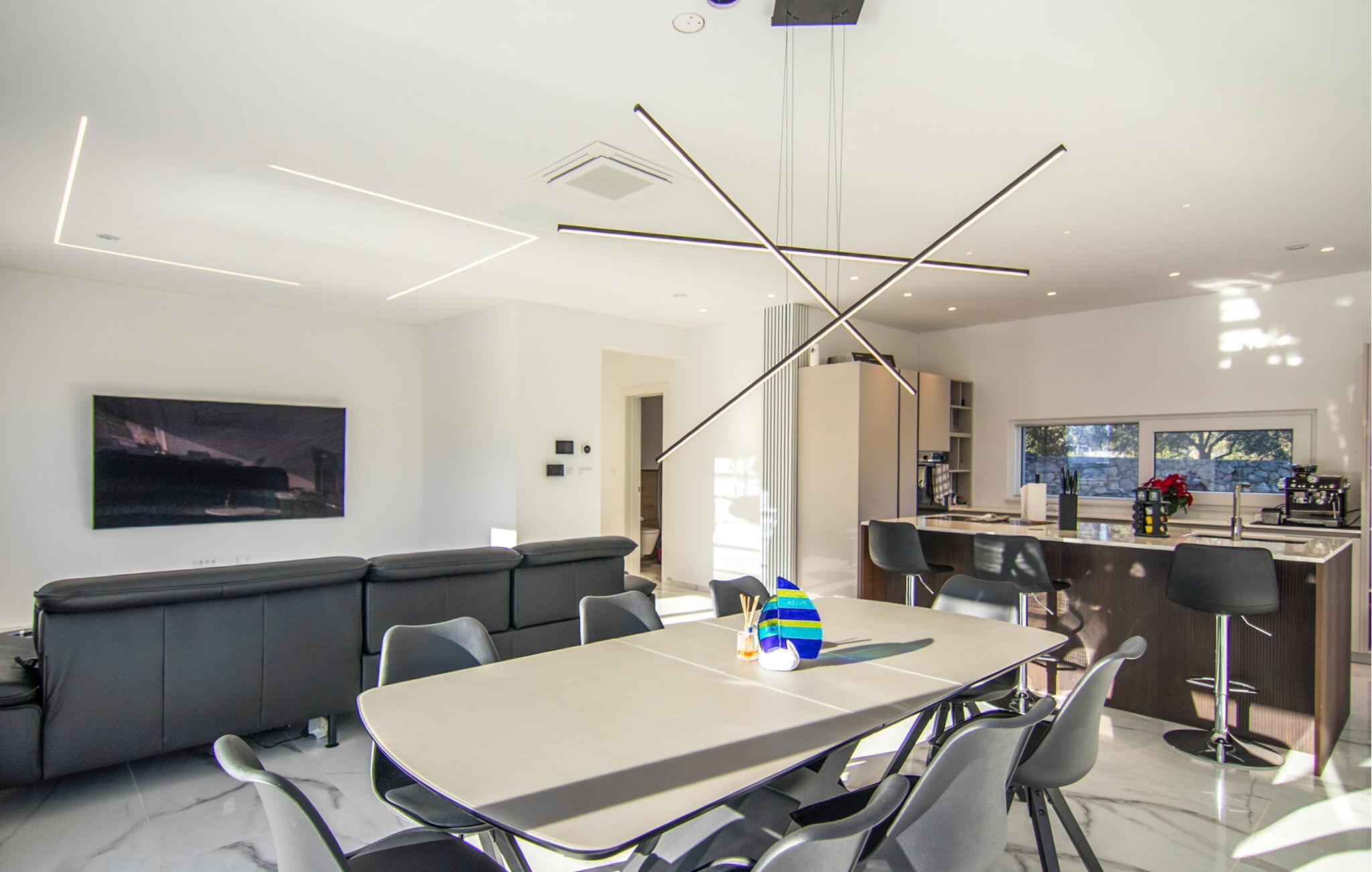 Dette moderne og luksuriøst indrettede feriehus tilbyder komfortabel indkvartering, der giver jer mulighed for at kombinere afslapning med dejlige udflugter med familie eller venner. Hold hyggelige madlavningsaftener, snak over stilfulde måltider i den lyse spisestue med udsigt over poolen, og brug træningsudstyret til jeres træning. Forkæl jer selv med afslappende øjeblikke i saunaen og stream jeres yndlingsserie om aftenen.