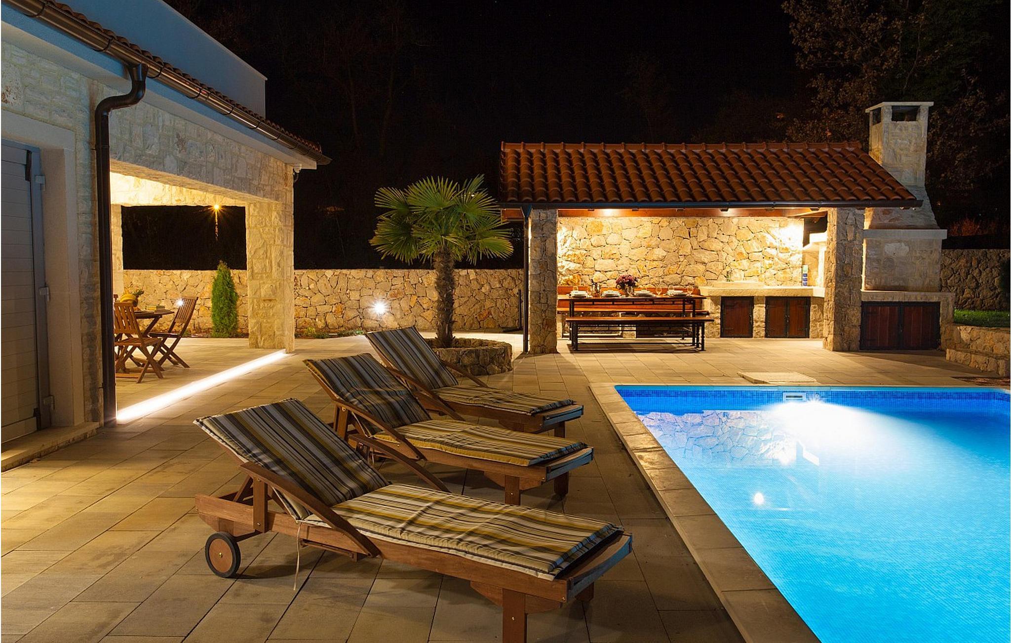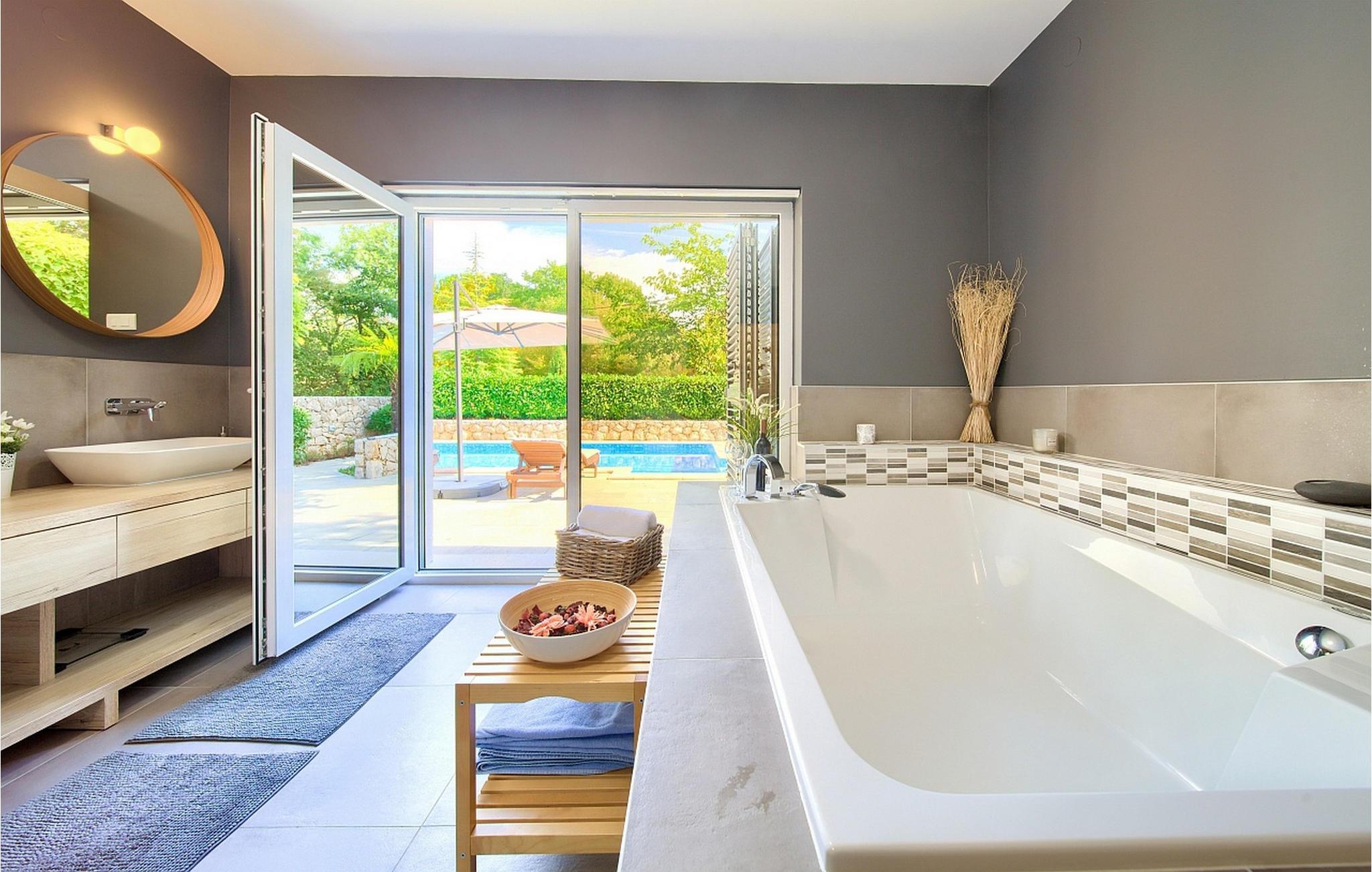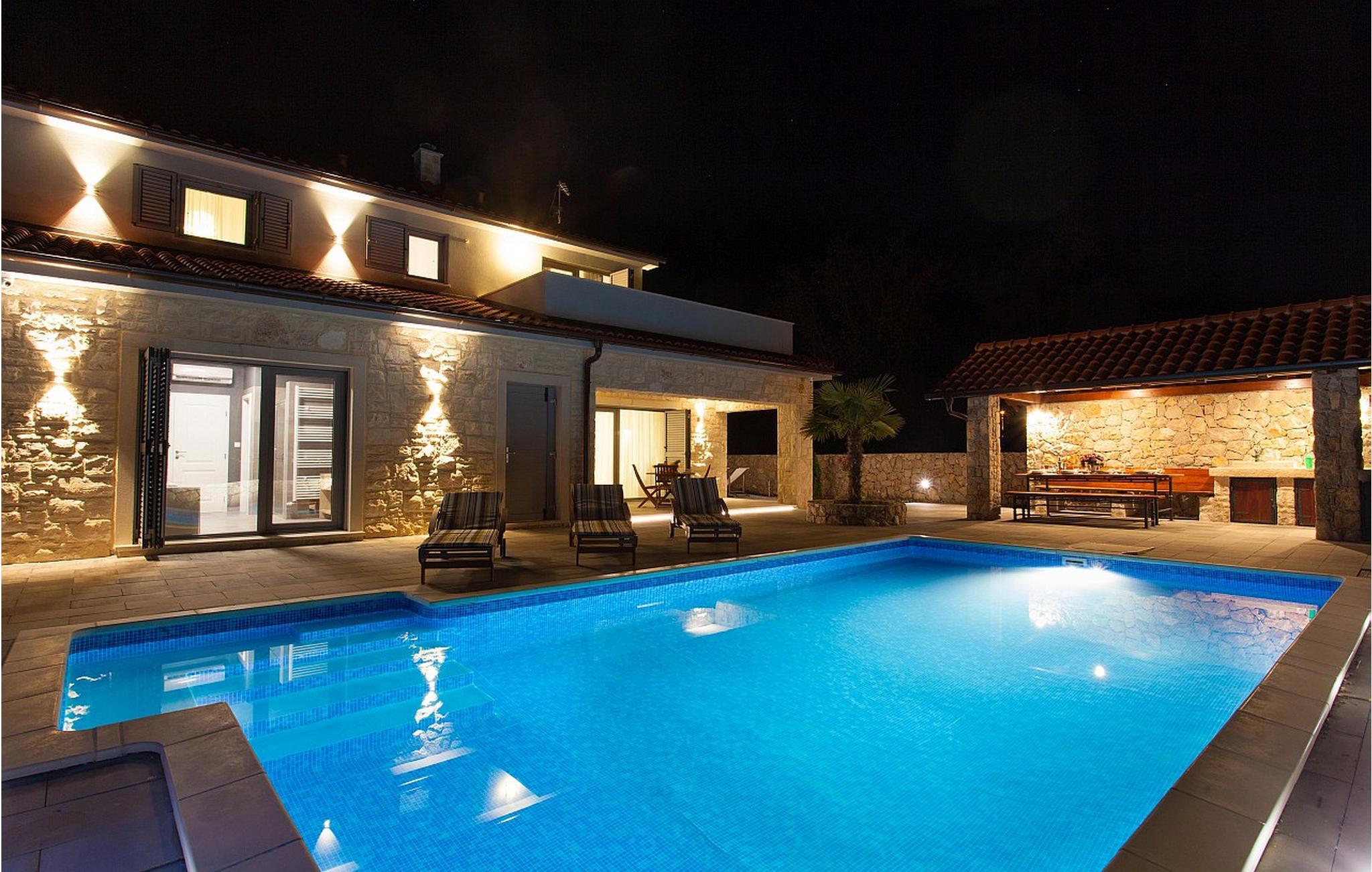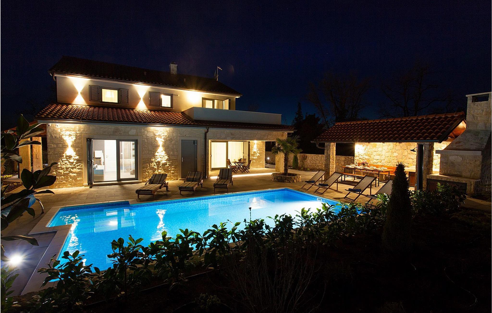Luksuriøs Villa Gabrijela er det perfekte valg til ægte afslapning og nydelse af naturen. Da villaen ligger på øen Krk, i Kras, giver den dig mulighed for at flygte fra virkeligheden og slappe af langt fra hverdagens stress og jag og nyde det smukke landskab. Villaen er fremragende møbleret og, endnu vigtigere, tilbyder dig fuldstændig privatliv. Villaen består af fire fremragende møblerede dobbeltværelser. Hvert af de fire soveværelser har et tv og har aircondition. Soveværelserne er rummelige og luftige. Villa Gabrijela kan komfortabelt rumme 8 personer (+3 ekstra personer). Villaen har også tre badeværelser og et spa-område skabt til din ultimative komfort. Villaen har et fuldt udstyret moderne køkken til at imødekomme alle dine behov. Køkkenet åbner ud til spisepladsen og den hyggelige stue. Dette lyse værelse har åbent plan og tilbyder gæsterne en storslået udsigt over haven og swimmingpoolen. Villaen er på 185 m² og er fordelt på en grund på 800 m². Udendørsområdet byder også på en storslået swimmingpool med liggestole. Poolen er på 32 m². Området omkring swimmingpoolen er direkte forbundet med grillpladsen, hvor du kan nyde frisklavede måltider med din familie og venner. * I vores tilbud finder du også yogatimer under dit ophold i Villa Gabrijela. Du kan vælge mellem morgentræning og tidlig aftentræning. Lektionerne tilrettelægges efter dine ønsker og muligheder og ledes af den certificerede lærer E-RYT 200 Gabrijela Pržulj Lelic. Hvis du vælger nogle af vores yogapakker til særlige gæstepriser, tilbyder vi dig også gratis bioenergetiske helbredende behandlinger efter metoden fra Zdenko Domancic (valgfrit). For flere detaljer kontakt os venligst. Tilføj værdi til dit ophold! * Poolen er opvarmet og åben fra 15.04. til 12.10. Villaen har udendørs jacuzzi og sauna. * Ved reservationer på mindre end 5 nætter vil der blive opkrævet et rengøringsgebyr på 150 €. Kæledyr er tilladt på denne ejendom efter ejerens skøn eller mod et gebyr. Bemærk venligst, at denne ejendom ikke accepterer ungdomsgrupper eller polterabends. En ungdomsgruppe i denne ejendom består af personer under 30 år. Book ikke denne ejendom, hvis du er en ungdomsgruppe eller polterabend, da din reservation vil blive afvist efter reservationen, hvilket også kan være tilfældet ved ankomst til overnatningsstedet eller under dit ophold, og du vil ikke modtage en refusion.