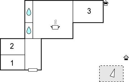Badeværelse (nr. 2) - WC. Varmt og koldt vand. Bruser