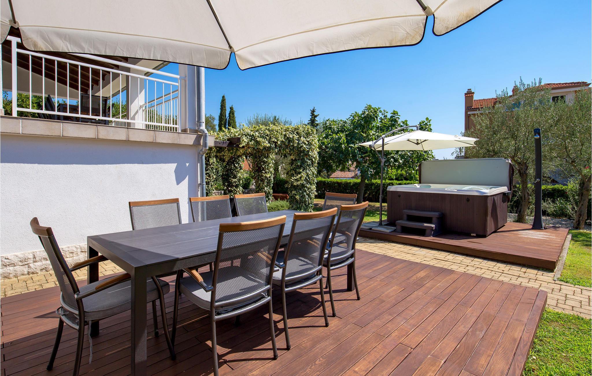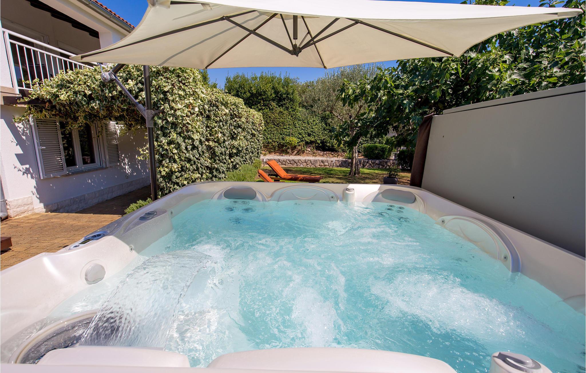 Foran huset står en whirlpool til rådighed for jer sammen med husets liggestole og havemøbler. Børnene kan glæde sig til at lege uforstyrret i haven, og på den øverste terrasse kan I slappe af med en betagende udsigt til det blå hav. Husejerens parkeringsplads i nærheden af huset er også tilgængelig for jer.
